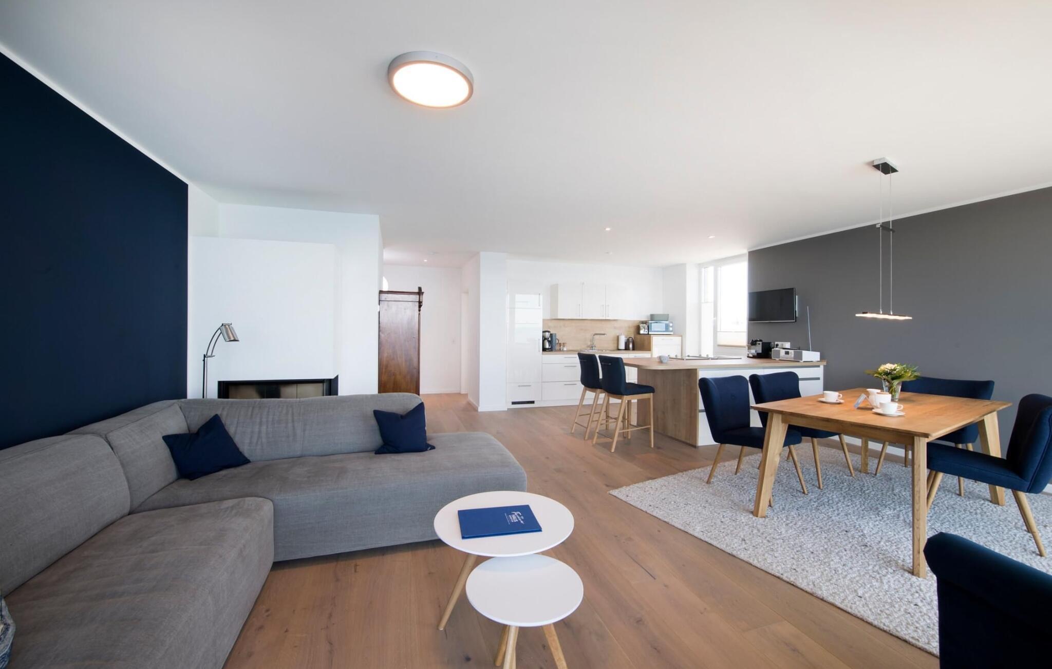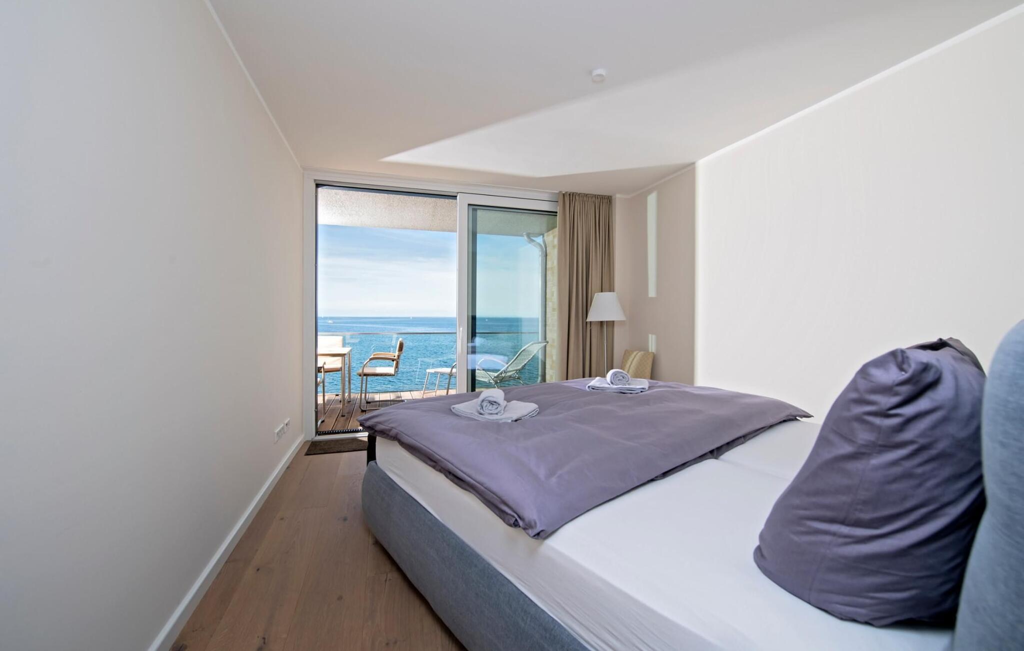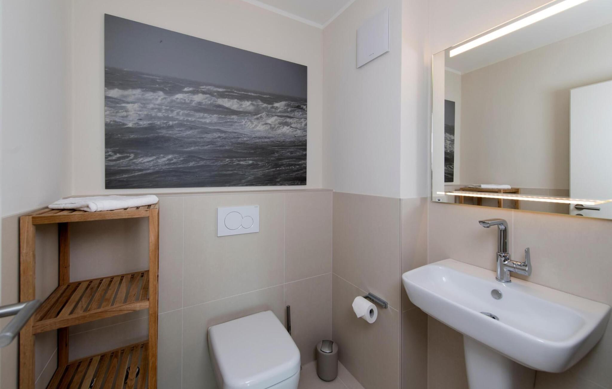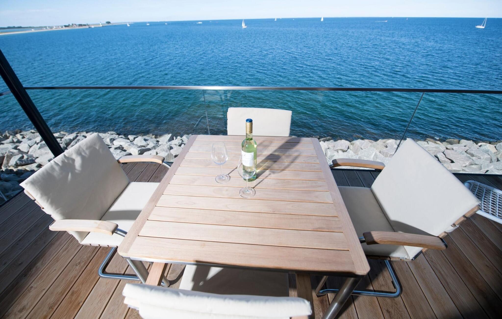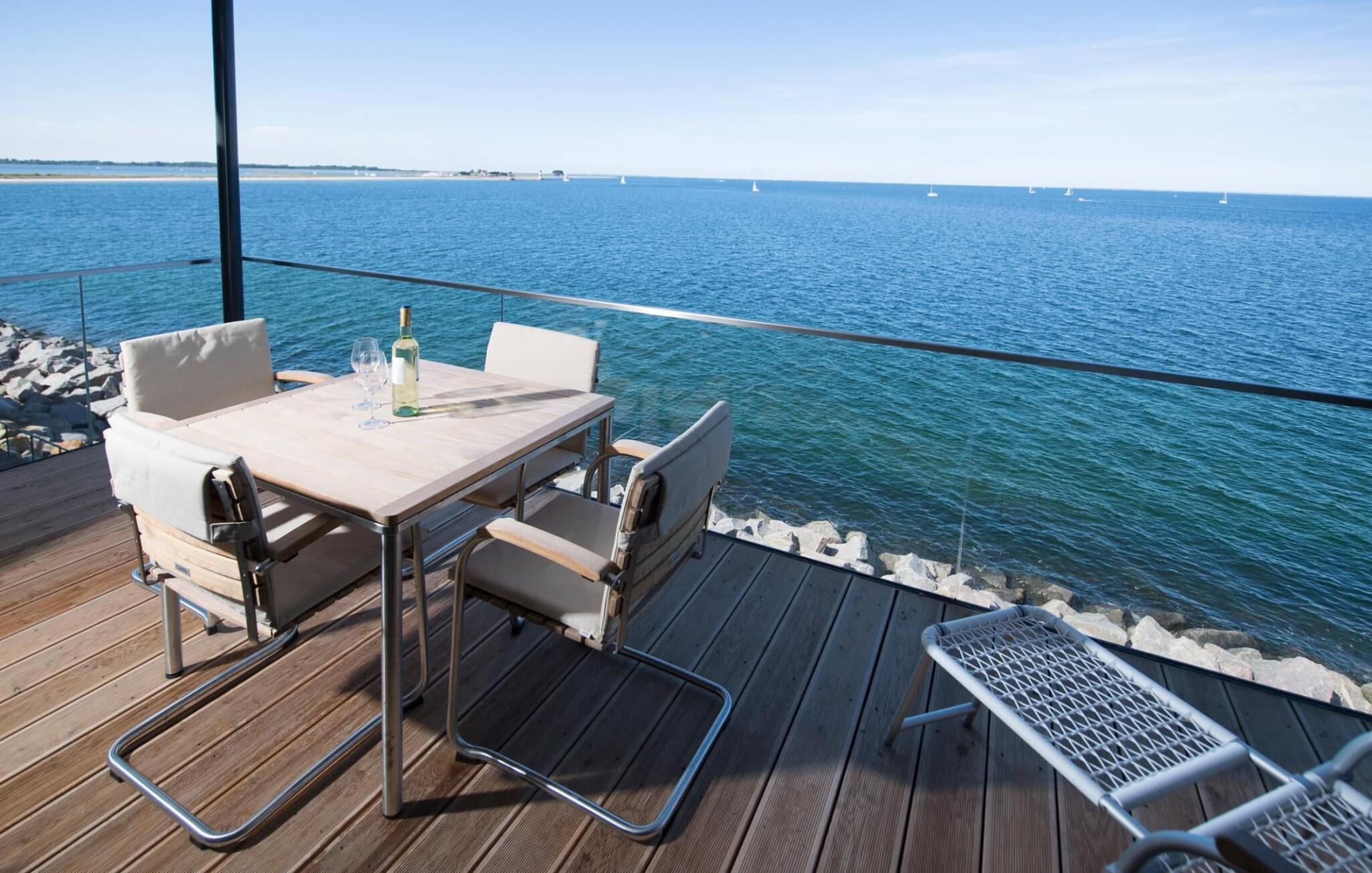 Moderne-maritim ferielejlighed over bølgerne med en spektakulær udsigt over den brede Østersø og slimets munding, og wellness-faktor. Dette skønne feriehus ligger midt i Østersøen, på et smalt næs mellem VIND OG VAND, med Østersøen på den ene side og sejler- og sportsbådshavnen i ferieområdet Olpenitz på den anden side. Slap af over bølgerne eller nyd solen på havnesiden, to altaner får feriehjerterne til at banke hurtigere, mens en finsk sauna med udsigt til vandet sikrer det private wellness-program. Den rummelige ferielejlighed Wind und Wasser i stueetagen ligger på anden sal og kan nemt nås med elevator. Placeret over alt, er der en spektakulær udsigt gennem gulv-til-loft vinduer over Østersøen, mundingen af floden og fyrtårnet samt lystbådehavnen i feriestedet Østersøen. Hvert værelse har adgang til altan. Trægulvbrædder og gulvvarme tilbyder komplet feriekomfort. Opholds- og spisestuen i åbent plan med det komfortable siddeområde og det store spisebord inviterer jer til at blive hængende foran den knitrende pejs. Den panoramiske havnefront byder på ferieunderholdning i hver sæson, passerende sejlskibe, måger, spray og bølger, fyrtårn, strand- og havnebiograf. Det store soveværelse vender ud mod Østersøen og byder udover en unik vandudsigt også direkte ud til altanen. Træd udenfor døren i jeres morgenkåbe og start dagen med en smag af Østersøen - drømme går i opfyldelse her. Det andet soveværelse vender ud mod lystbådehavnen og har også sin egen altanadgang. Begge soveværelser har myggenet døre. Det fuldt udstyrede badeværelse med bruser i gulvniveau sikrer maritime wellness-øjeblikke på ethvert tidspunkt af året. I kan slappe dybt af i den finske sauna, og den tilstødende sydvendte balkon byder på sol hele dagen lang. Et gæstetoilet giver ekstra komfort. Wind und Wasser ferielejligheden er en lejlighed på anden sal i et hus med flere enheder. Der er en parkeringsplads lige foran huset. Vores favoritsted: Lad Østersøbrisen blæse om næsen på balkonen og se, hvordan sejlbåde passerer Schimmelünde fyrtårn. Bemærk venligst: OstseeResort Olpenitz er meget populært, og der bygges fortsat i parken. Ikke desto mindre kan I se frem til en 5-stjernet standard og et førsteklasses ophold. Byggeaktiviteterne kommer ikke til at forstyrre jer på ferien, og derfor gives der ikke yderligere afslag i prisen.