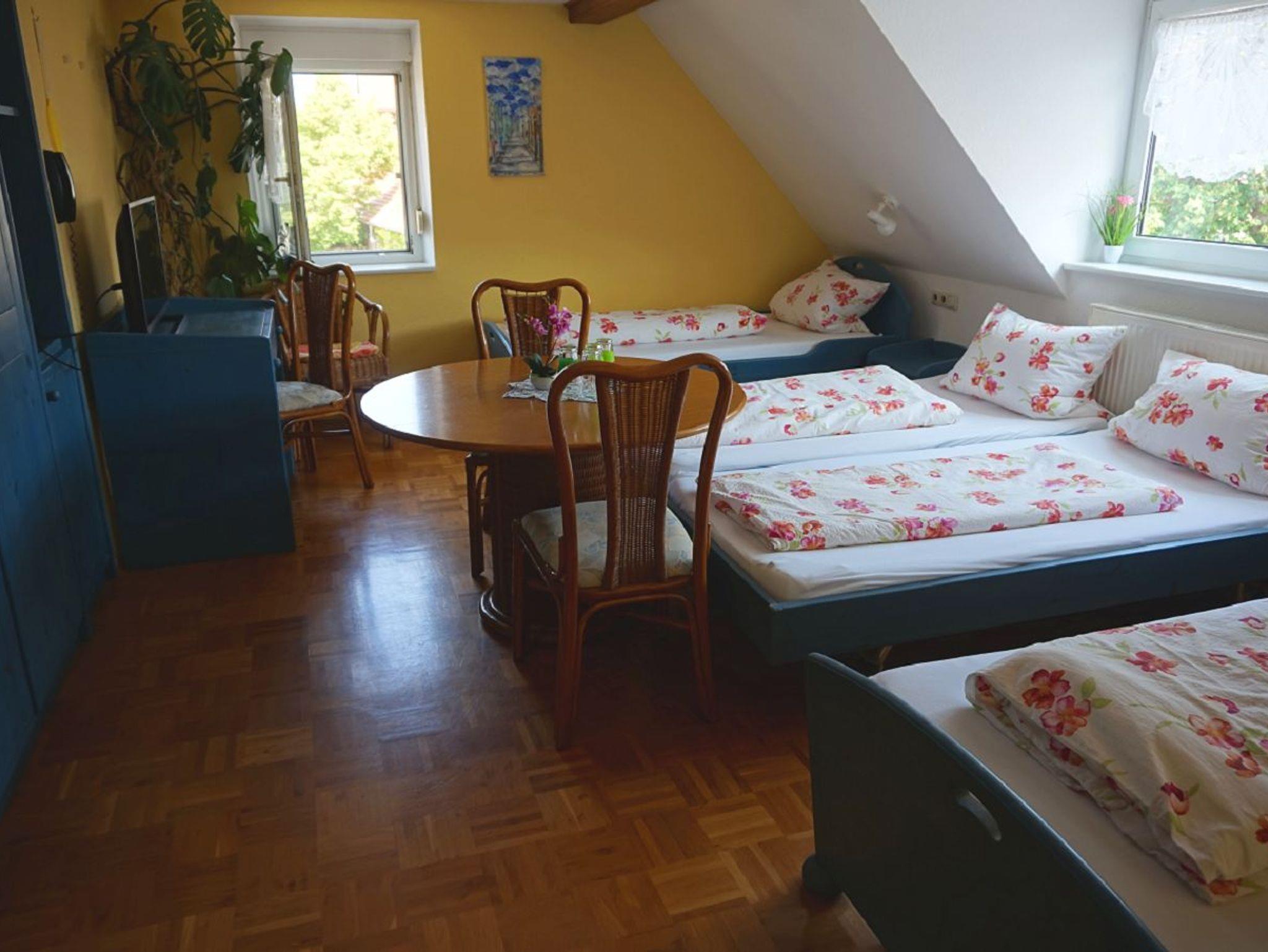 Das gemütliche Zimmer ist mit Massivholzmöbeln und Parkettboden eingerichtet. Zu den zwei Einzelbetten können zusätzlich zwei weitere Betten aufgestellt werden. Das Badezimmer ist mit Dusche, WC, Föhn und Handtüchern ausgestattet. Außerdem sind ein Fernseher, Telefon und kostenloses Wlan vorhanden.