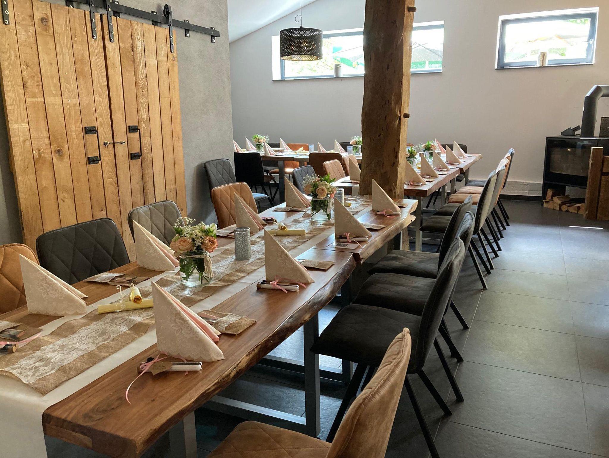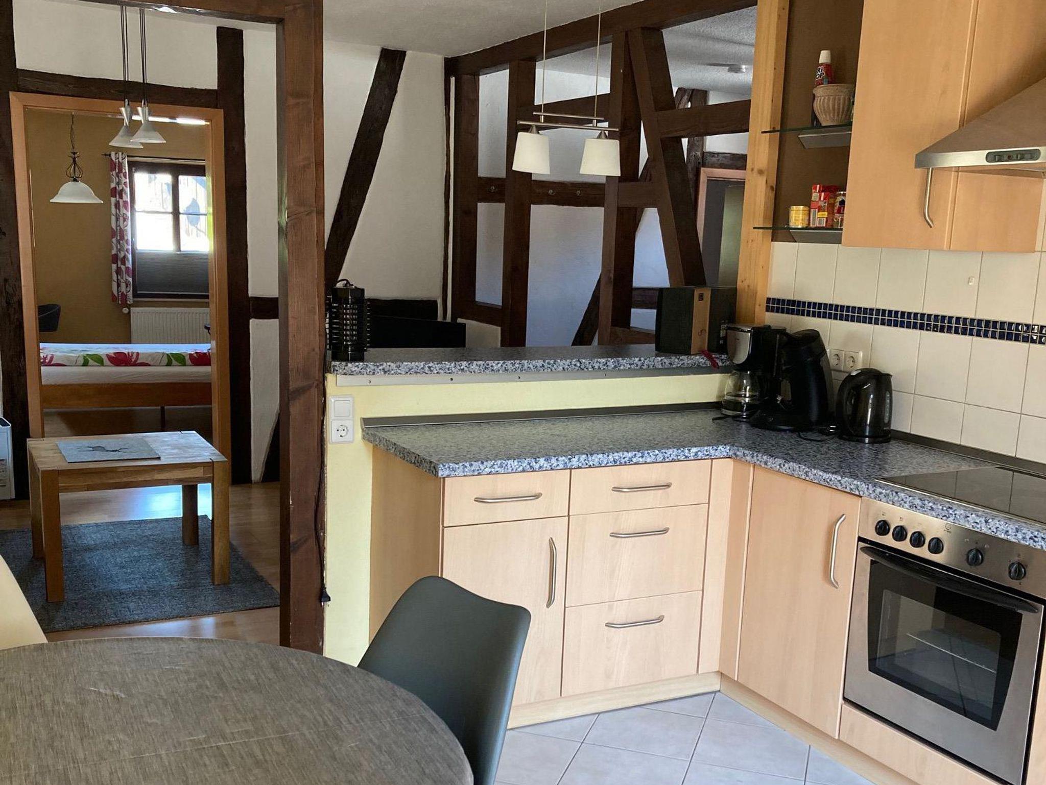 Für längere Aufenthalte stehen drei komfortable Ferienwohnungen bereit, die mit moderner Ausstattung und einem Hauch ländlicher Gemütlichkeit überzeugen. Parkplätze befinden sich im hinteren Teil des Anwesens.