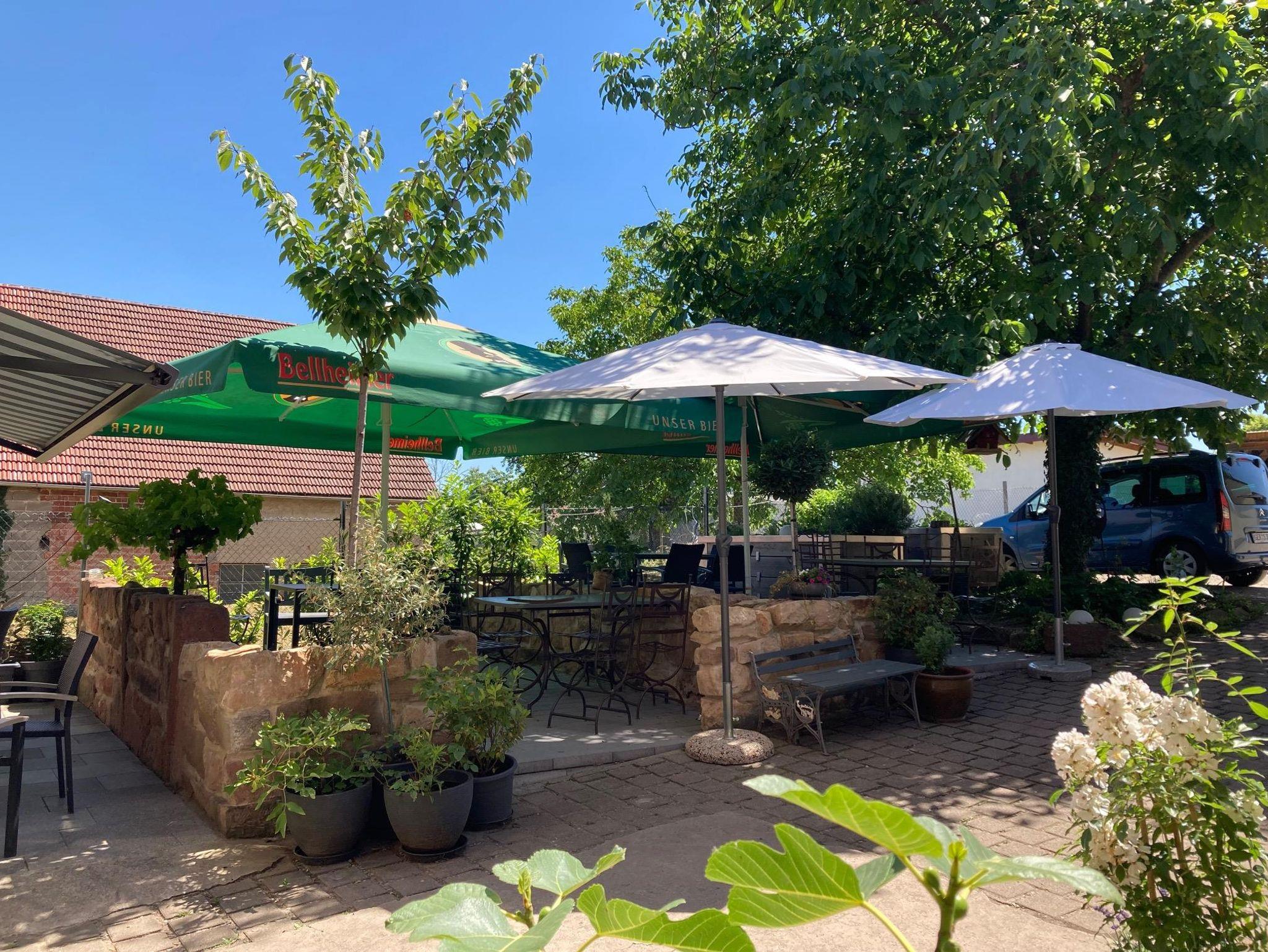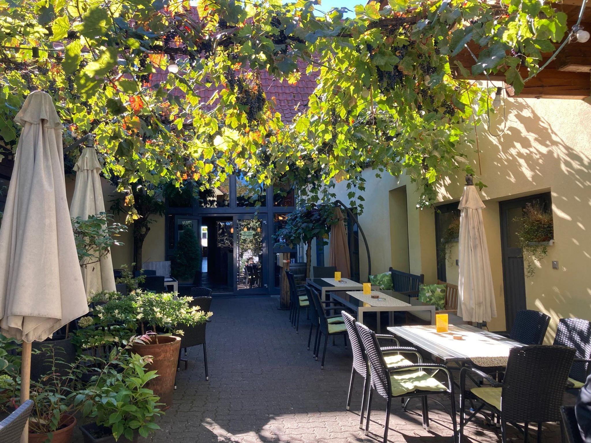 Im mediterran gestalteten Innenhof genießen Gäste unter freiem Himmel oder in unserer Weinstube regionale Spezialitäten und saisonale Gerichte aus der eigenen Küche – begleitet von einem guten Glas Pfälzer Wein. Das gemütliche Ambiente lädt zum Verweilen nach einer Wanderung oder Radtour ein, etwa auf dem direkt vorbeiführenden Storchenwanderweg.