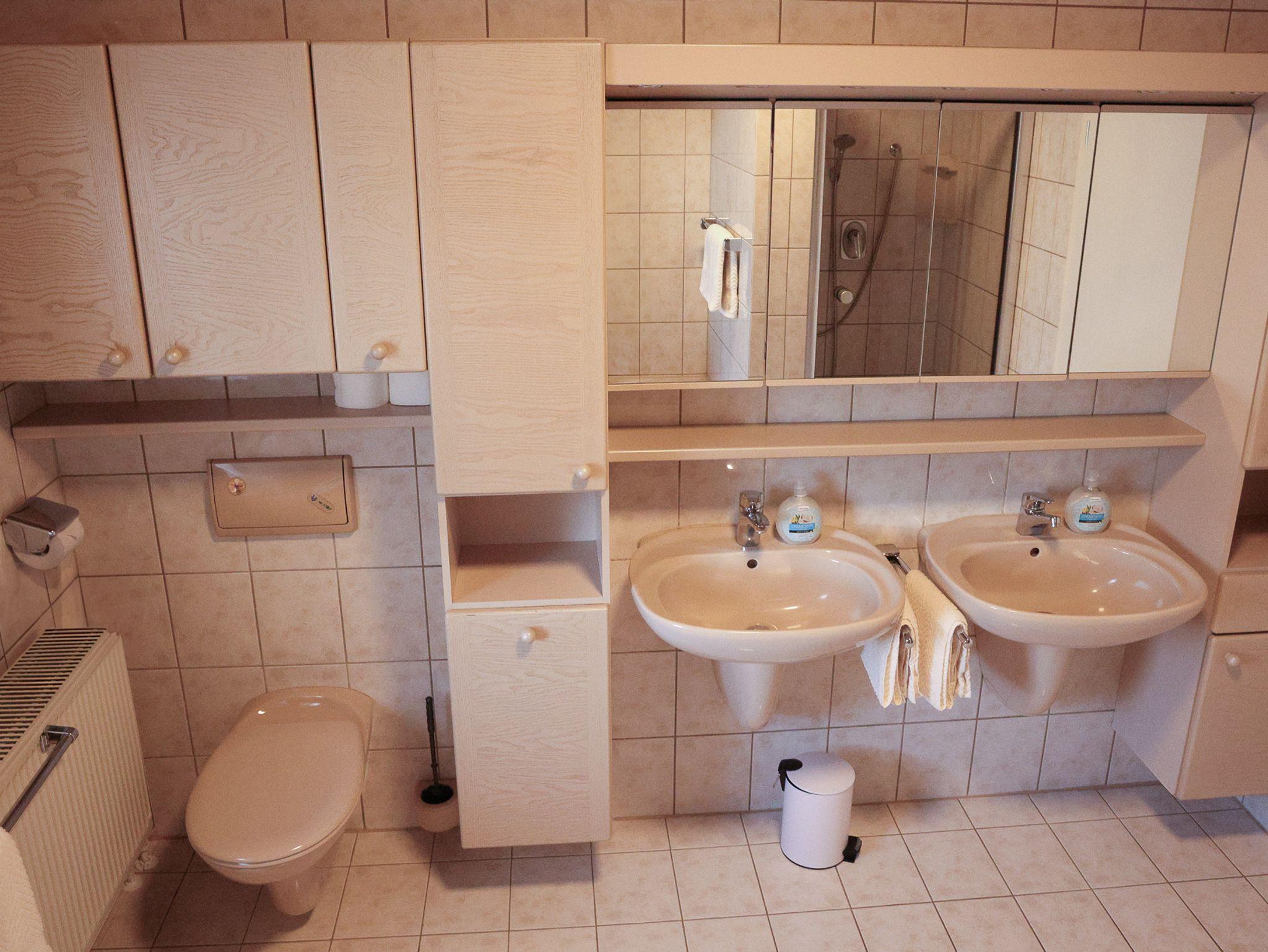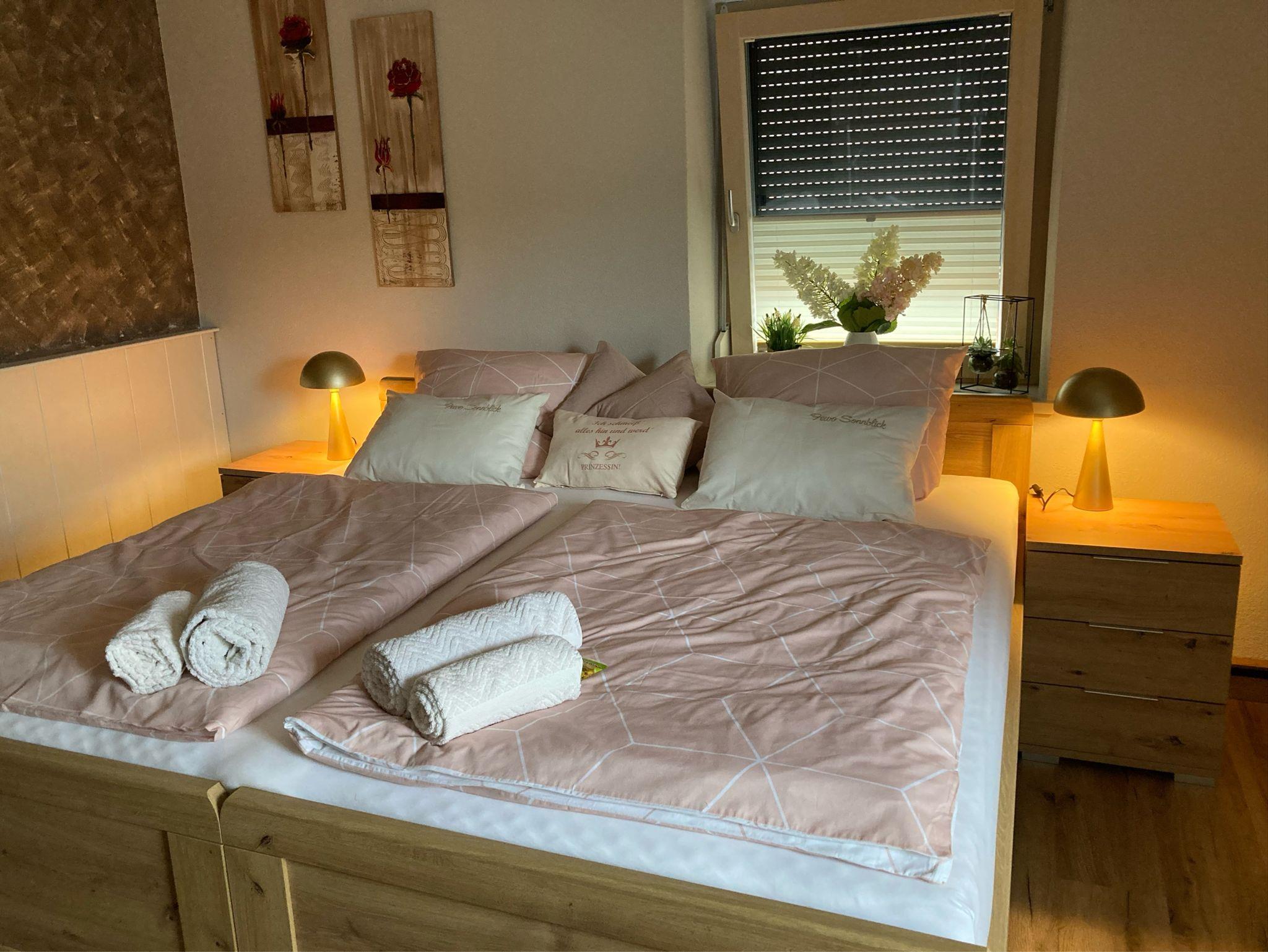 Die Wohnung verfügt über zwei separate Zimmer mit drei Einzelbetten – ideal für Familien oder kleine Gruppen. Beide Zimmer bieten WLAN und Sat-TV. Ein modernes Bad mit Verwöhndusche, Doppelwaschbecken, WC und Waschmaschine sorgt für Komfort, zusätzlich gibt es ein separates WC. Die großzügige Wohn- und Essküche ist komplett ausgestattet und lädt zum Kochen und Verweilen ein.
