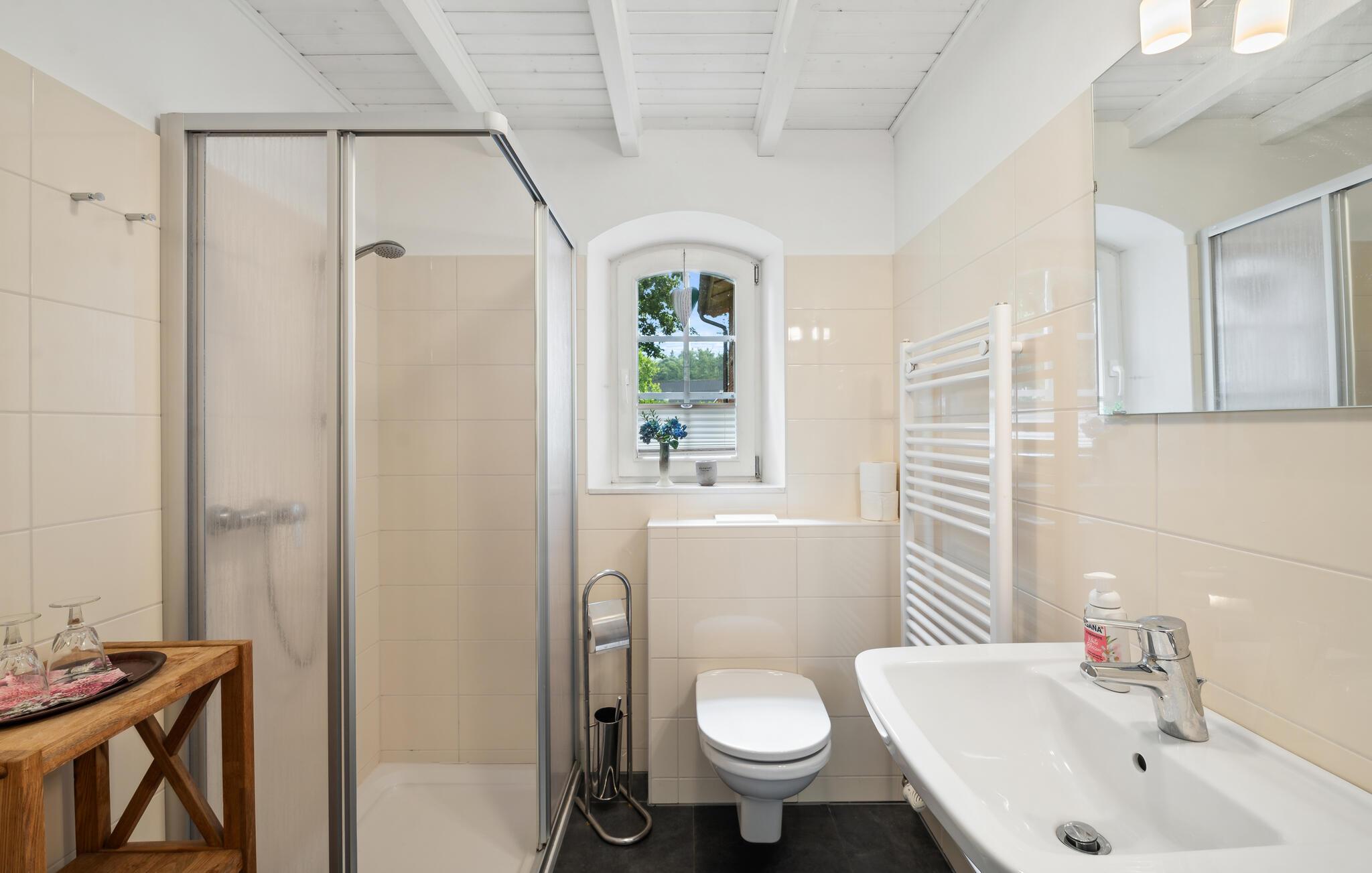 Badeværelse (nr. 1) - WC. Varmt og koldt vand. Bruser