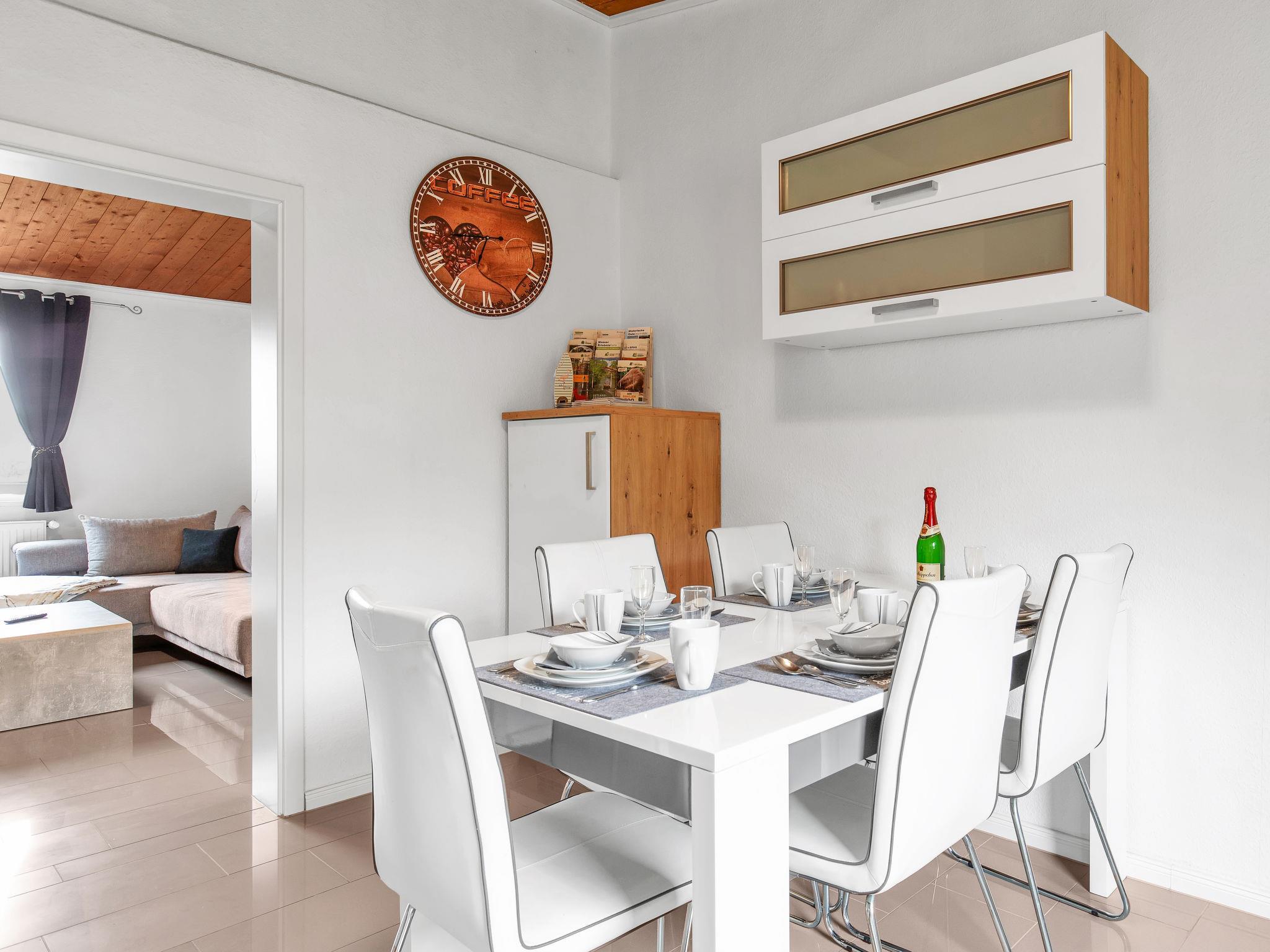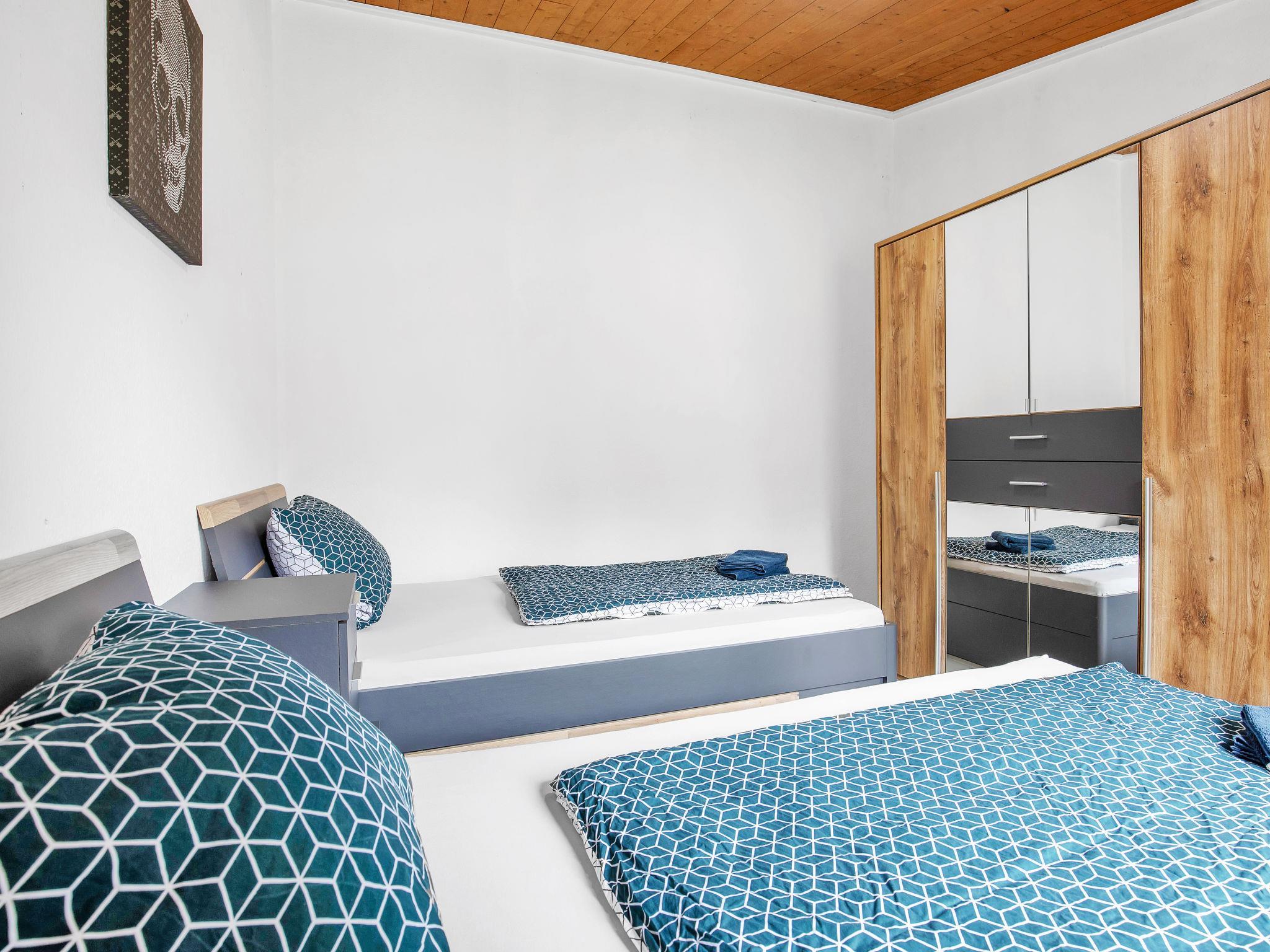 3-room apartment 80 m2, on the ground floor. Fully renovated in 2023, modern and tasteful furnishings: large living room with Scandinavian wood stove and TV (flat screen). 1 room with 2 french beds (140 cm, length 200 cm). 1 room with 1 double bed (180 cm, length 200 cm). Large kitchen (oven, dishwasher, 4 ceramic glass hob hotplates, toaster, kettle, electric coffee machine) with dining table. Shower/WC. Gas heating. Facilities: Internet (WiFi, free). Please note: non-smoking house.