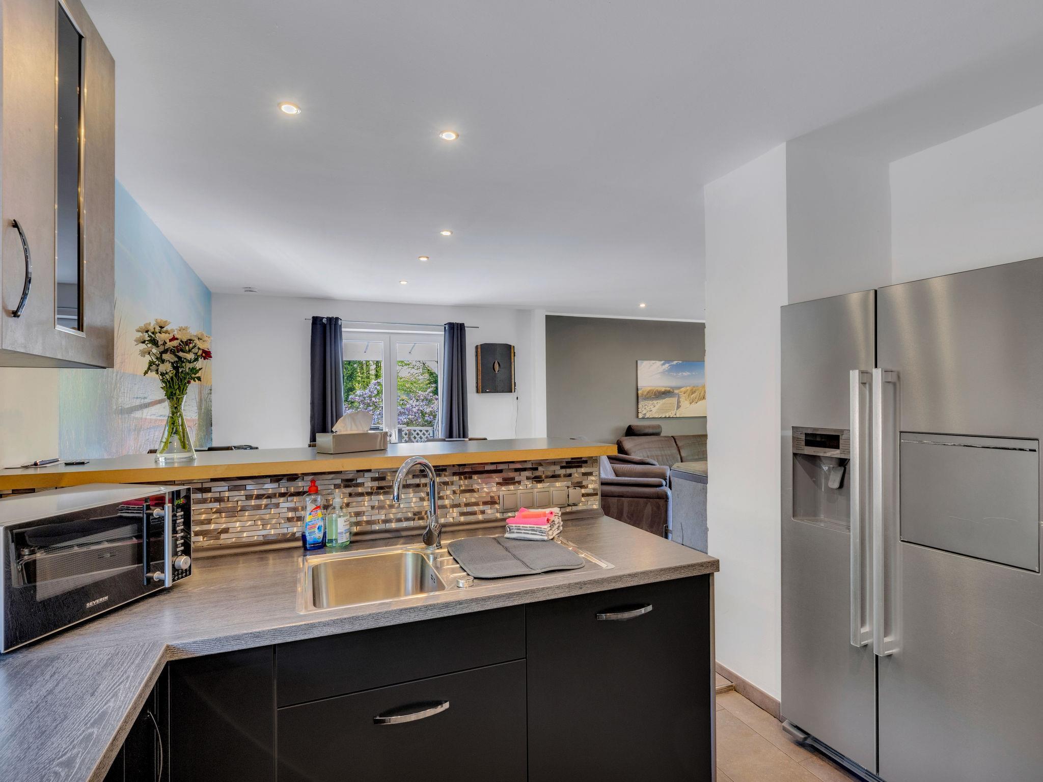 4-room house 150 m2 on 2 levels. Comfortable and modern furnishings: living/dining room with Scandinavian wood stove, digital TV and flat screen. Exit to the terrace. 1 room with 1 double bed (180 cm, length 200 cm). Open kitchen (oven, dishwasher, 4 ceramic glass hob hotplates, toaster, kettle, microwave, electric coffee machine). Shower/WC. Gas heating. Upper floor: 1 room with 1 bed (90 cm, length 200 cm), 1 double bed (180 cm, length 200 cm), digital TV and flat screen. 1 room with 1 bed (90 cm, length 200 cm), 1 double bed (180 cm, length 200 cm), digital TV and flat screen. Bath/WC. Terrace furniture, barbecue. Facilities: children's high chair, baby cot. Internet (WiFi, free). Please note: suitable for families. Non-smoking house. Maximum 1 pet/ dog allowed.