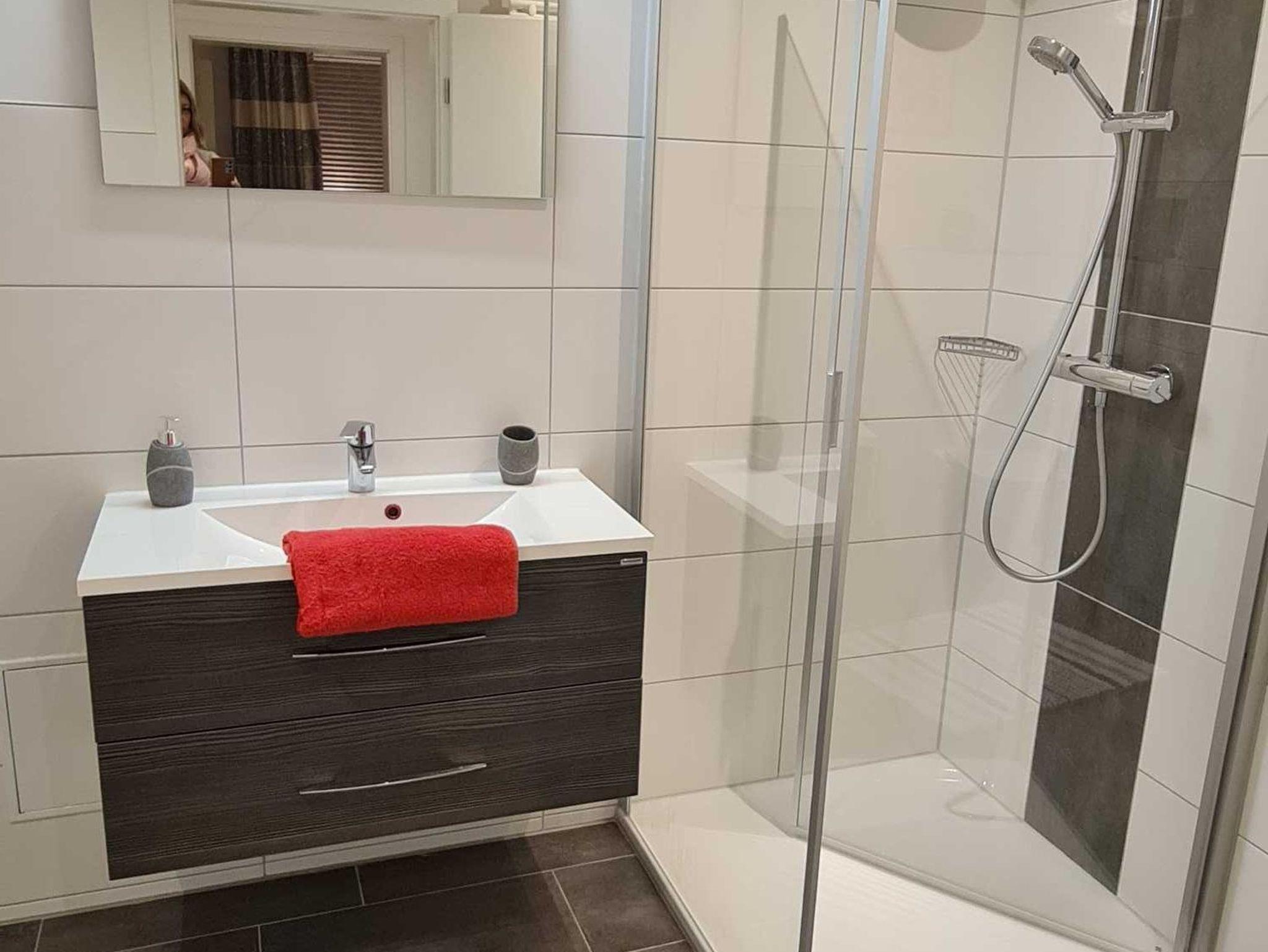 In der Ferienwohnung ist in sämtlichen Räumen Laminat als Fußbodenbelag verarbeitet. Lediglich das Badezimmer ist gefliest.