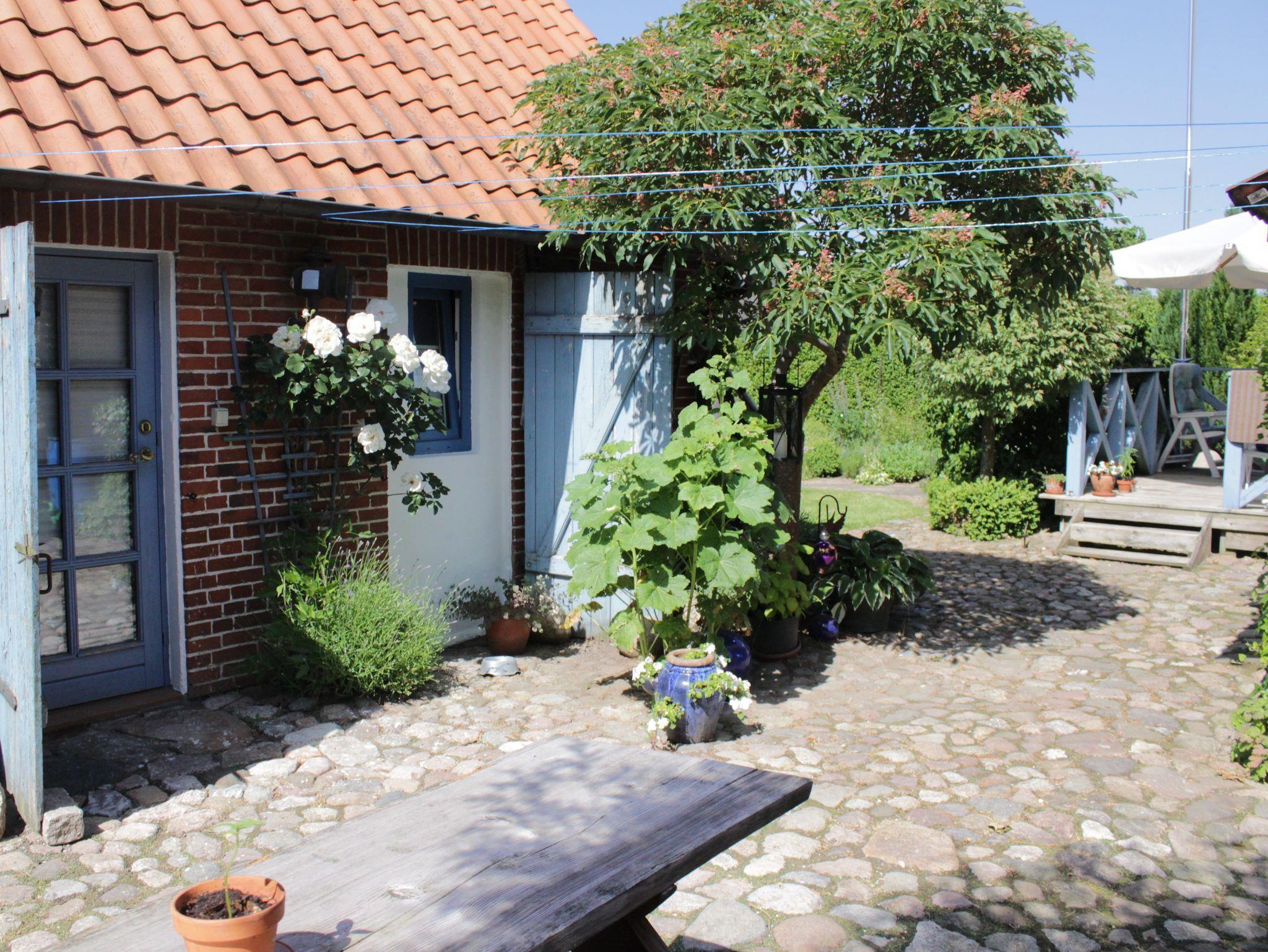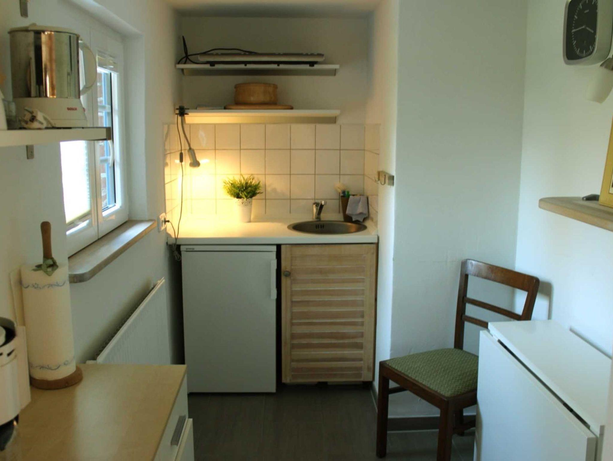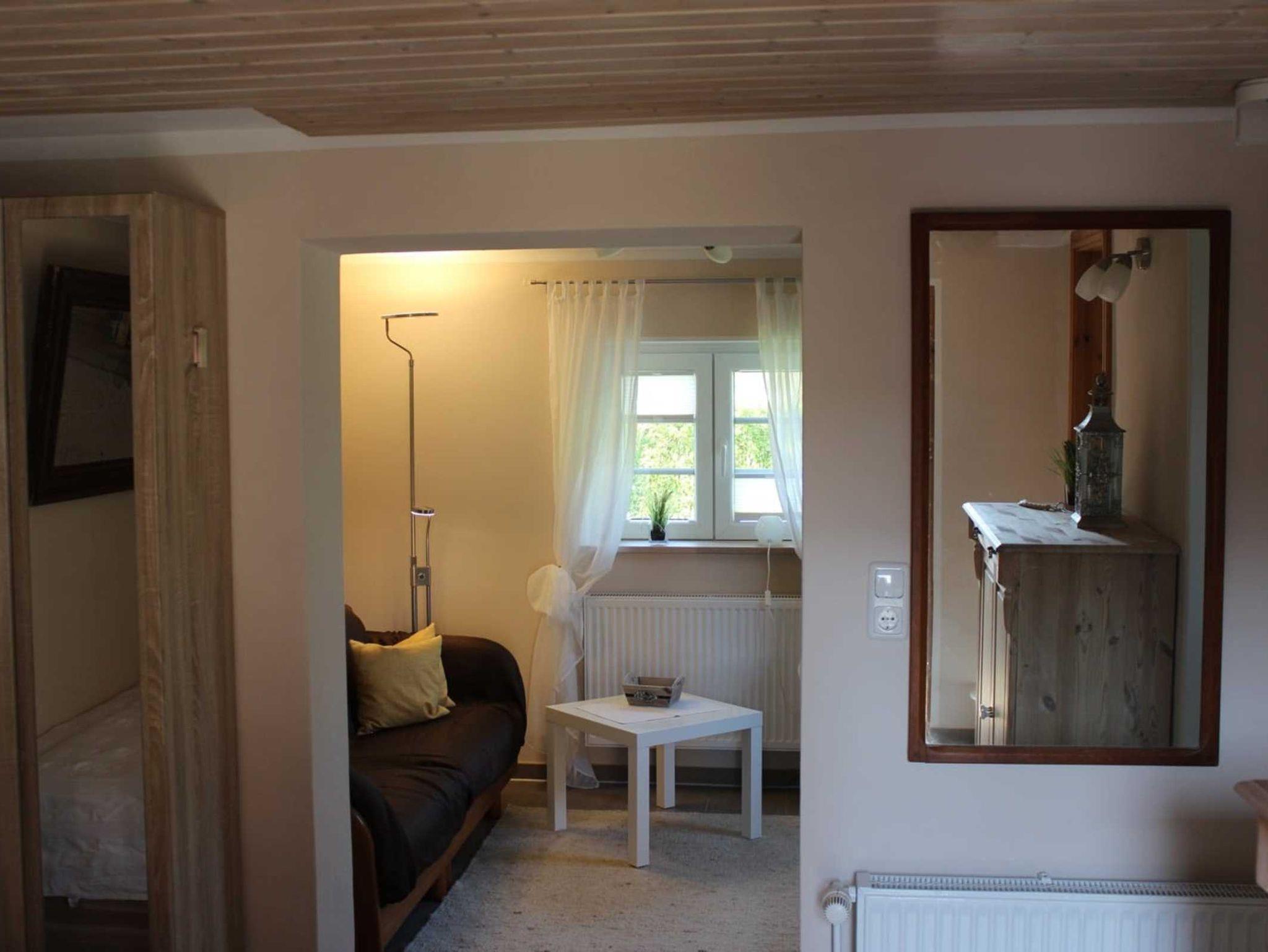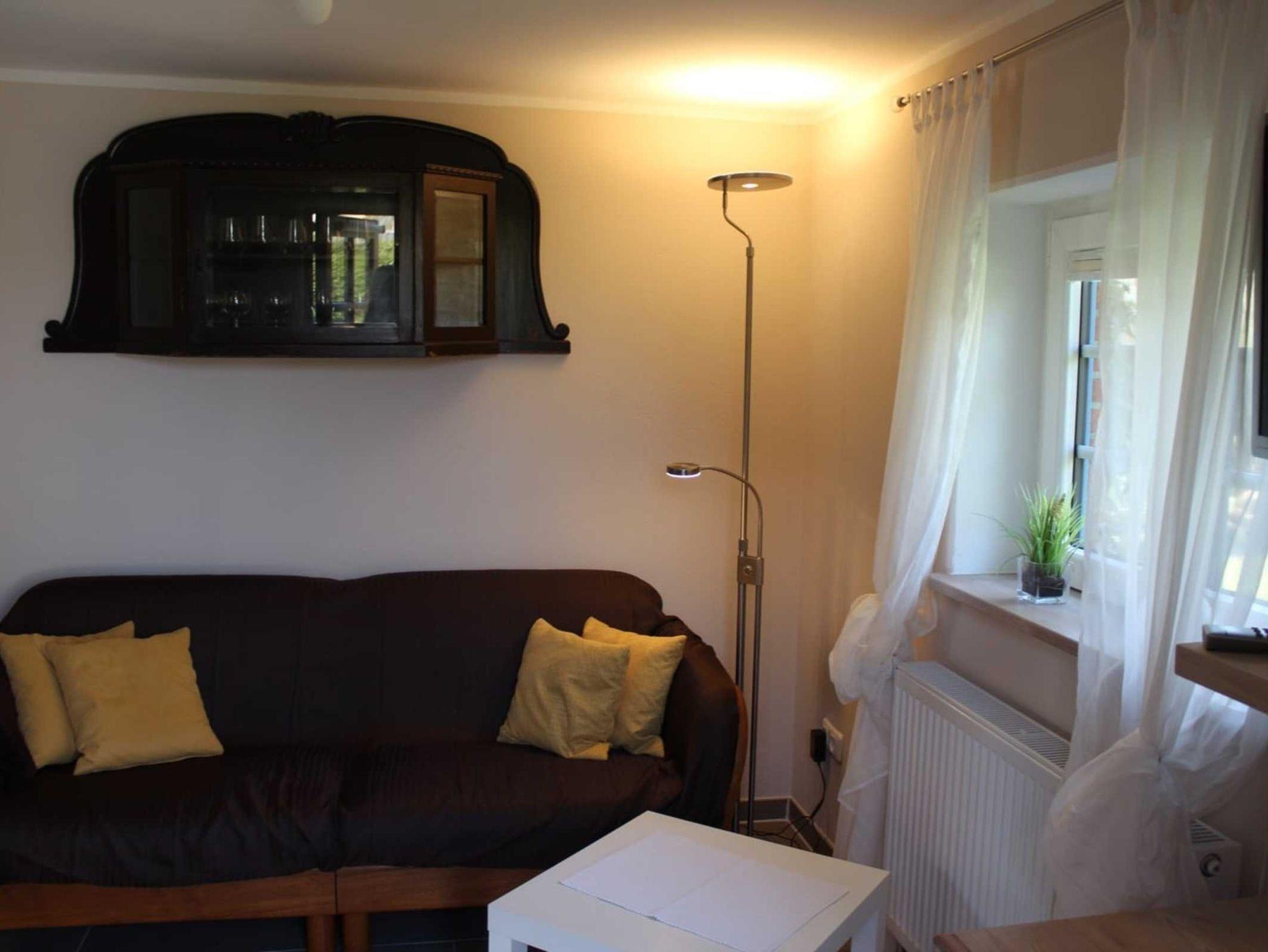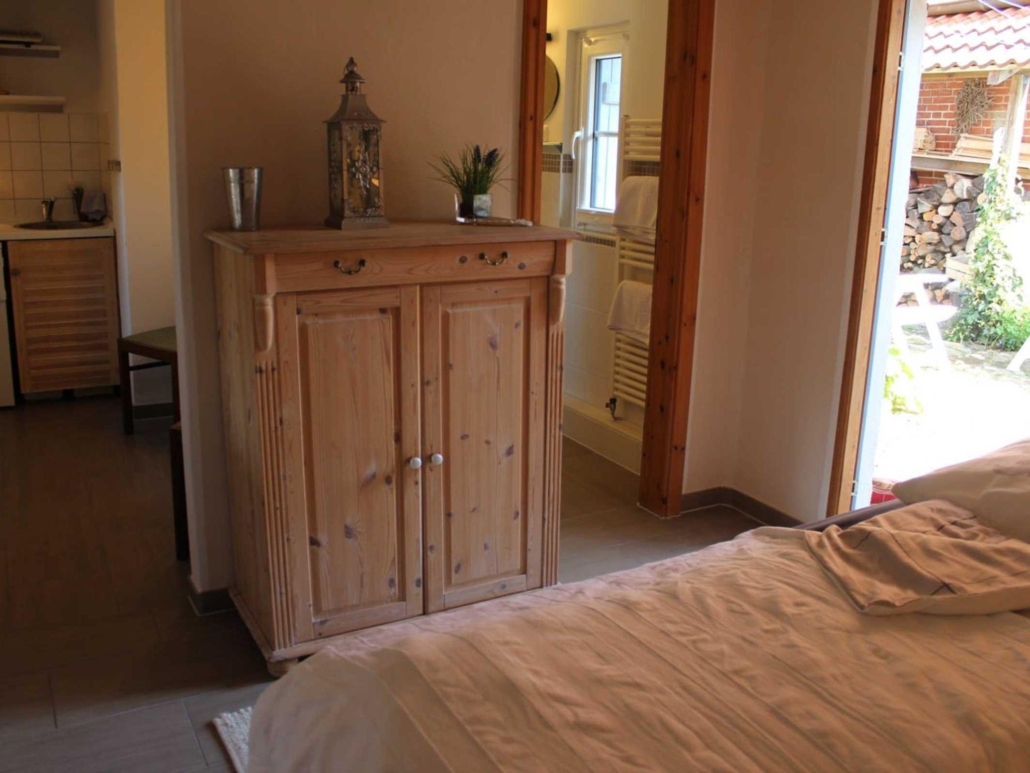 1 Schlafzimmer Doppelbett, 1 Wohnzimmer, Küche, sep. Duschbad, Terrasse, Grillplatz und Strandkorb im Garten.