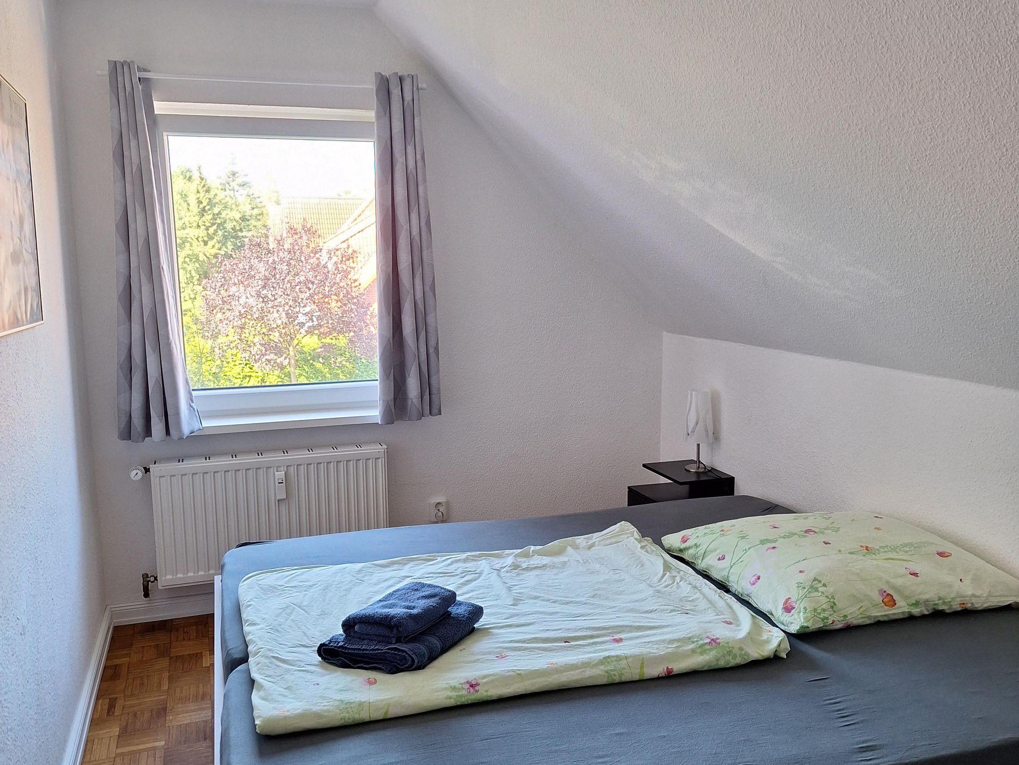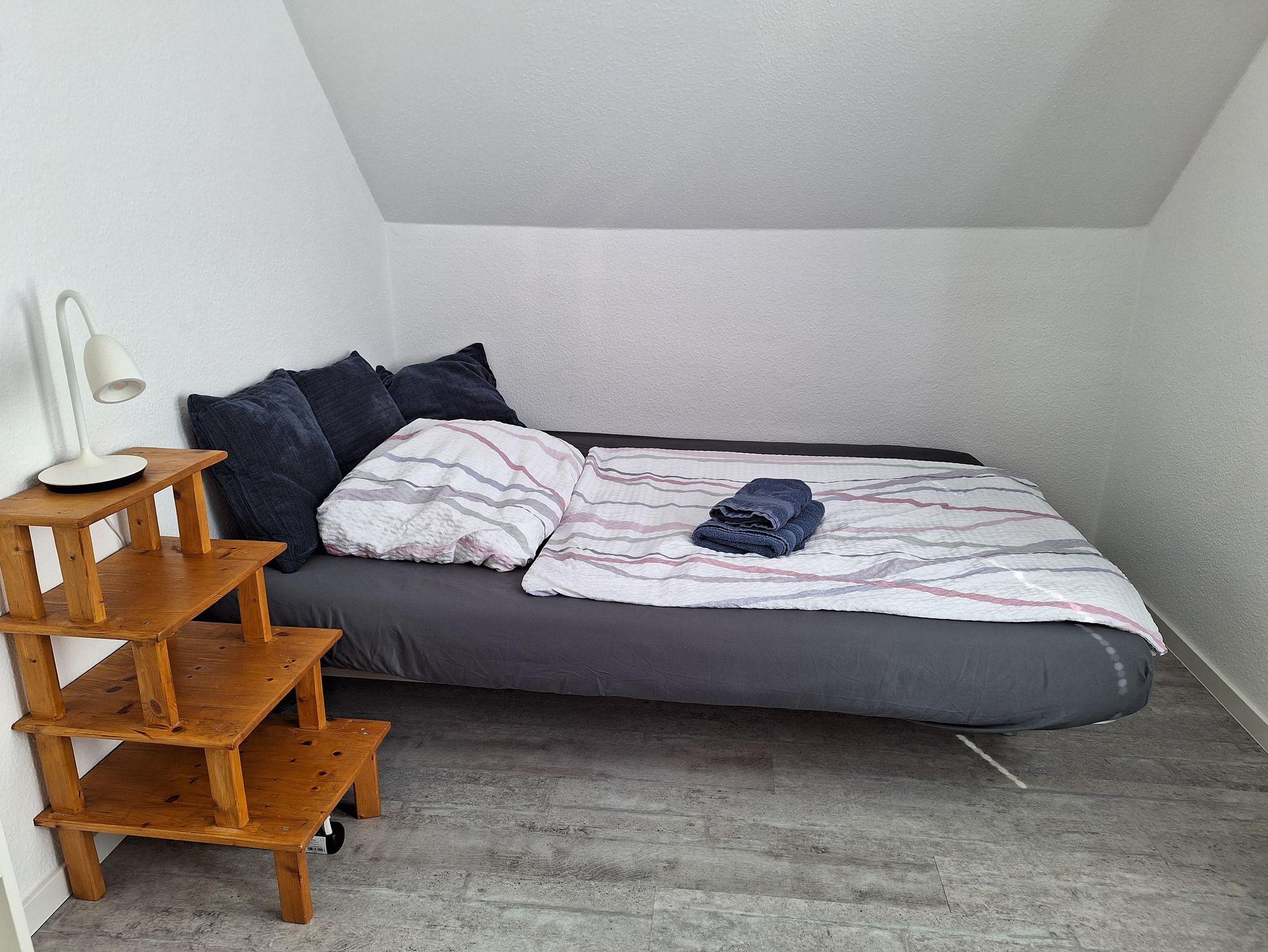 Im Schlafzimmer direkt neben dem Wohnzimmer steht ein gemütliches Doppelbett in der Größe 1,80 x 2 Meter.