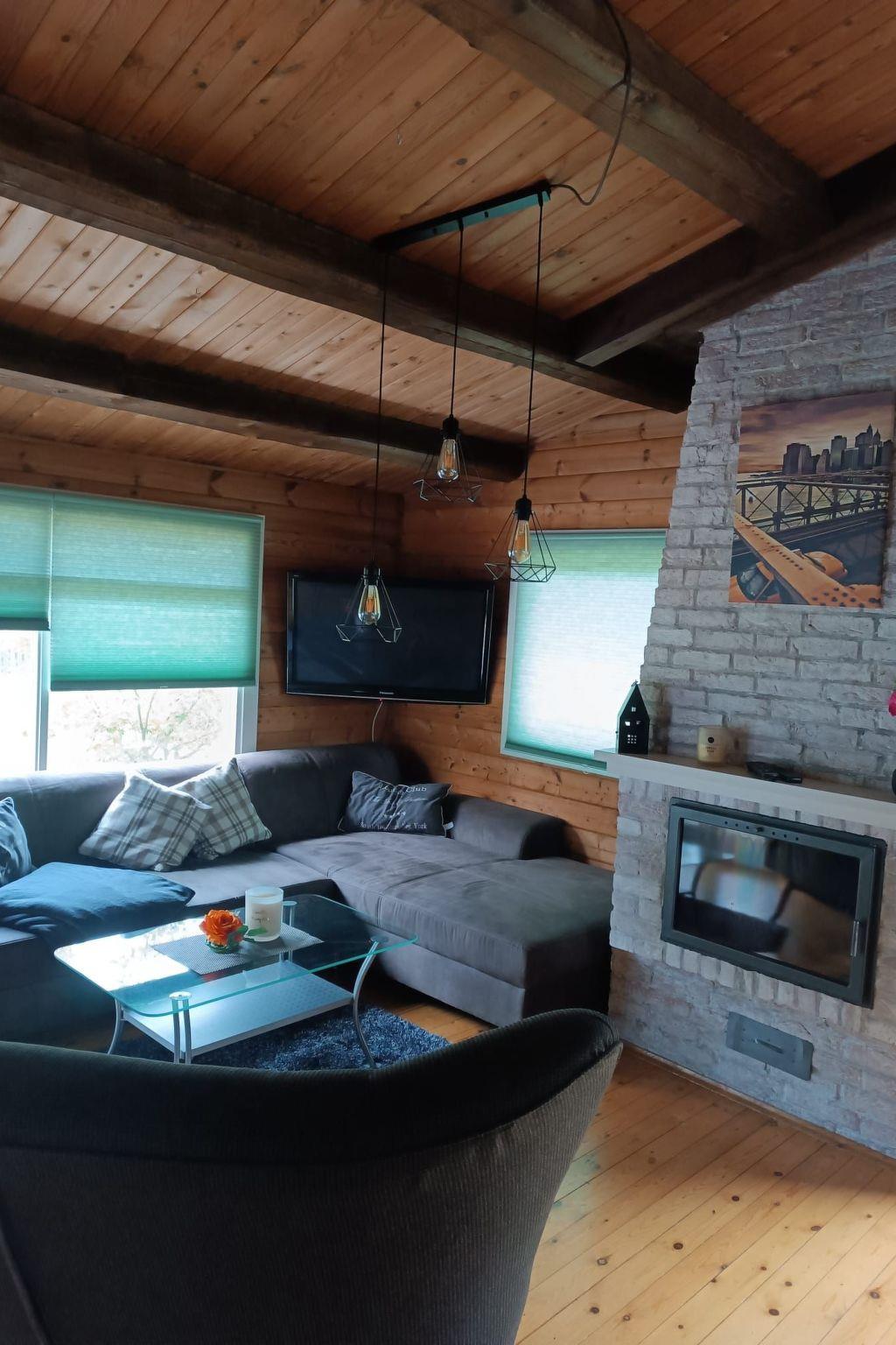 In the holiday home you will find an open living and dining area with a TV and a fireplace for cosy evenings, our living room is equipped with a sofa bed. Two additional people can sleep here.