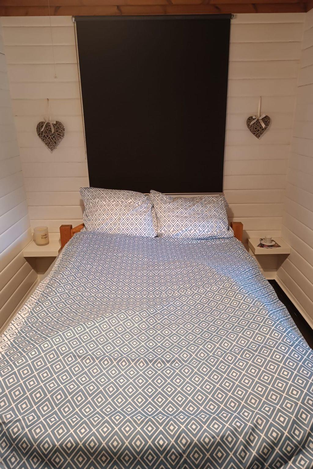 The bedroom is furnished with a large bed and there is a large wardrobe in the adjoining room where you can store various items.