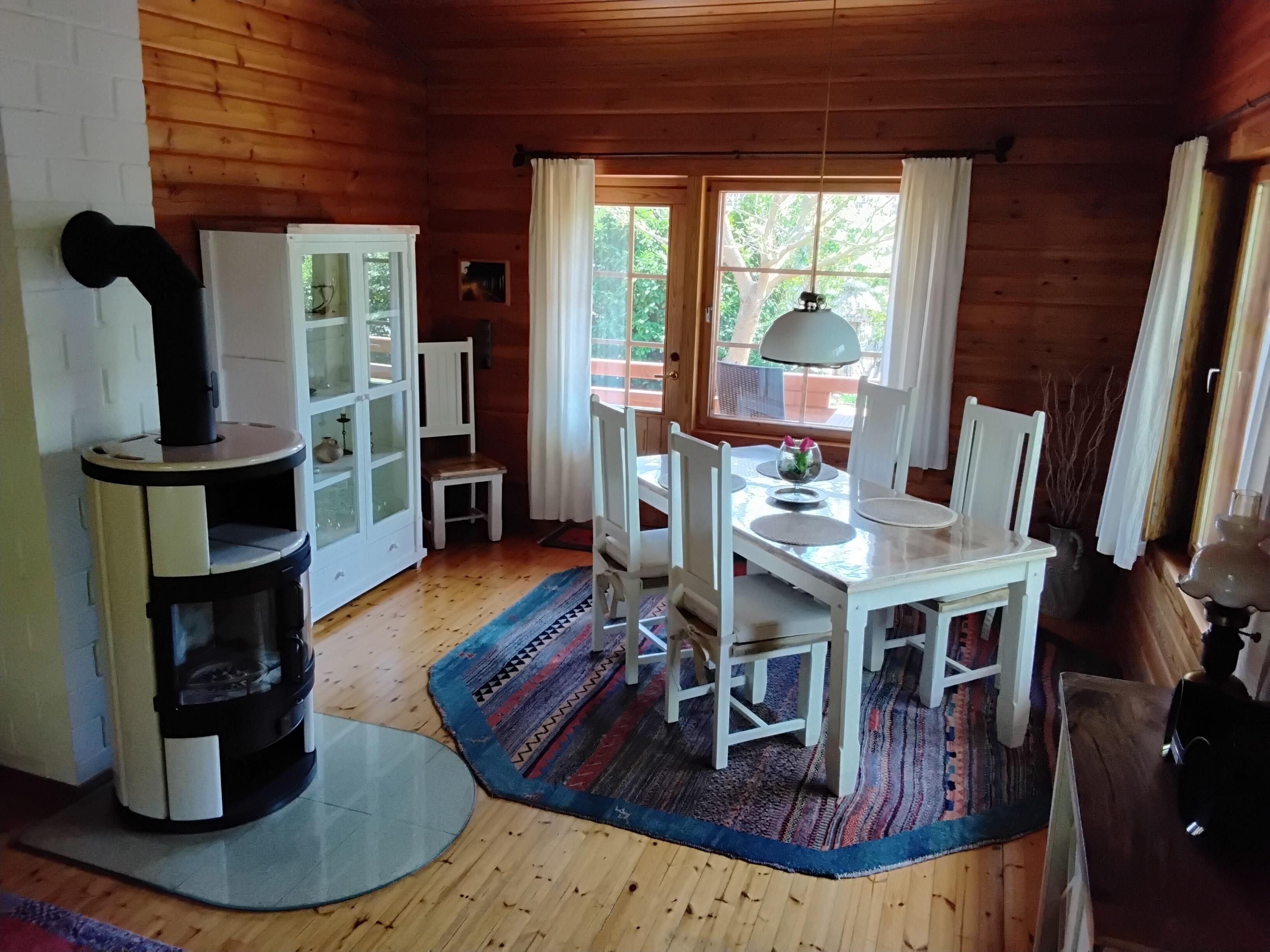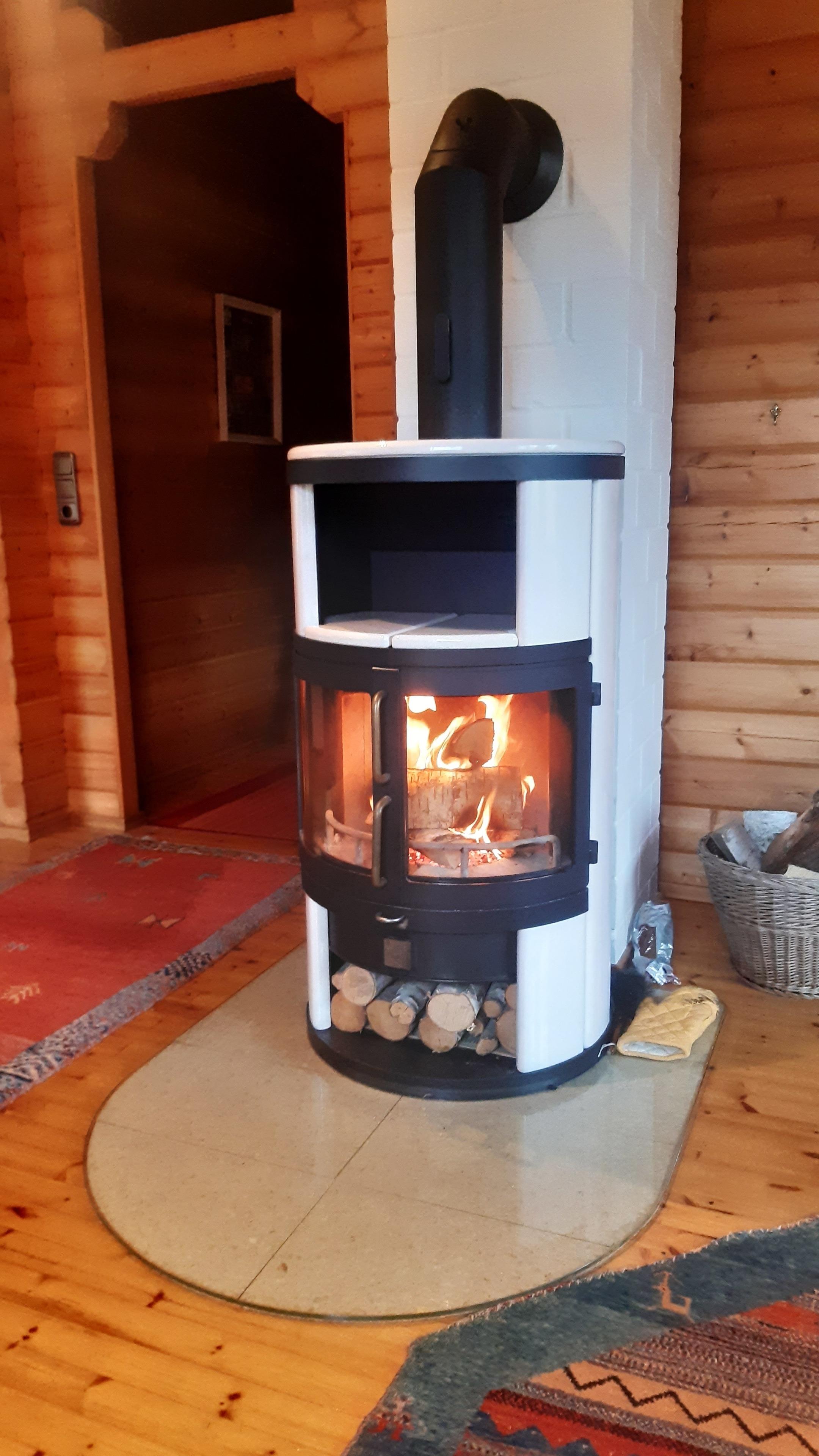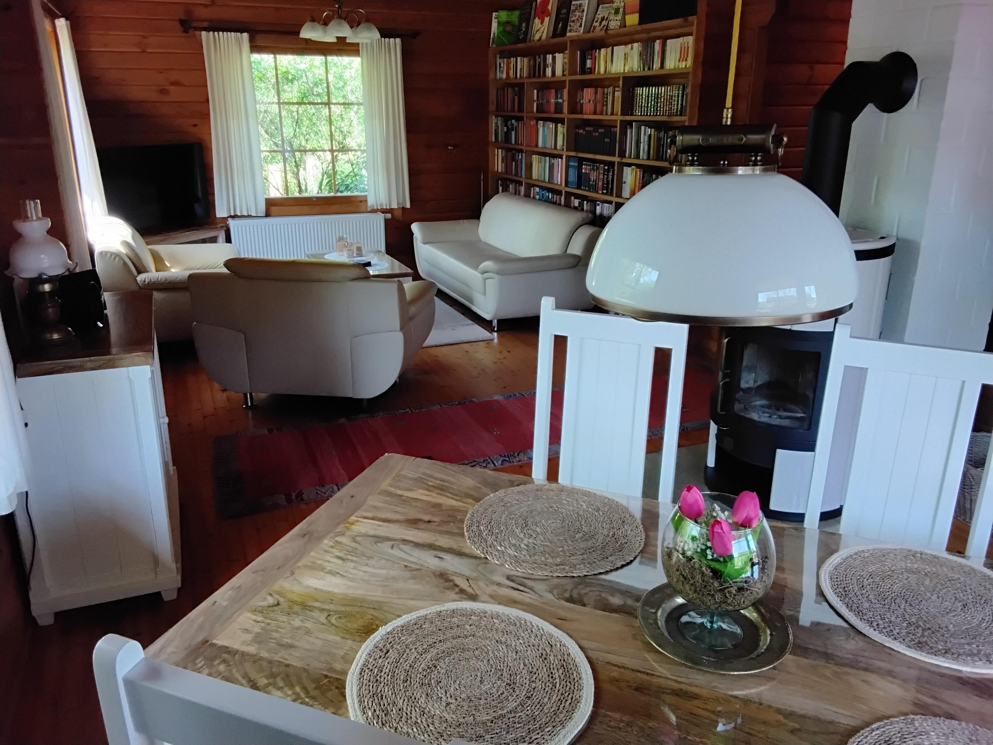 Es erwartet Sie ein großzügiger Wohnbereich mit einem Kaminofen und einer