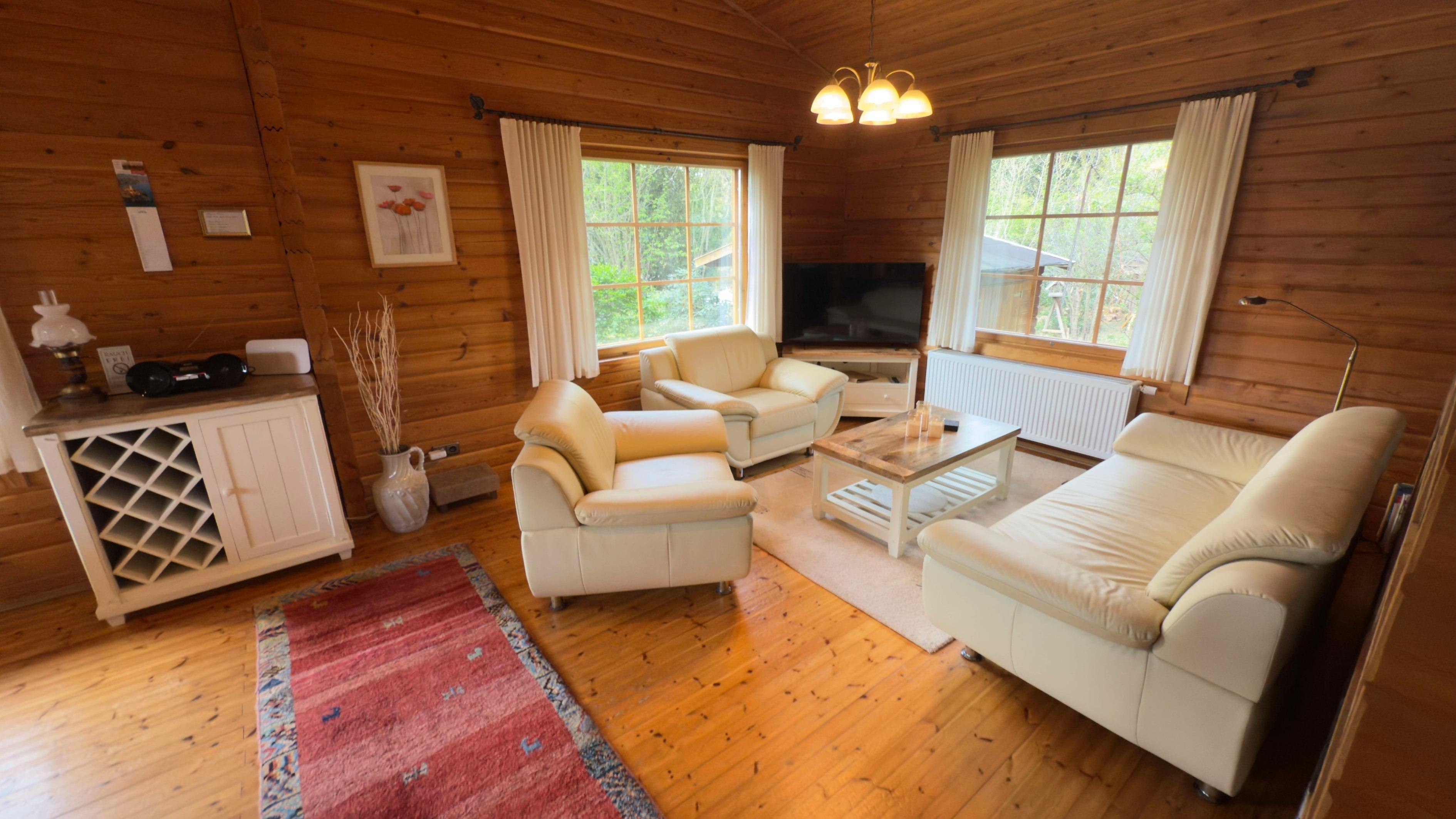 Unser freistehendes finnisches Blockhaus mit einer Wohnfläche von 110 qm bietet ausreichend Raum für einen entspannten Urlaub. Hier finden 2-5 Personen Platz, ein Haustier ist ebenfalls willkommen.