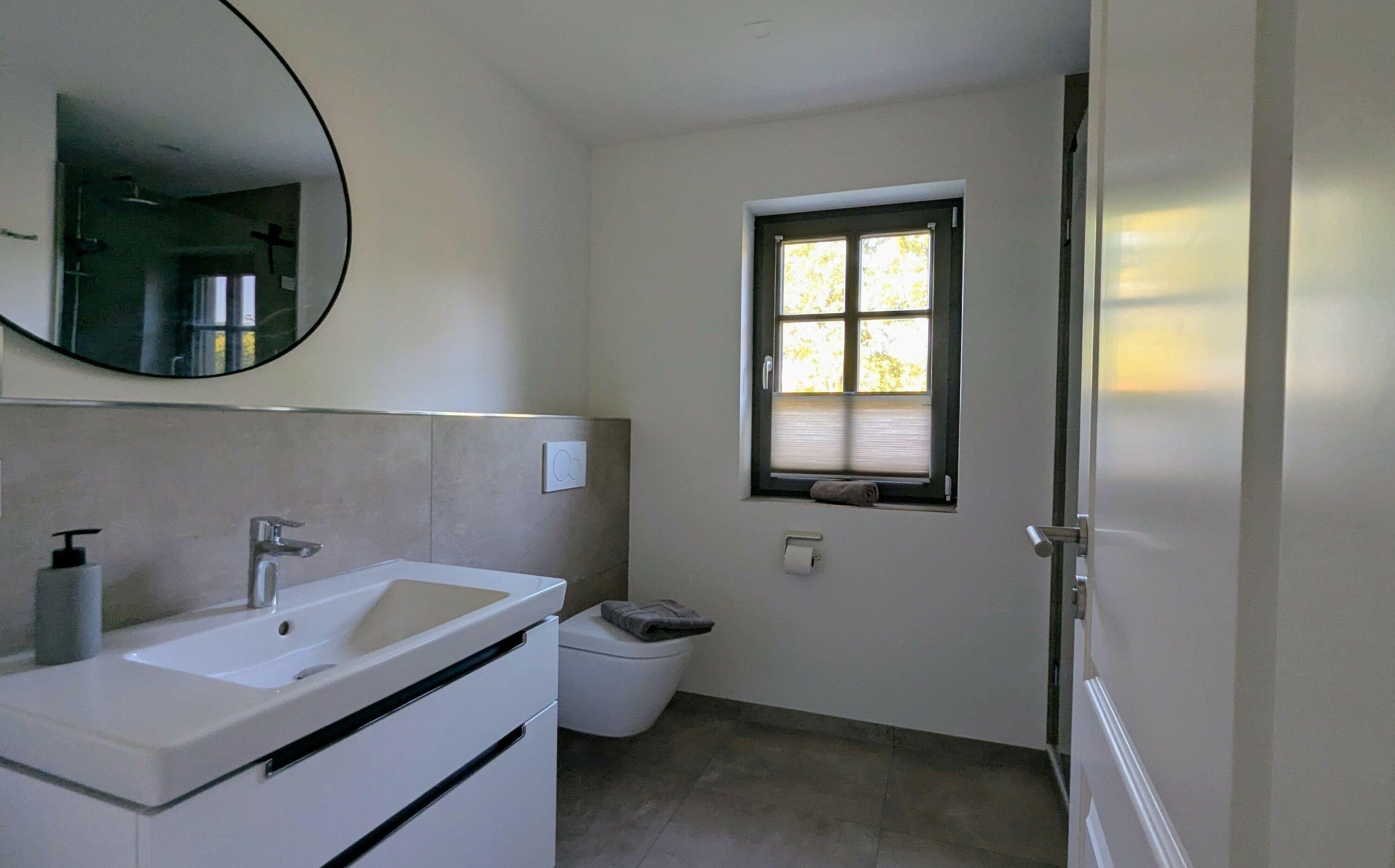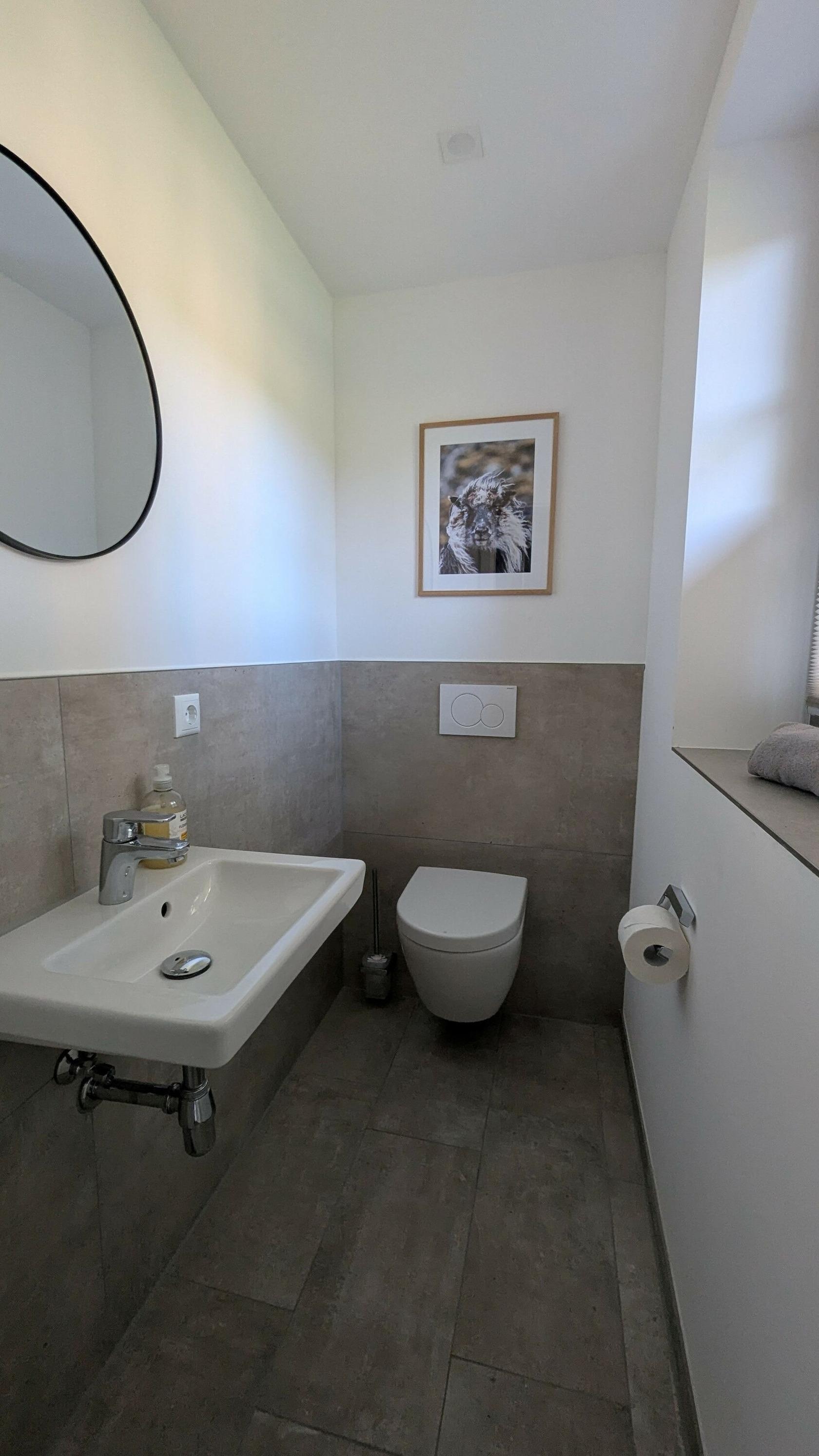 Im Obergeschoss erwarten Sie zwei geschmackvoll eingerichtete Schlafzimmer mit komfortablen Boxspringbetten und einer praktischen Ankleide. Das helle, freundliche Bad mit Dusche lädt zum Entspannen ein, während ein zusätzliches Gäste-WC für zusätzlichen Komfort sorgt. Eine Waschmaschine steht Ihnen ebenfalls zur Verfügung, um Ihren Aufenthalt so angenehm wie möglich zu gestalten.