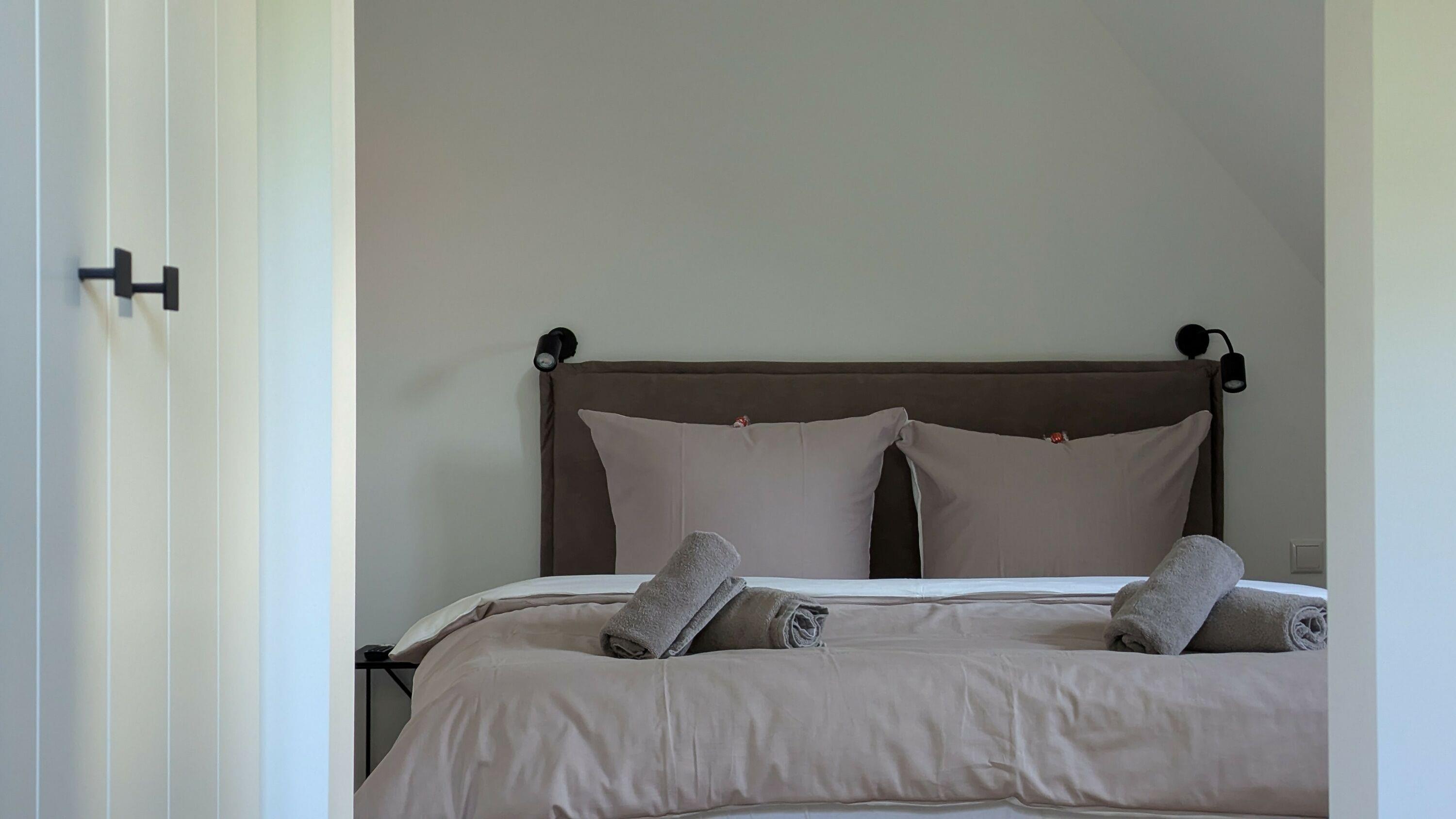 Hinweis: Die Betten sind bei Ihrer Anreise stets frisch bezogen. Bitte beachten Sie, dass grundsätzlich immer nur so viele Betten bezogen werden, wie Personen anreisen. Da das Haus über zwei Doppelbetten verfügt, werden bei einer Buchung von zwei Personen standardmäßig nur ein Doppelbett vorbereitet. Wir gehen davon aus, dass gemeinsam reisende Personen ein Doppelbett teilen. Sollten Sie eine andere Schlafaufteilung wünschen, teilen Sie uns dies bitte vor Ihrer Anreise mit, damit wir die Betten entsprechend vorbereiten können. Eine Einsicht in das persönliche Verhältnis der Reisenden besteht selbstverständlich nicht.