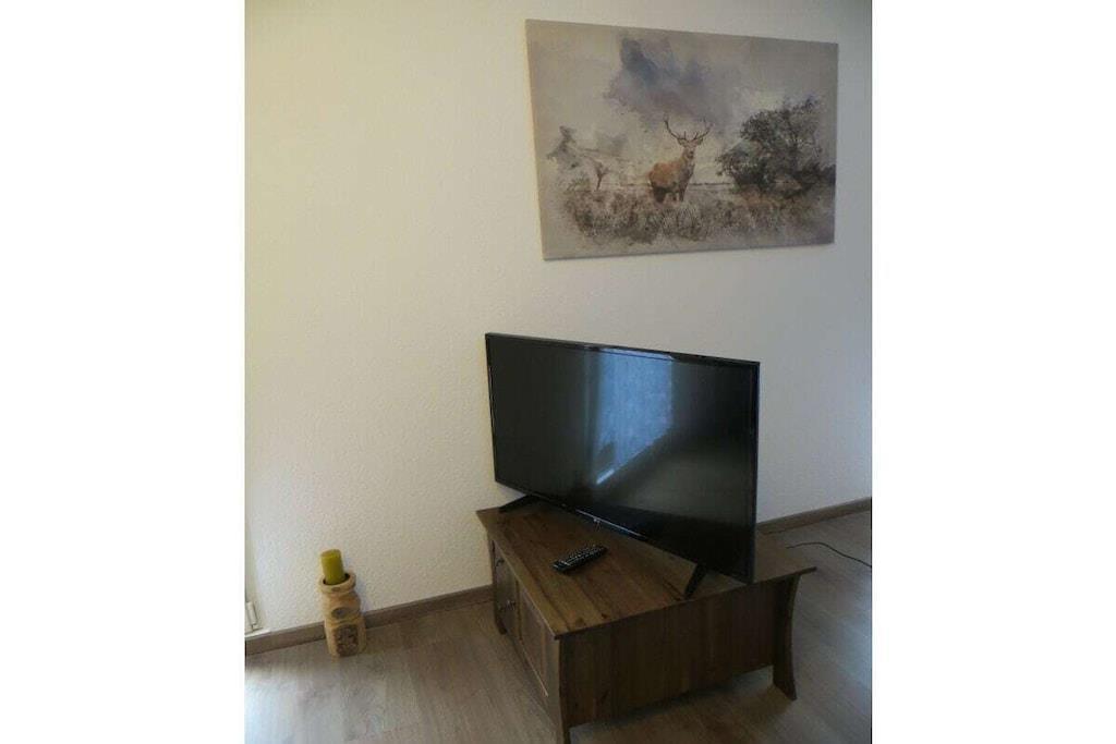 Kærligt møbleret ferielejlighed (80 m²) med balkon, renoveret og nyindrettet, bestående af en rummelig stue med komfortabel sidde- og spiseplads, elektrisk pejs og et stort smart-tv (inkl. engelsk parabolantenne). Soveværelse 1 har en komfortabel boxmadras (180 x 200 cm), mens soveværelse 2 har en stor sovesofa (160 x 200 cm) samt en ekstra seng og en babyseng (hvis nødvendigt). Det veludstyrede køkken tilbyder alt, hvad du behøver til madlavning, inklusive ovn, keramisk kogeplade og opvaskemaskine. Badeværelset har bruser, badekar og toilet.