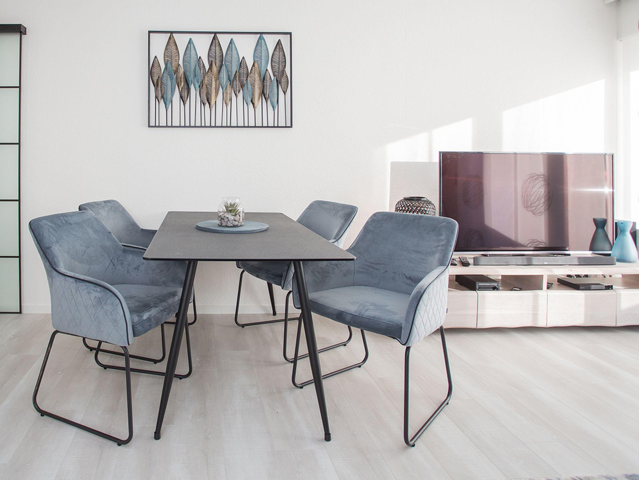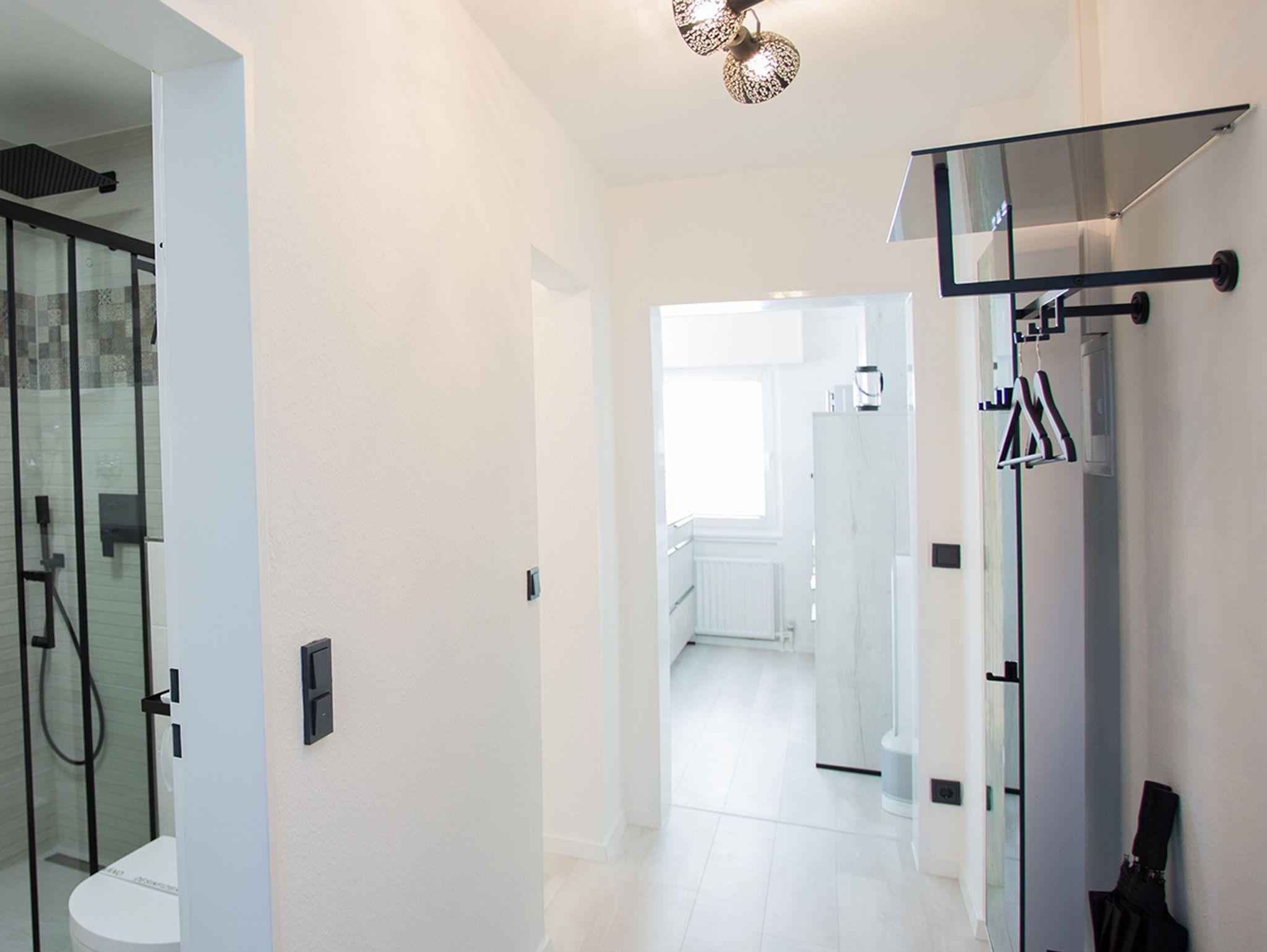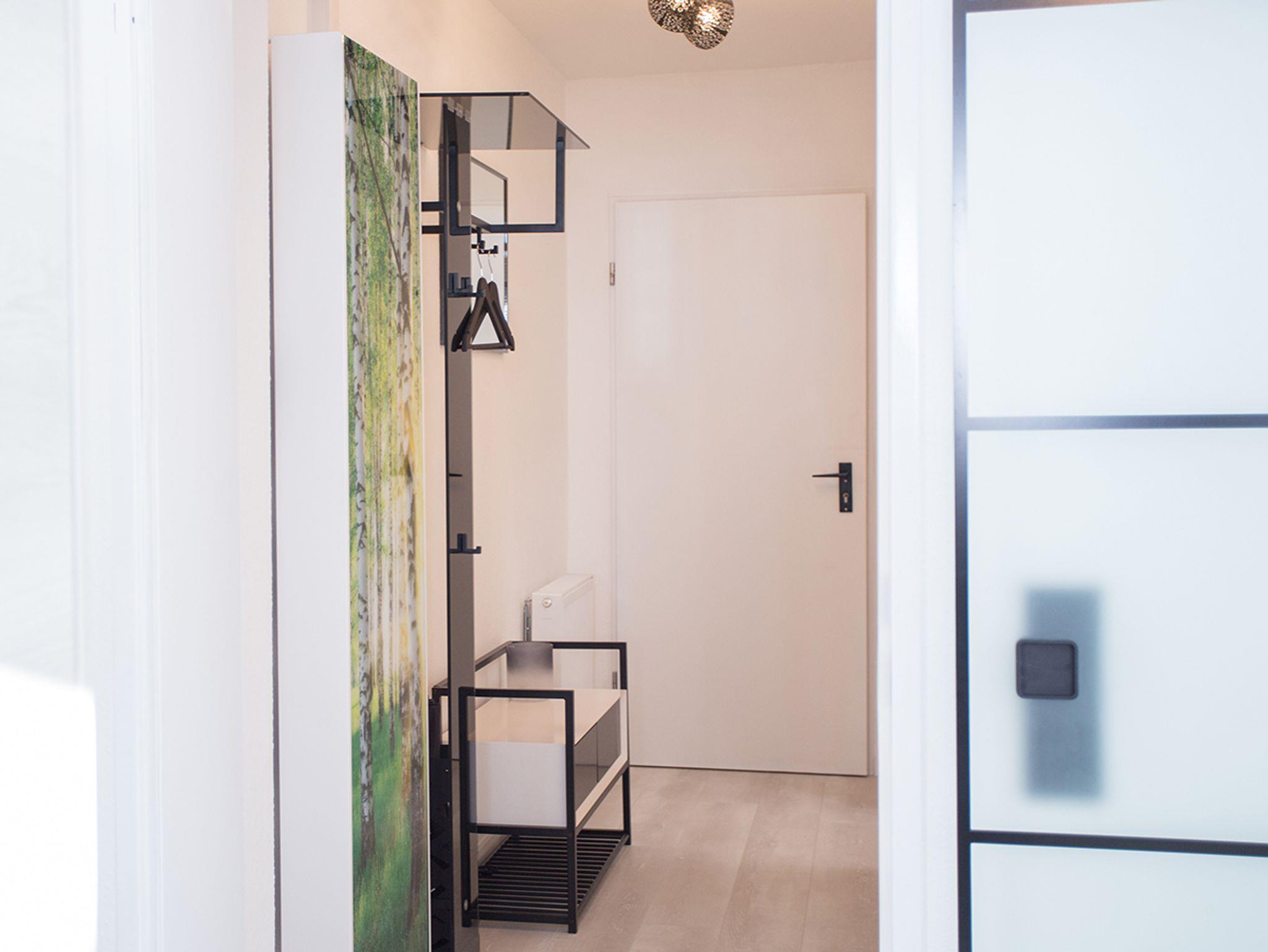 Die moderne Ferienwohnung verfügt u. a. über ein Schlafzimmer mit Boxspringbett, Infrarotsauna, Massagesessel,Elektrokamin, Wohnzimmer mit Loungeecke (Schlafsofa), einen sonnigen Balkon, eine gemütlichen Loogia mit Schreibtisch, eine vollausgestattete Wohn-Küche mit Kochinsel, ein Bad mit Dusche u.v.m.