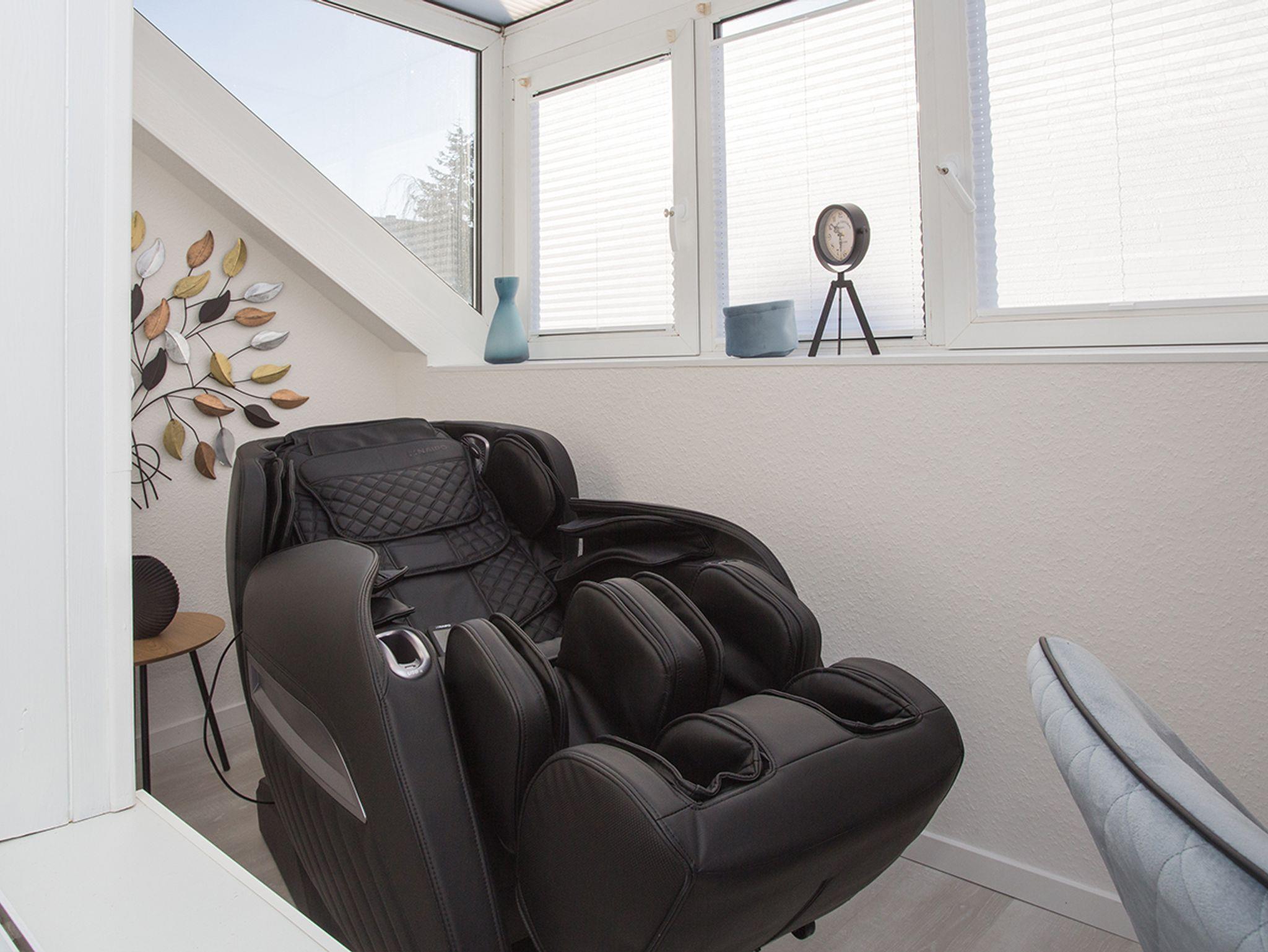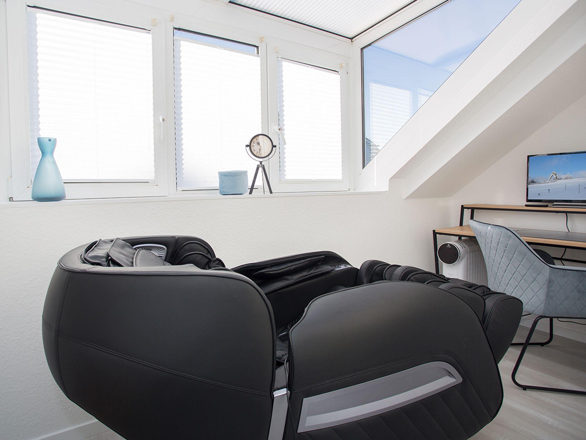 Besondere Highlights der Ferienwohnung sind die private Infrarotsauna, der professionelle Massagesessel, der Elektrokamin, die sonnendurchflutete Dachloggia und der großzügige Balkon.