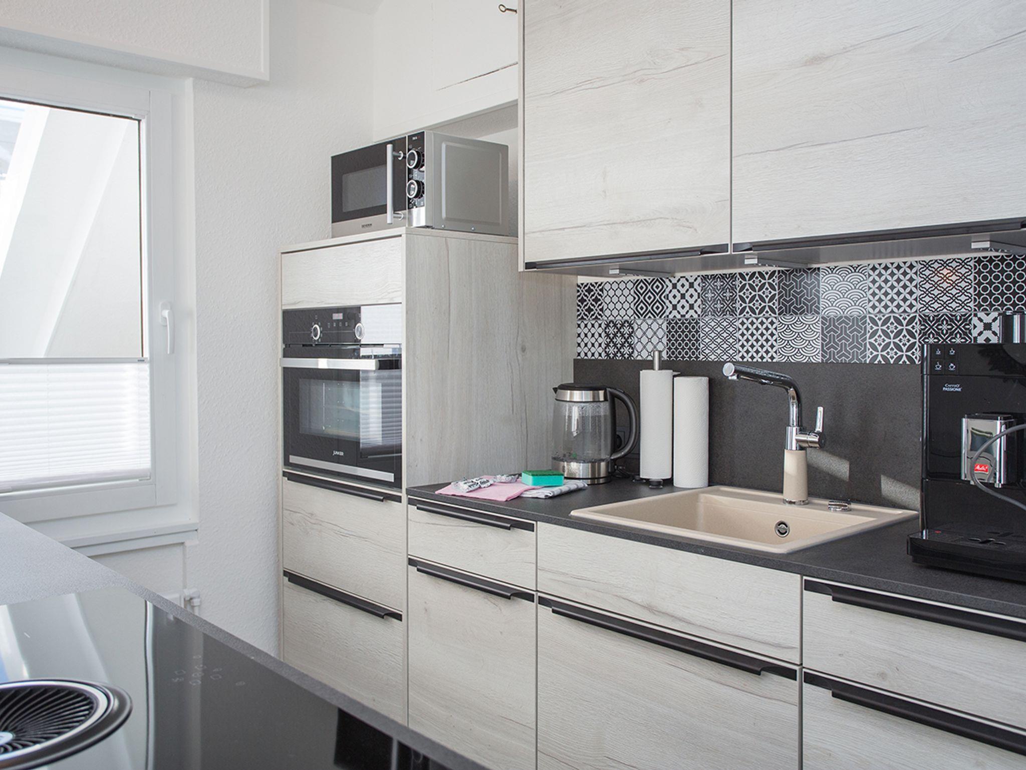 Die Wohn-Küche ist vollausgestattet und verfügt u.a. über einen Geschirrspüler, Backofen, Mikrowelle, Cerankochfelder (Induktion), Gefriertruhe, Kaffeevollautomat, Kaffeemaschine, Toaster, Wasserkocher, Mixer etc.