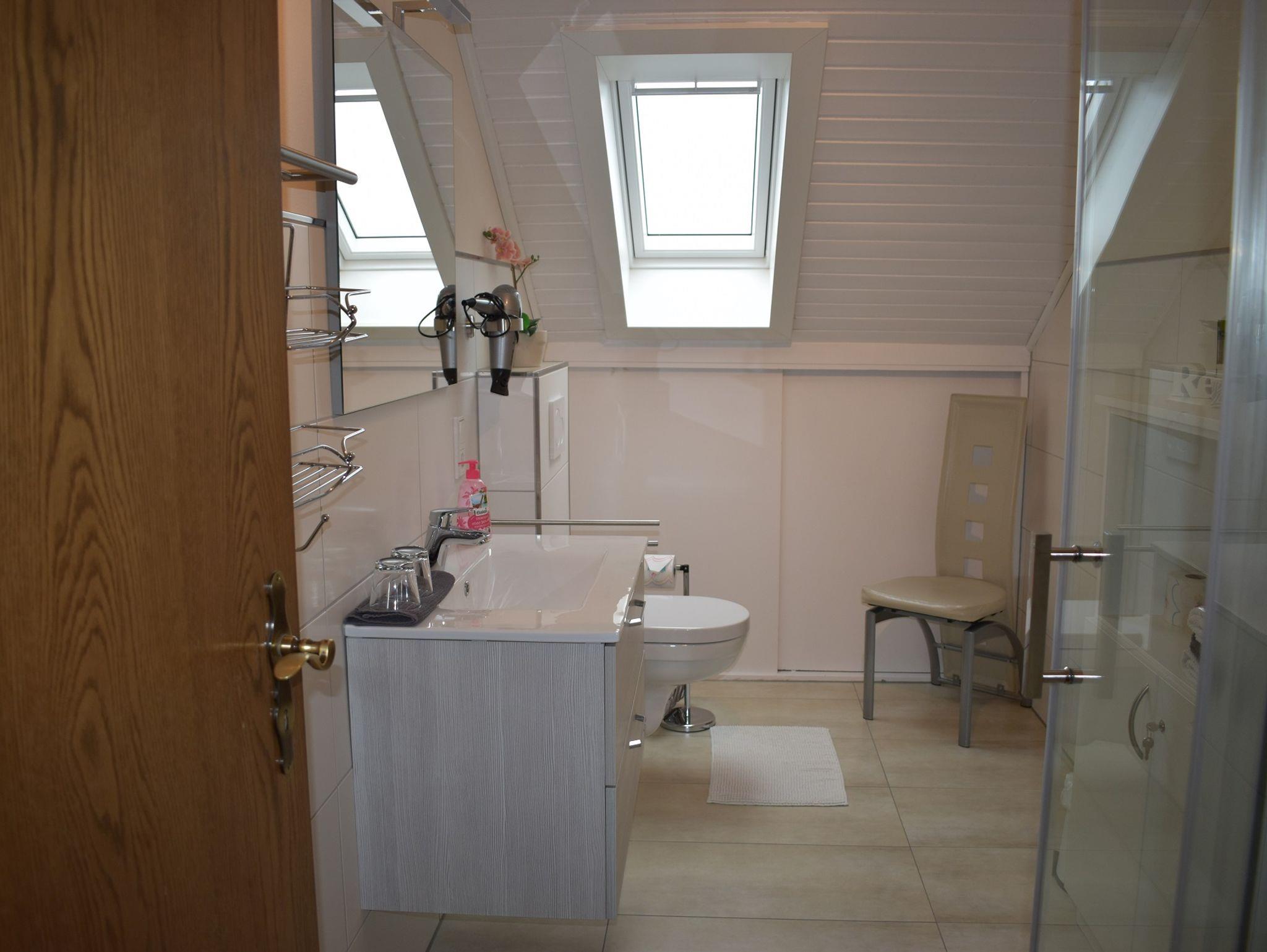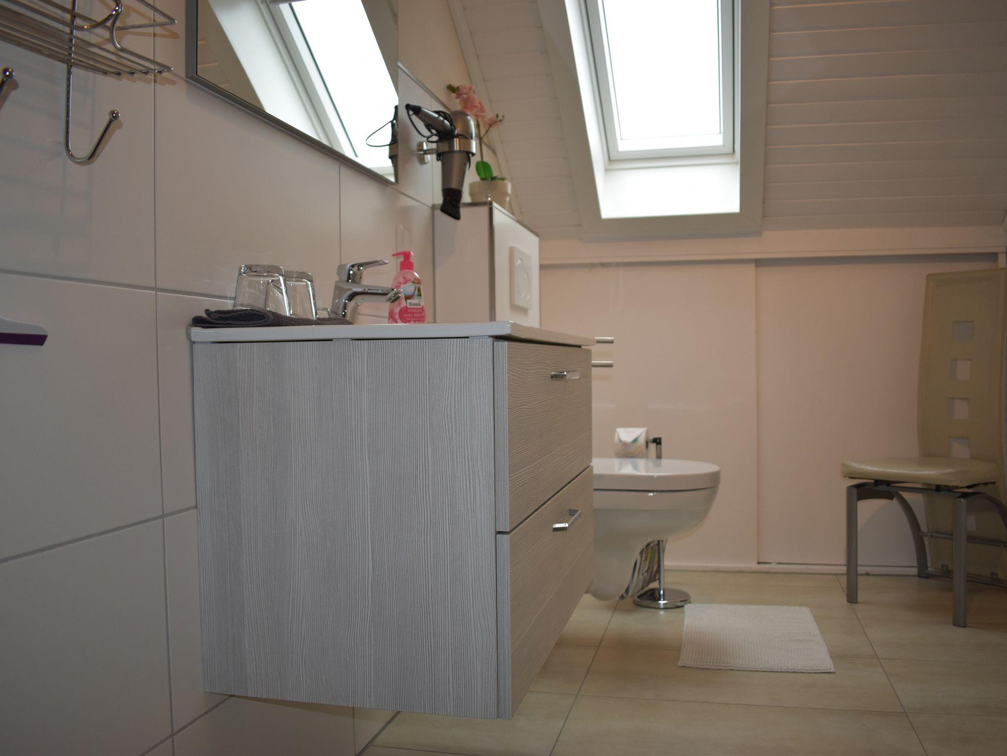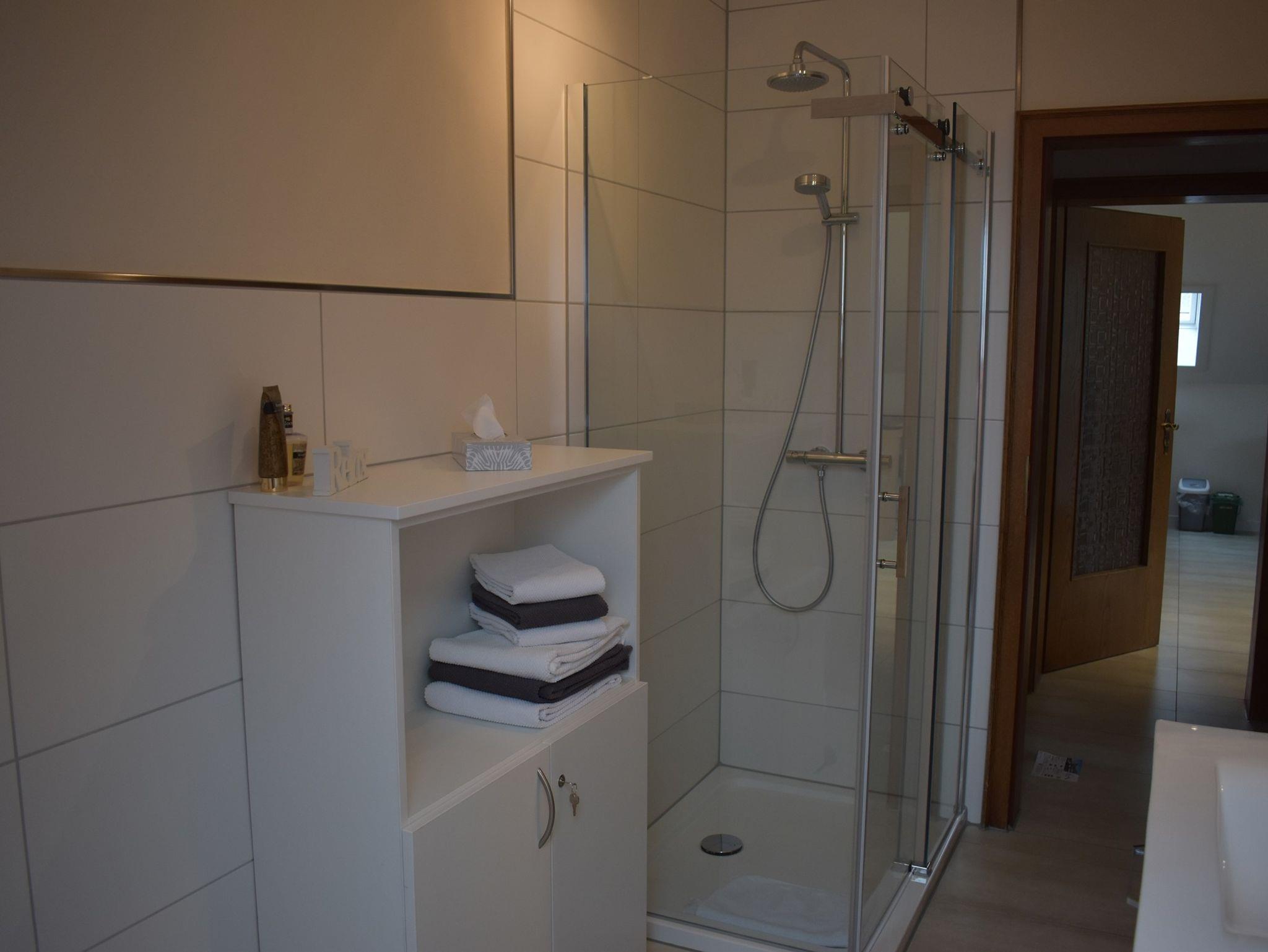 Sie liegt im Obergeschoss und bietet für 2 Personen Platz. Auf Anfrage besteht auch die Möglichkeit je nach Verfügbarkeit ein weiteres Schlafzimmer mit Bad zu buchen.
