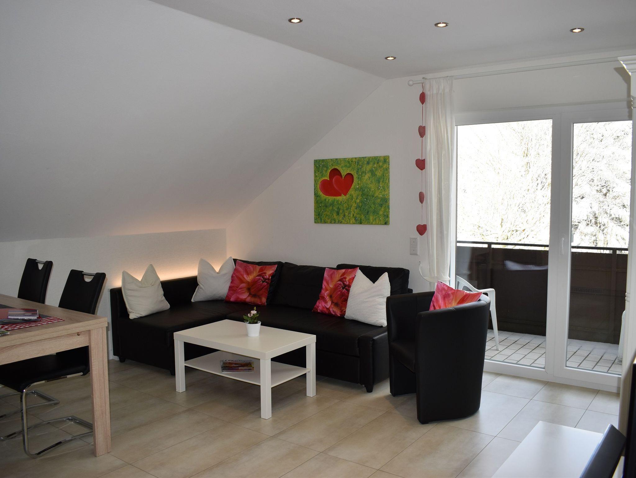 Die komfortable ausgestattete Ferienwohnung (54-85qm) befindet sich direkt am Waldrand mit unverbautem Blick in die waldreiche, frische grüne Natur des Hochsauerlandes.