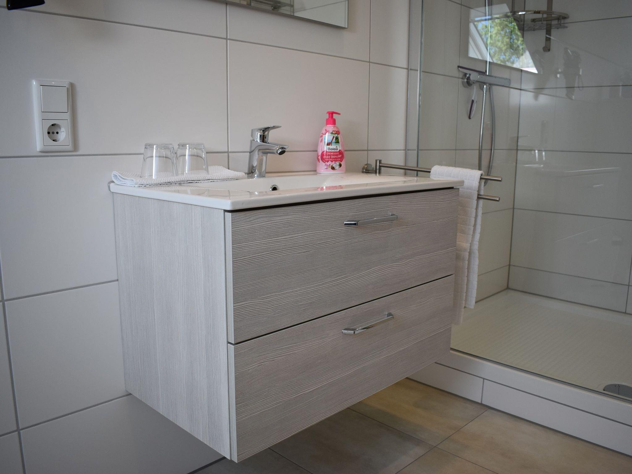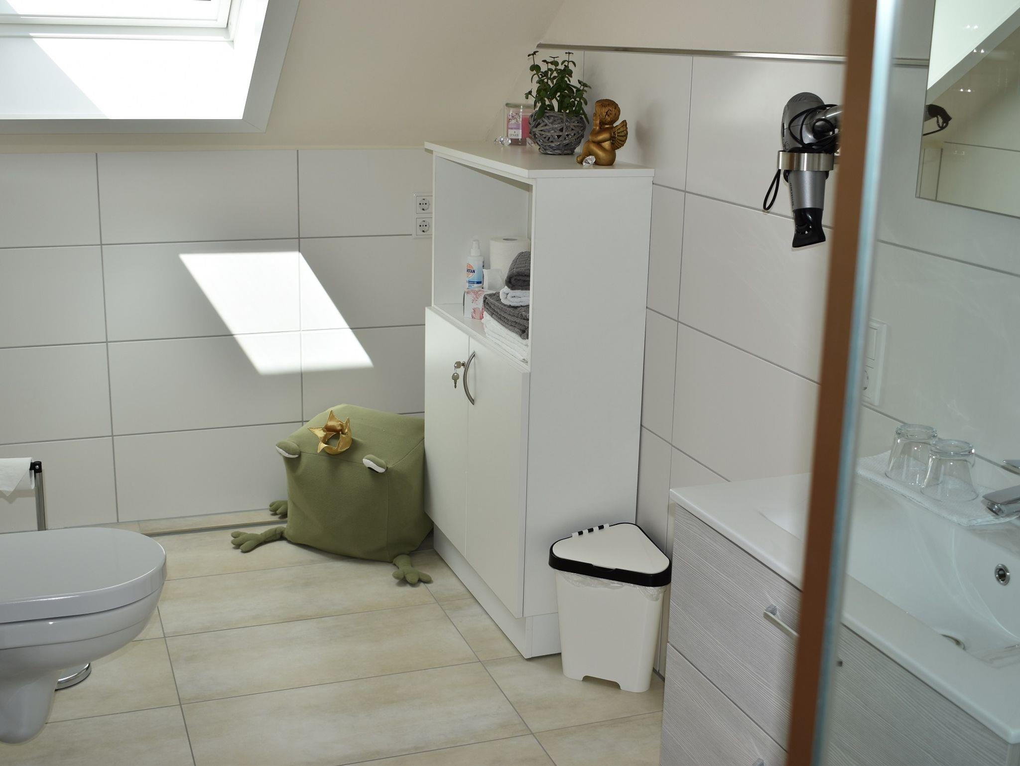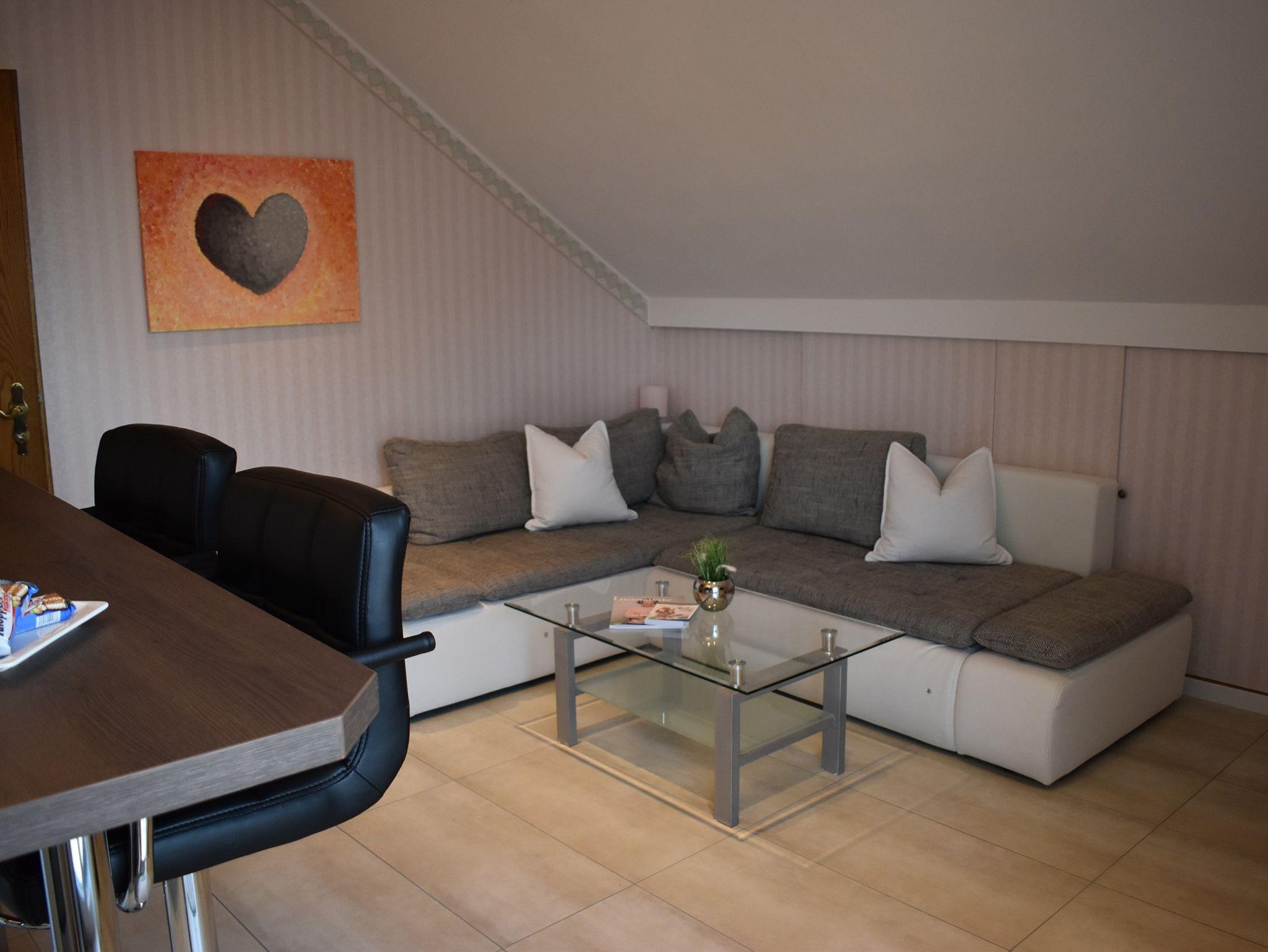 Die ca.50m² Ferienwohnung besteht aus einem Wohnraum mit Schlafsofa 1,20m, Küchenzeile, 1 großes Schlafzimmer mit Doppelbett (2x90cm) + 1 Einzelbett, 1 großes Badezimmer mit Walk In Dusche und WC und 1 großer Balkon zur Verfügung.