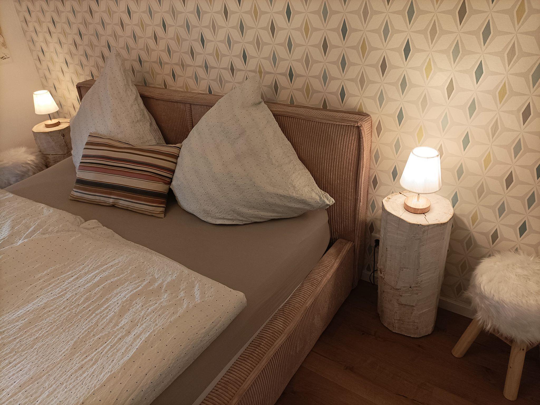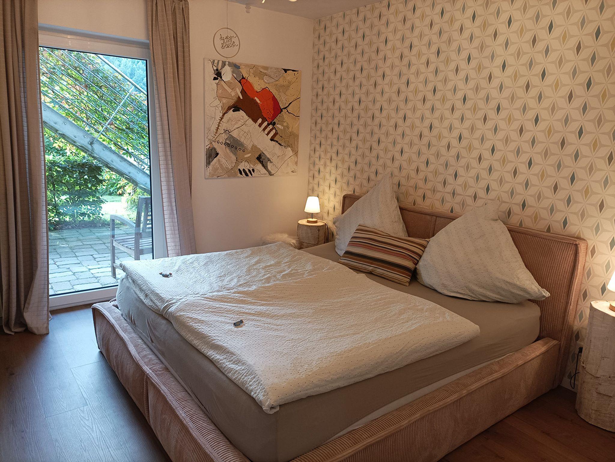 - ein großzügiges Schlafzimmer mit extragroßem Doppelbett,