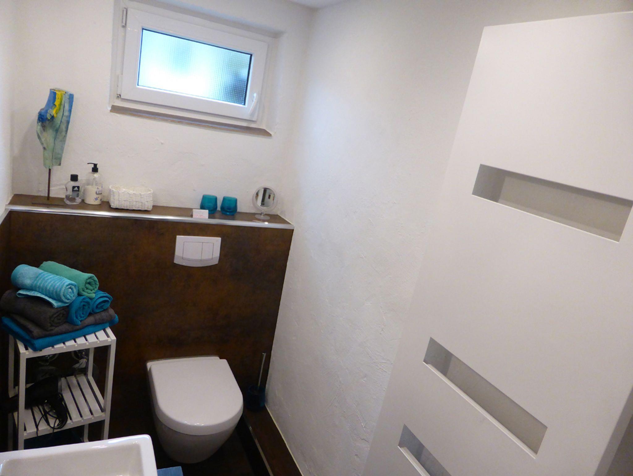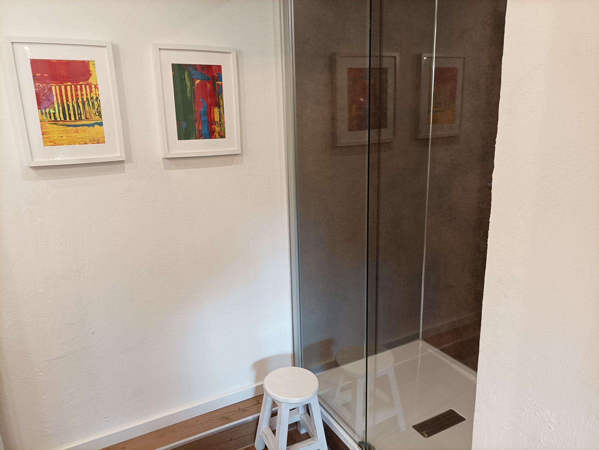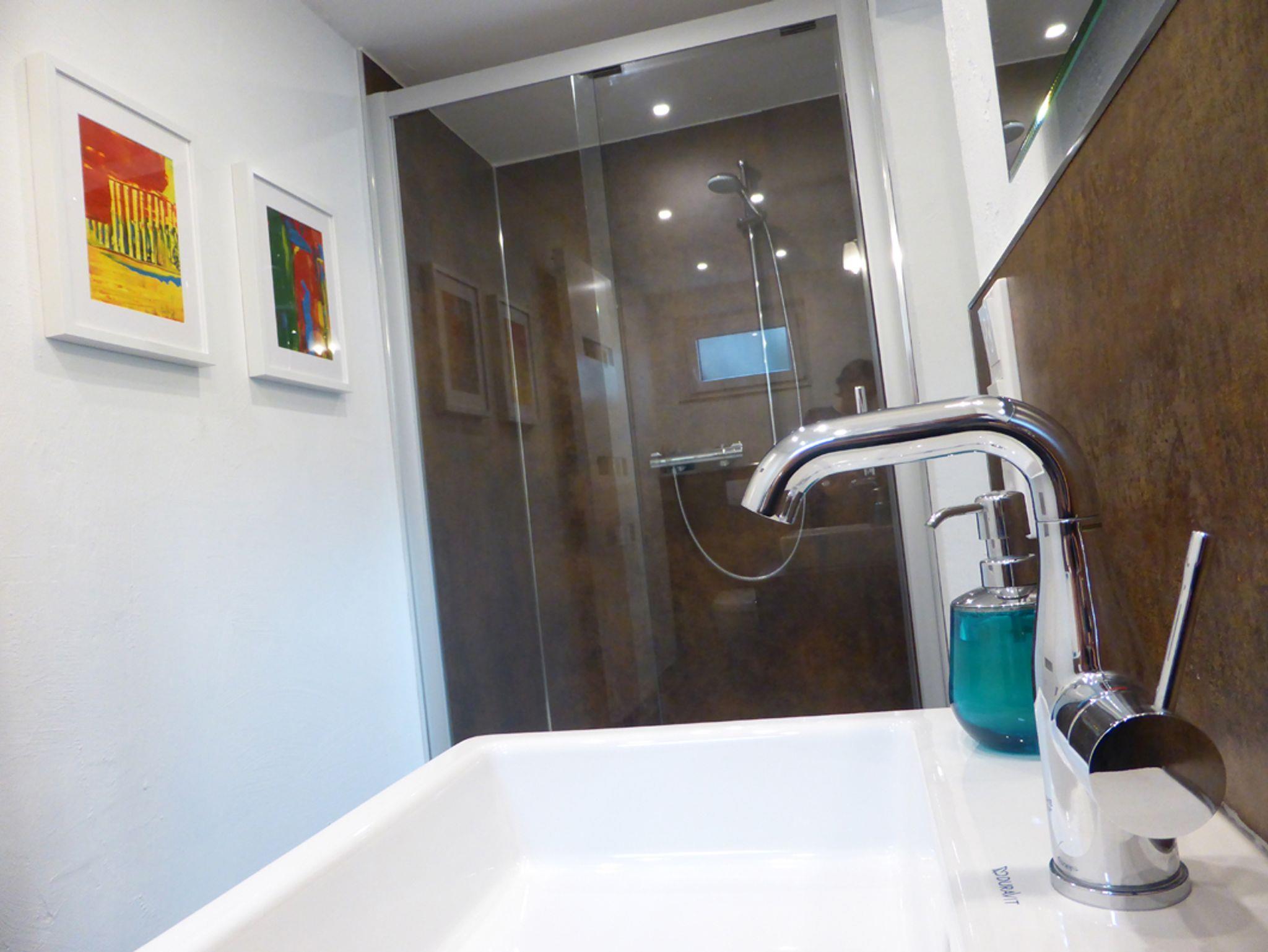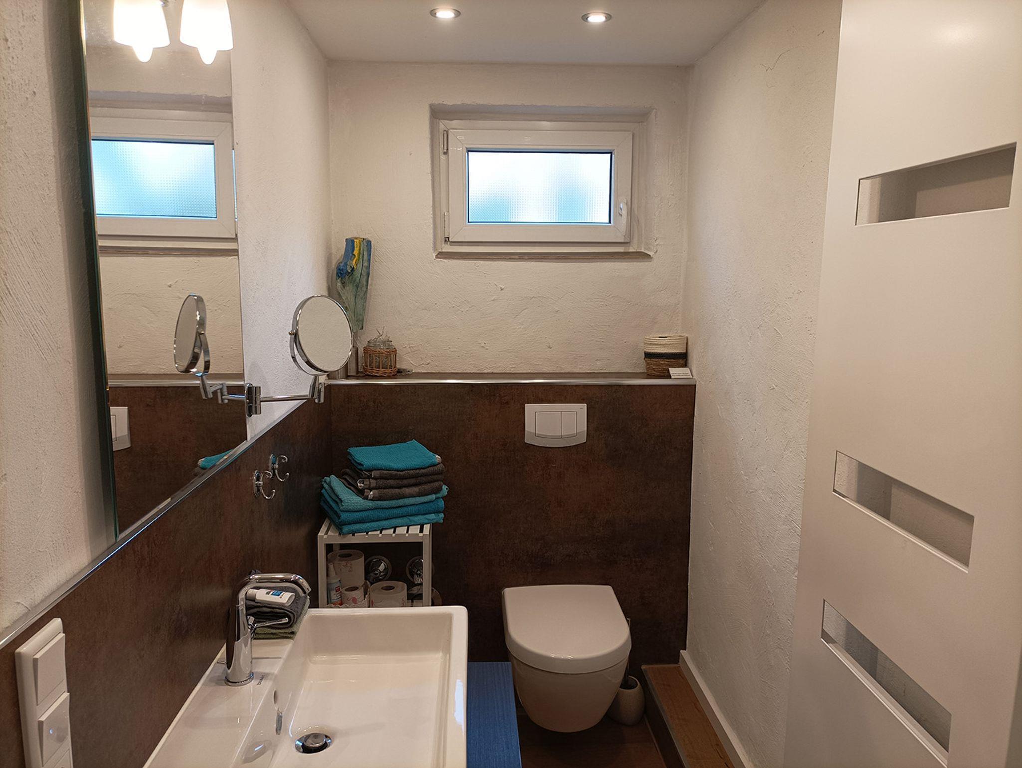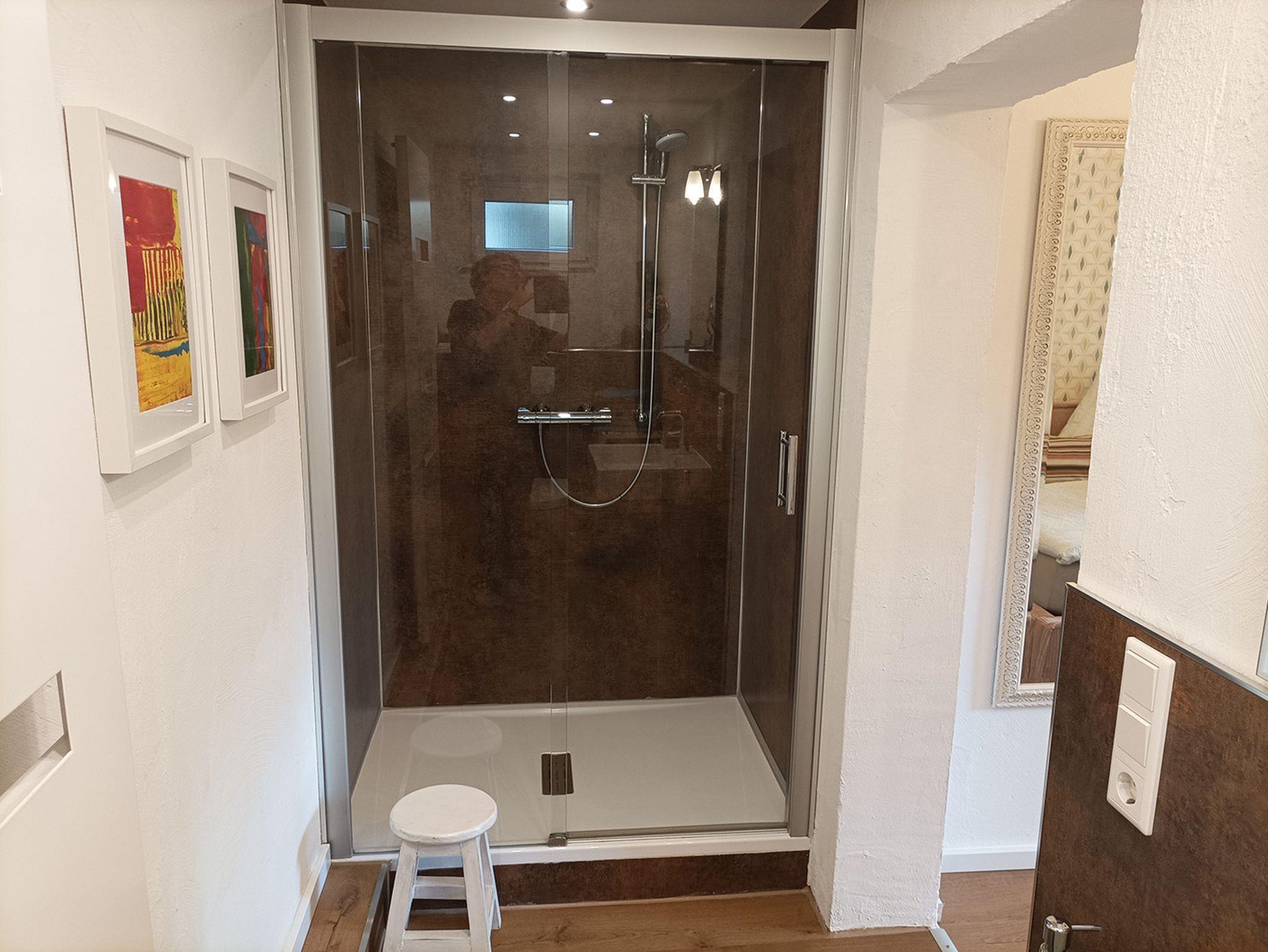 - Das moderne Badezimmer verfügt über eine Dusche, WC sowie frische Badetücher – alles, was Sie für einen angenehmen Aufenthalt benötigen.