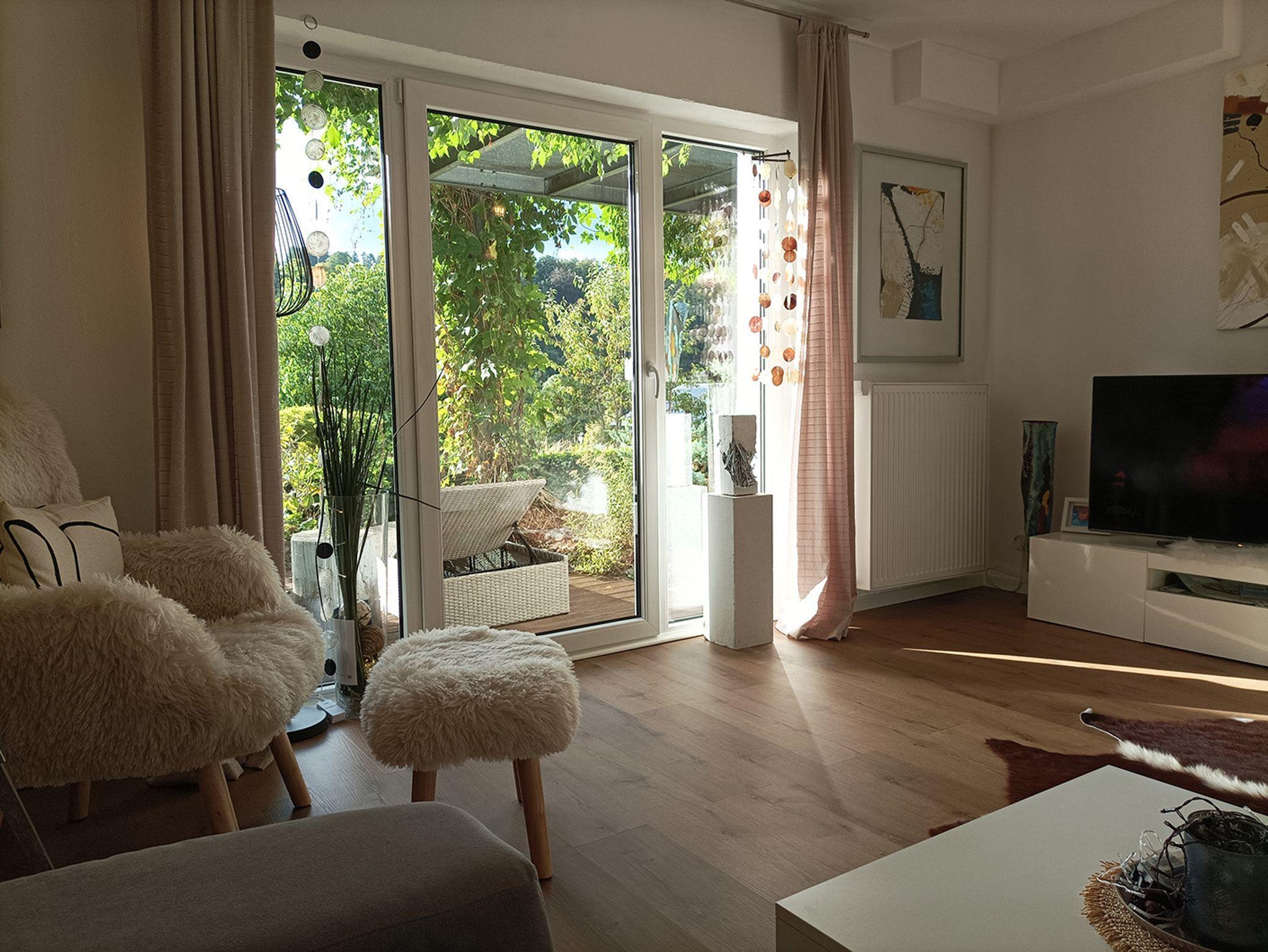 Genießen Sie sonnige Stunden auf der großen Terrasse oder entspannen Sie im gepflegten Garten mit bequemen Liegen. Für zusätzlichen Komfort sorgen: