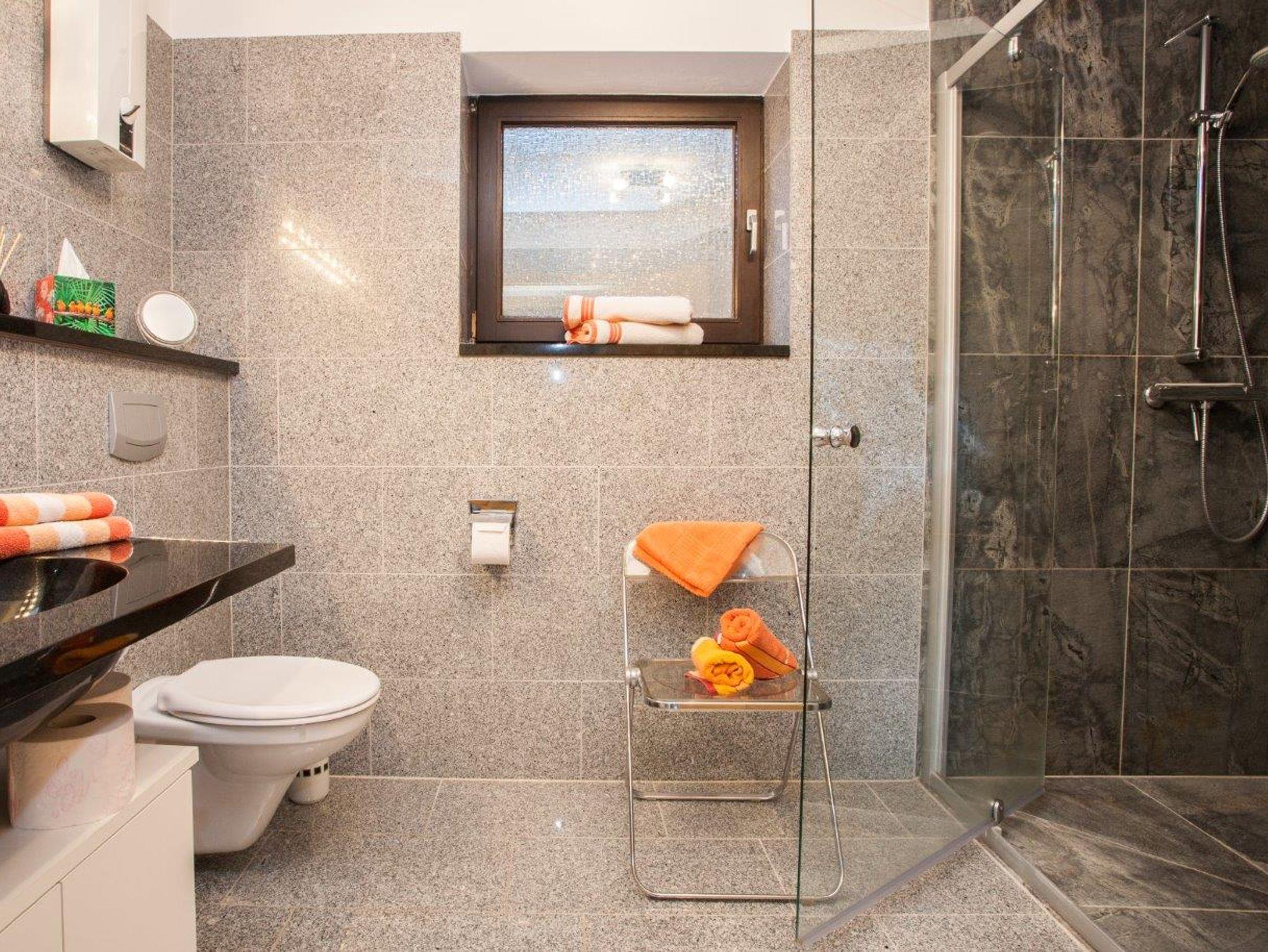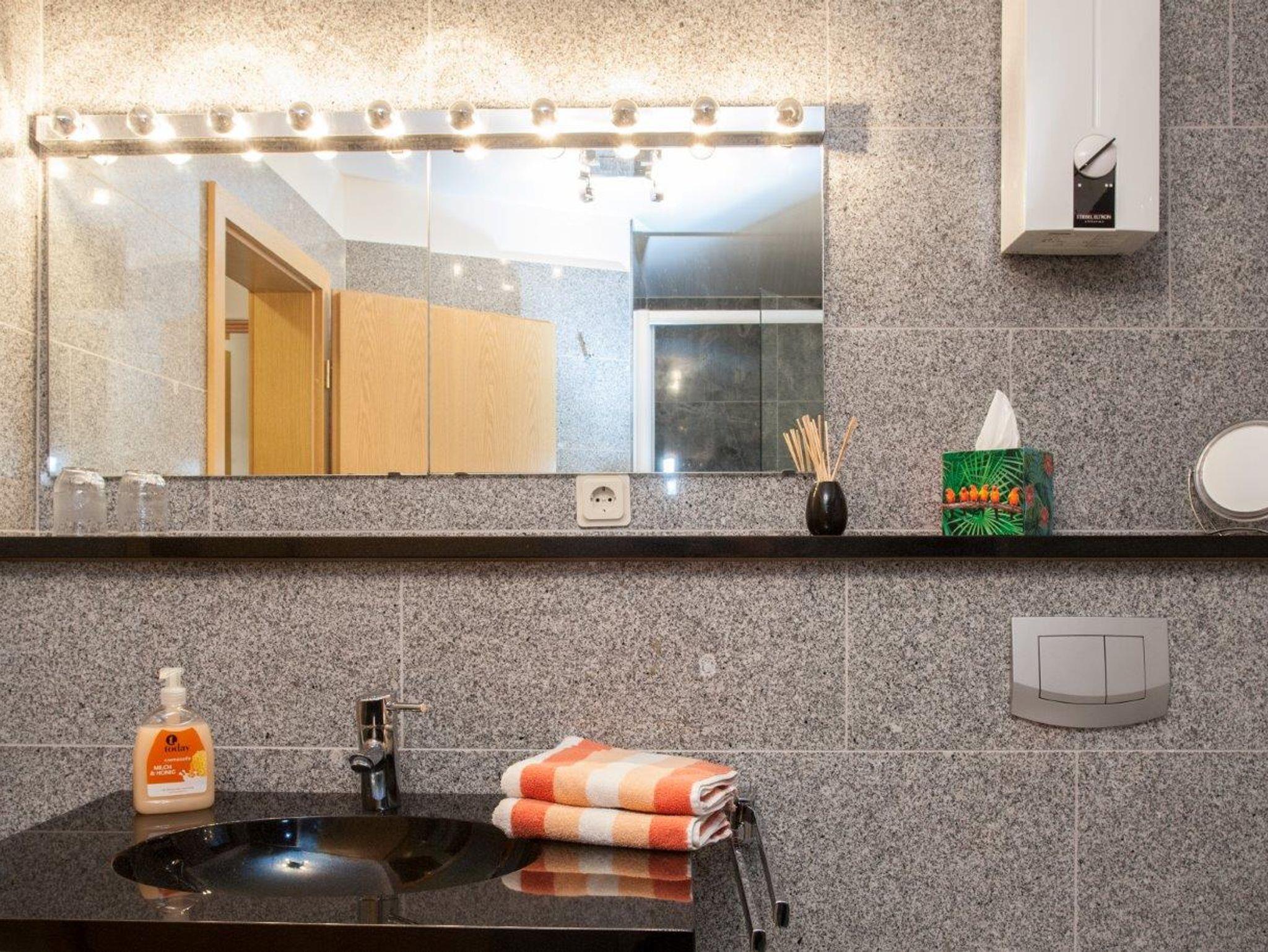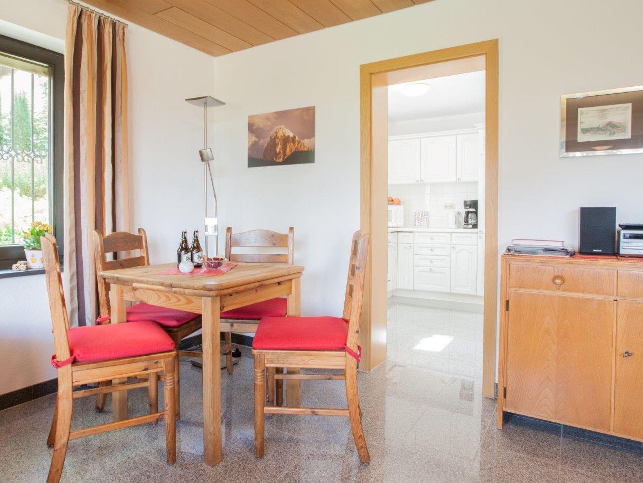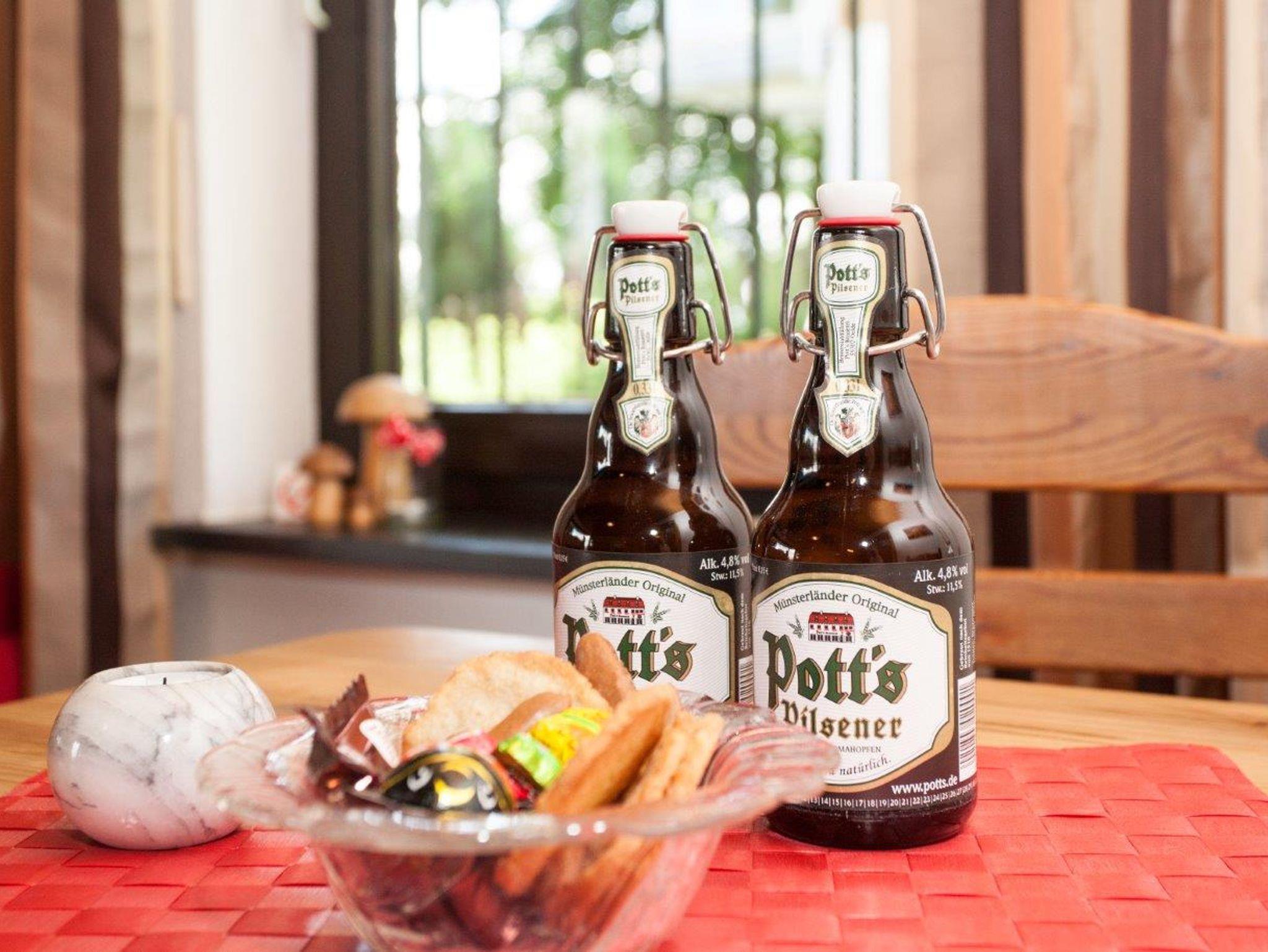 In unserer 68 Quadratmeter großen Ferienwohnung stehen Ihnen alle Annehmlichkeiten zur Verfügung, wie W-Lan, TV, Radio-CD, Spülmaschine, Mikrowelle, Wasserkocher, Eierkocher, Brotmaschine, Mixer sowie ein separater Trockenraum mit Waschmaschine, Trockner und Safe. Auf Anfrage können Sie auch gern Ihr Haustier mitbringen. In wenigen Minuten sind Sie beim Bäcker und in der als „Schinken-Alm“ weithin bekannten Metzgerei Leber. Dort finden Sie auch einen preiswerten, hervorragenden Mittagstisch.