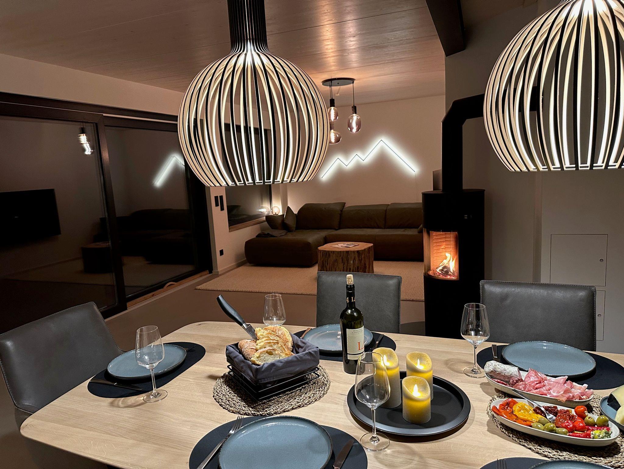 Ob beim gemeinsamen Kochen, Relaxen auf dem Loungesofa am Kamin oder einem lustigen Spieleabend bei einem Glas Wein am großzügigen Esstisch.