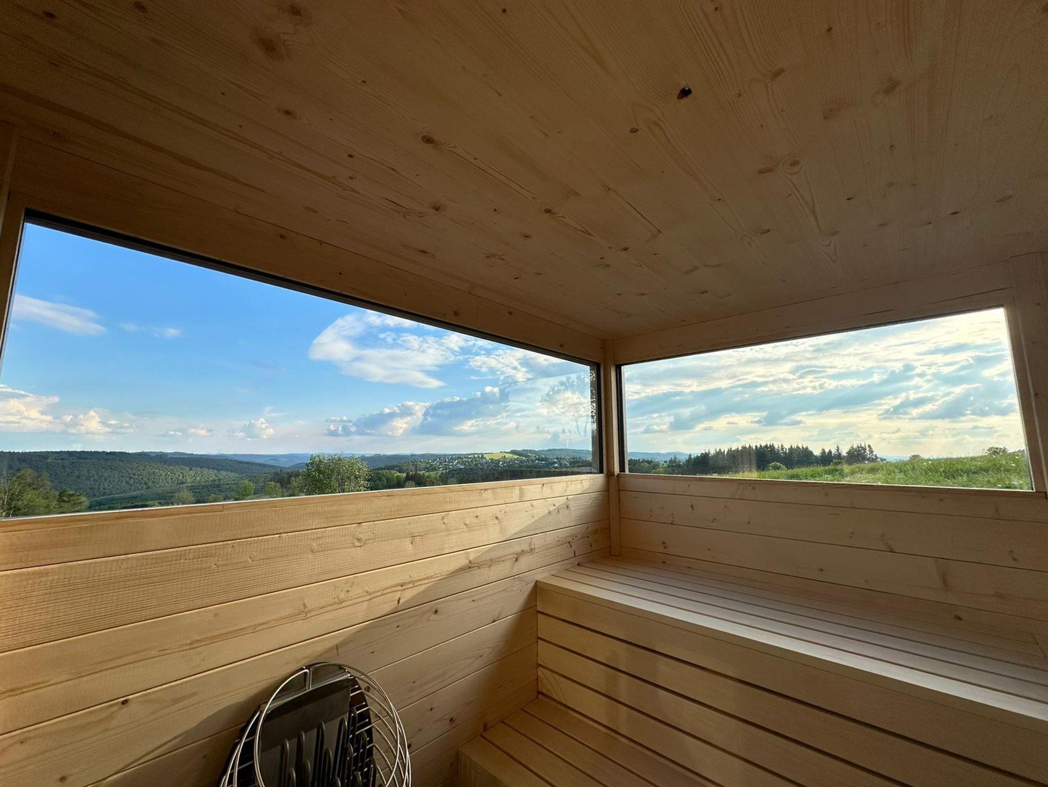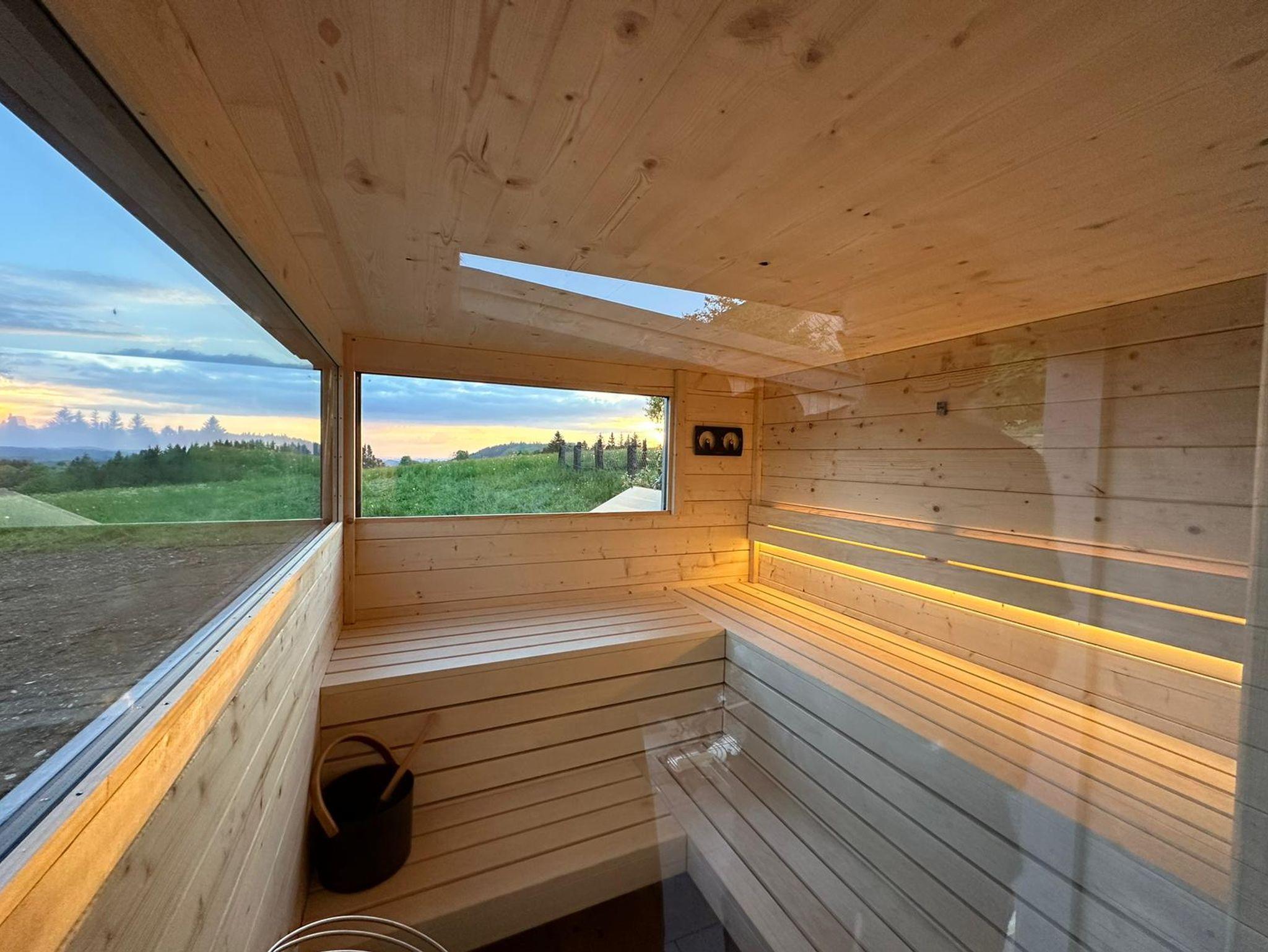 Lassen sie den Abend in der gemütlichen Panoramasauna ausklingen, der spektakuläre Sonnenuntergang über den Wäldern ist ihnen dabei sicher.