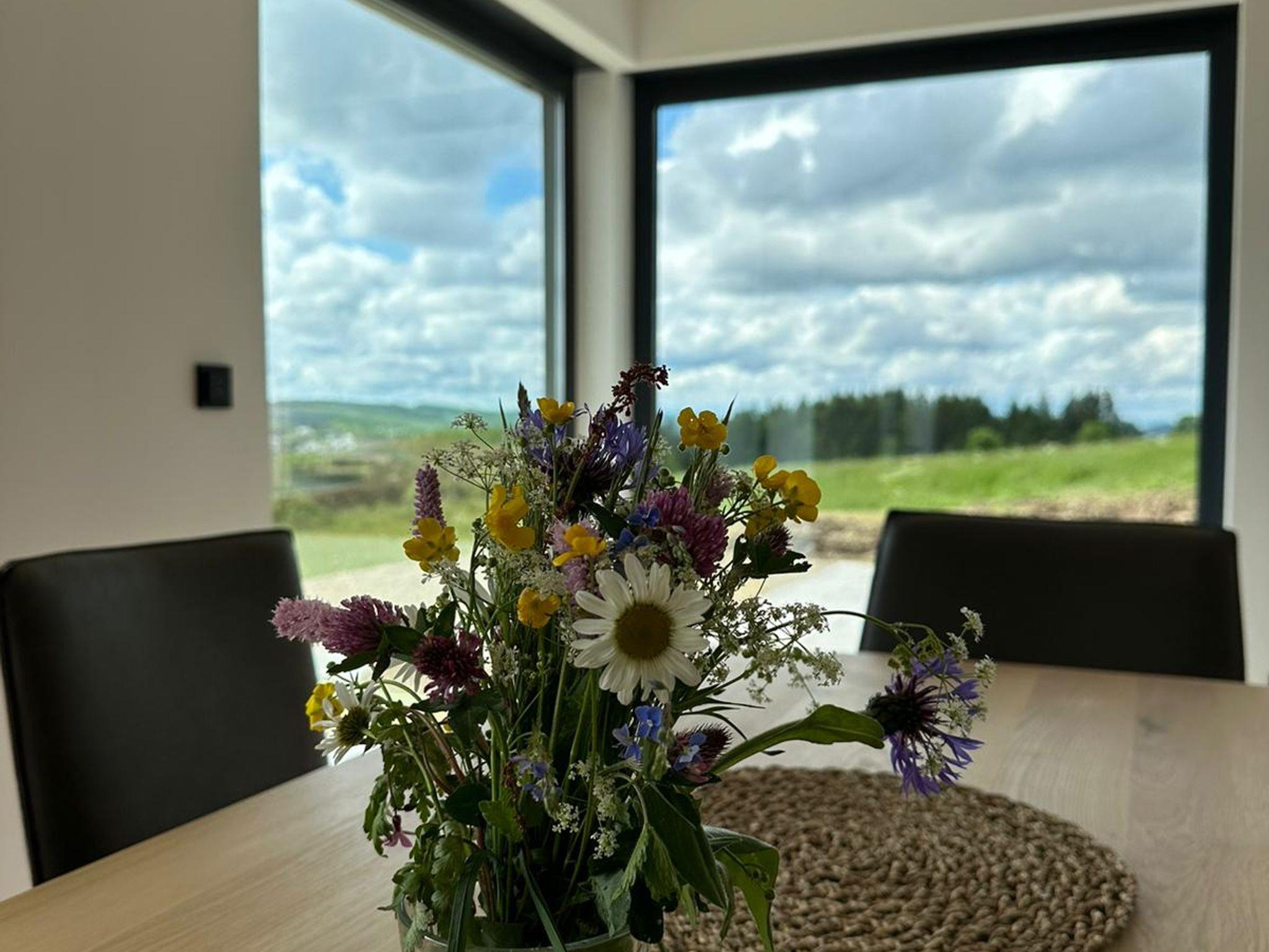 Im großzügigen, offenen Wohnbereich genießen sie von Sonnenauf- bis Sonnenuntergang ein traumhaftes Panorama in die Natur des Sauerlandes.