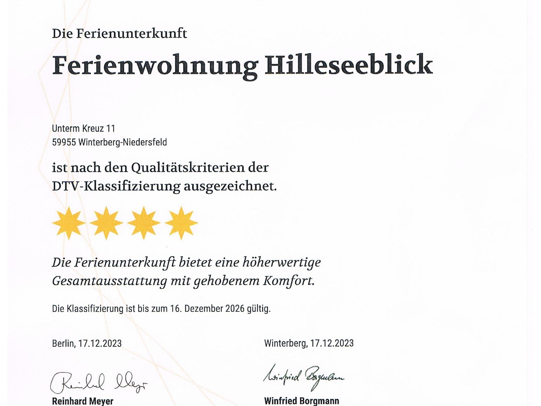 Fühlen Sie sich wohl in unserer modernen, frisch renovierten 78 Quadratmeter großen Maisonette-Wohnung! Das idyllische Panorama genießen Sie in unserer vom DTV zertifizierten ****Ferienwohnung Hilleseeblick im Luftkurort Niedersfeld von der Sonnenloggia sowie den Wohn- und Schlafzimmerfenstern aus. Herz der geschmackvoll möblierten Wohnung ist der große Wohn-Ess-Bereich mit offener, komfortabel ausgestatteter Küche. In den beiden Schlafzimmern (Ein Doppelbett 1.80x2.00m ein Boxspringbett 1.80x2.00m mit getrennten Matratzen), verbringen Sie erholsame Nächte.Unser Duschbad wurde gerade vollkommen erneuert. Bei uns fehlt es Ihnen an nichts: Von zwei TV-Geräten und HiFi über W-LAN, DVD-Player samt DVDs, Abstell- und Kellerraum bis zur Pkw-Parkmöglichkeit ist alles vorhanden. Für gesellige Abende stehen CDs, Bücher und Spiele bereit. In Niedersfeld decken gut sortierte Geschäfte den täglichen Bedarf ab.