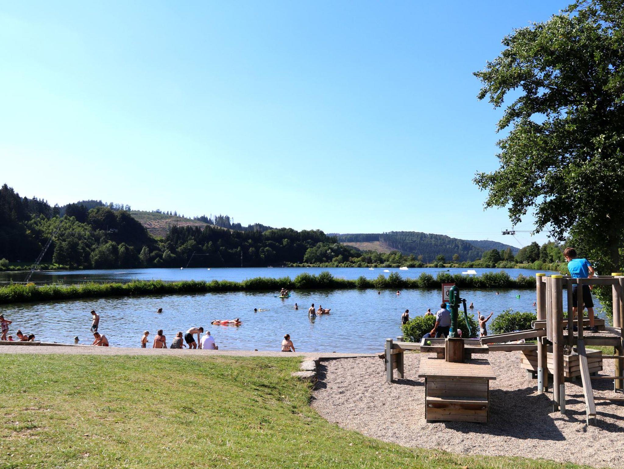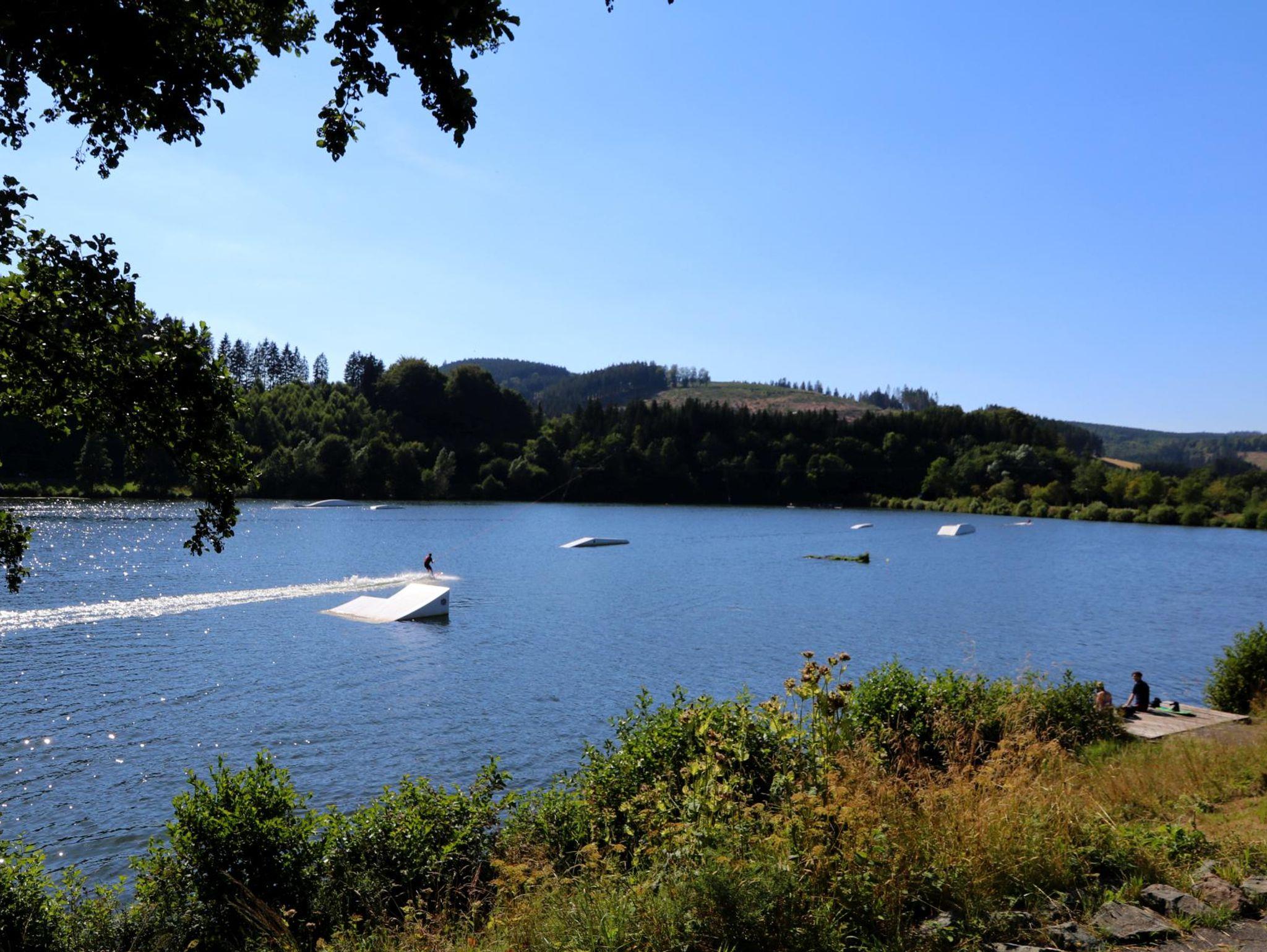 Genießen Sie die herrliche Aussicht auf den Hillebachsee und die umliegende Berglandschaft. Idyllisch gelegen bietet der Hillebachsee ein umfangreiches Angebot mit Badebucht, Wasserski und Spielanlagen für Jung und Alt.