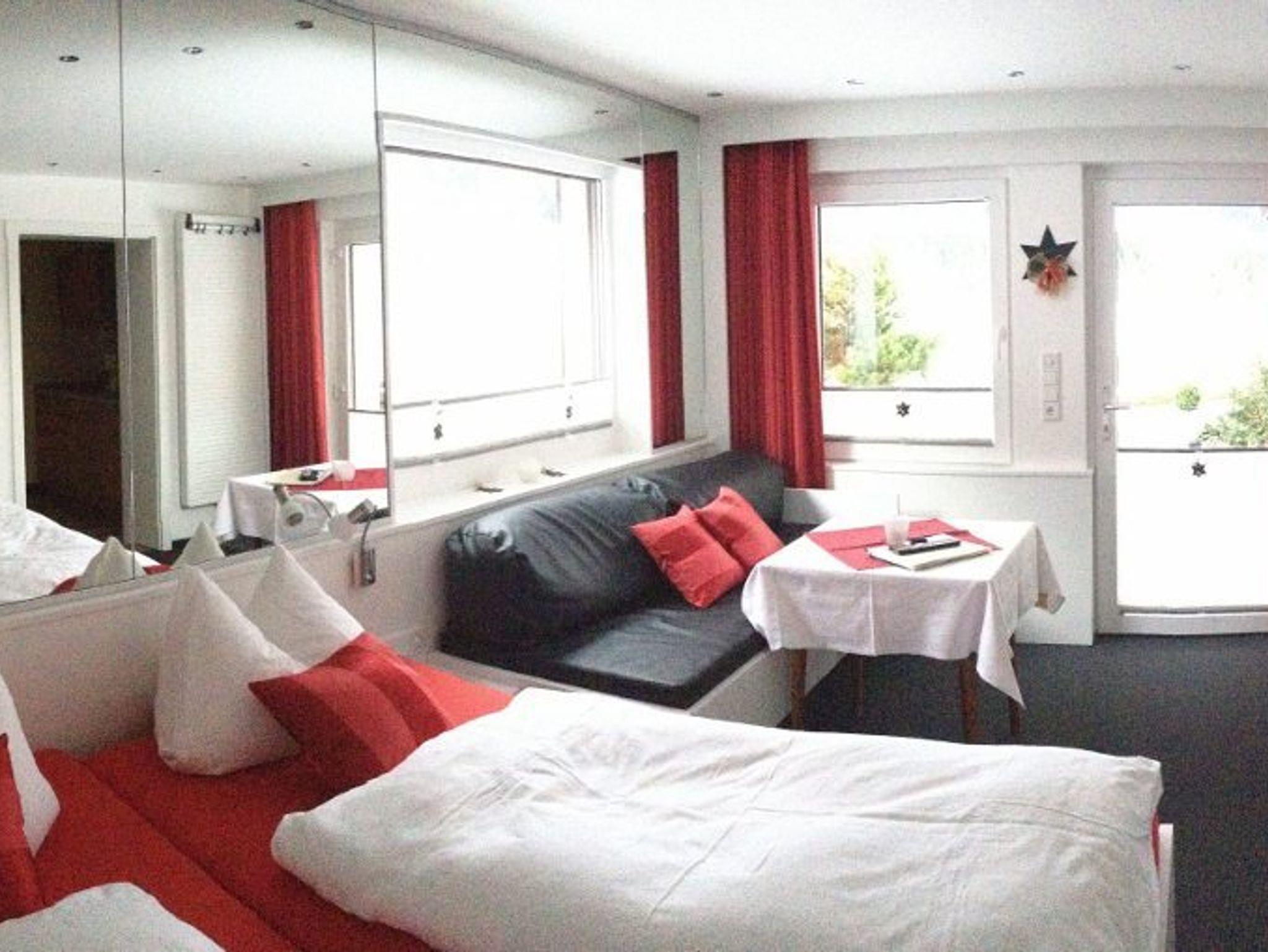 Das 2. Zimmer umfasst ein Doppelbett und eine gemütliche Sitzecke, möblierte Sonnenterrasse, einen Flachbild-TV und ein Radio. Das 2. Bad verfügt über ebenerdige Dusche und WC.