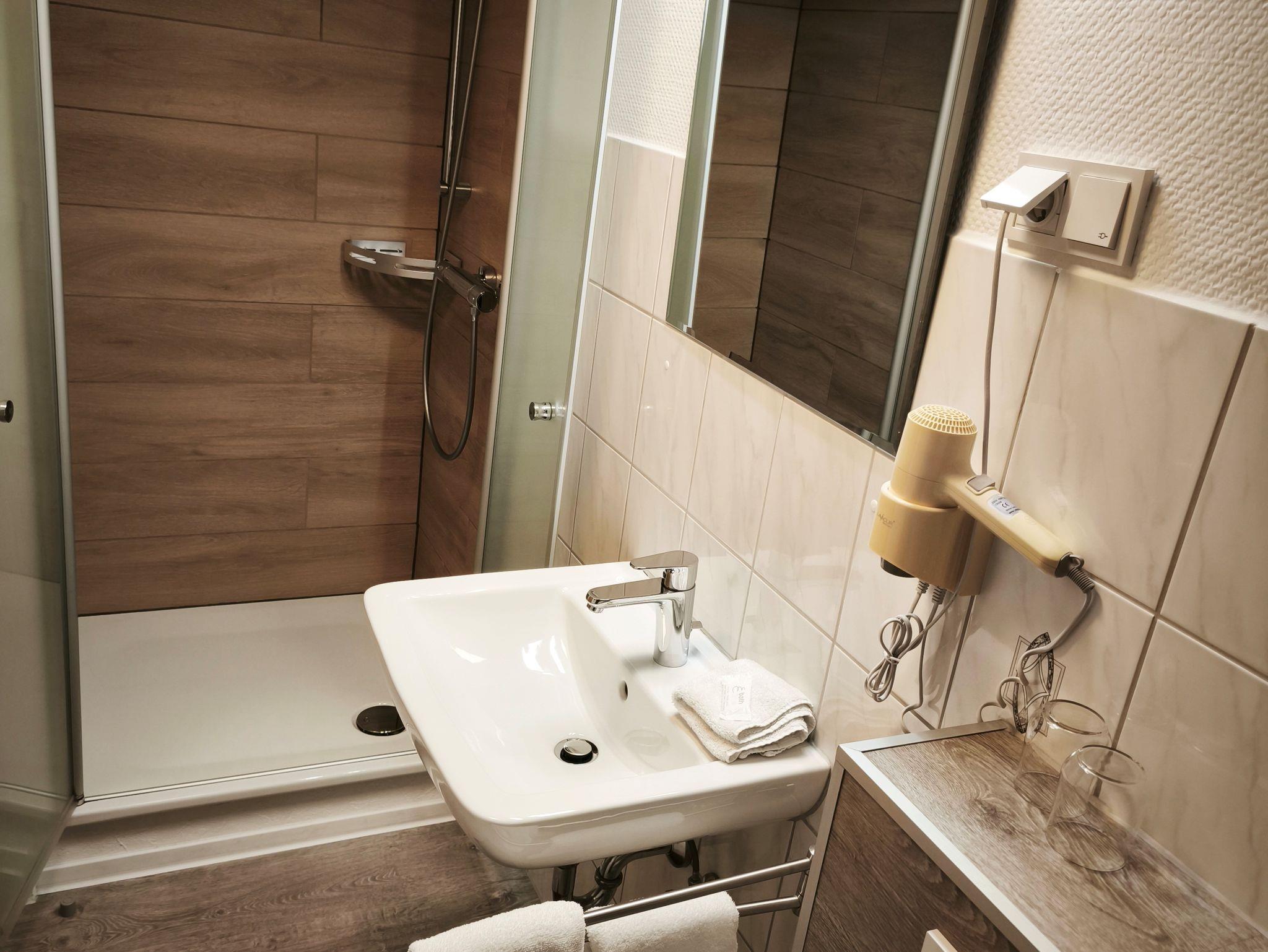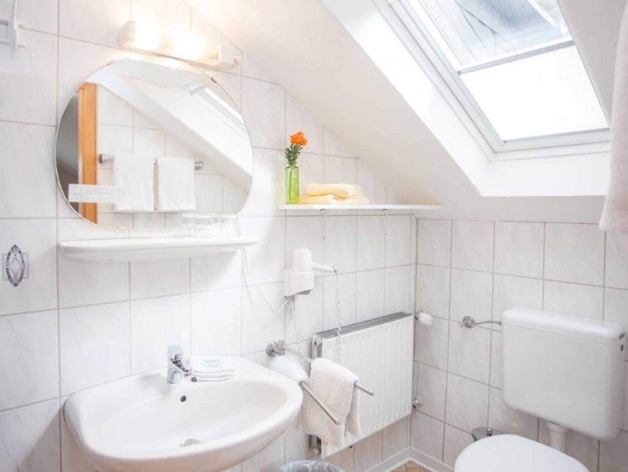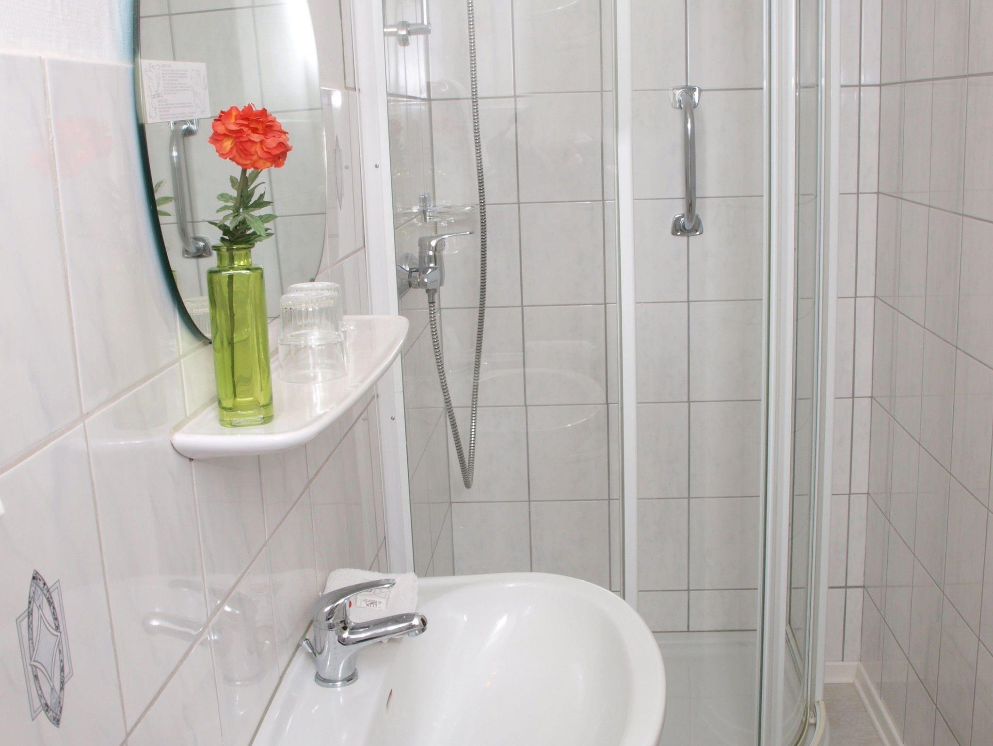 Pension Dorfkrug, Doppelzimmer mit Doppelbett und Dusche / WC