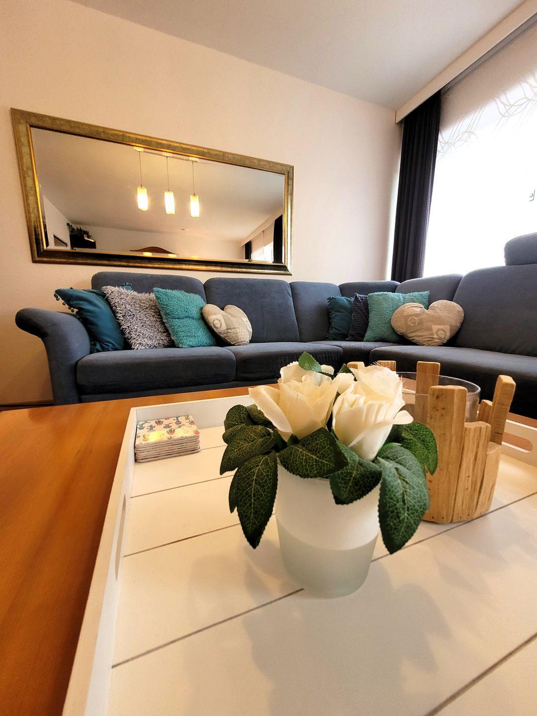 Mehr als 60 m² Wohnfläche verteilen sich auf einen großen Wohn-Essraum, eine modern eingerichtete Küche, Diele, Bad mit Dusche/WC und Waschtisch, zwei Doppelschlafzimmer. Das Appartement verfügt über schnelles Internet/W-LAN. Sehr geeignet für Streaming und Gaming.