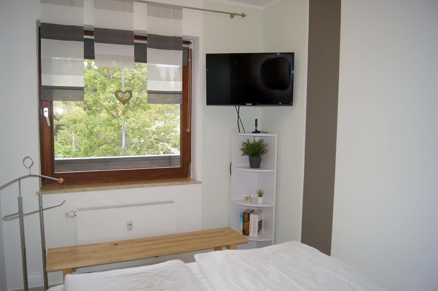 Ca. 50 m² Wohnfläche verteilen sich auf eine Diele, einen großen Wohn-Essraum (ausklappbare Schlafcouch für die 3. und 4. Person) mit moderner Küchenzeile, ein Schlafzimmer mit Doppelbett und einem zusätzlichen Fernseher sowie ein hell gefliestes Bad mit Dusche/WC/Waschtisch.