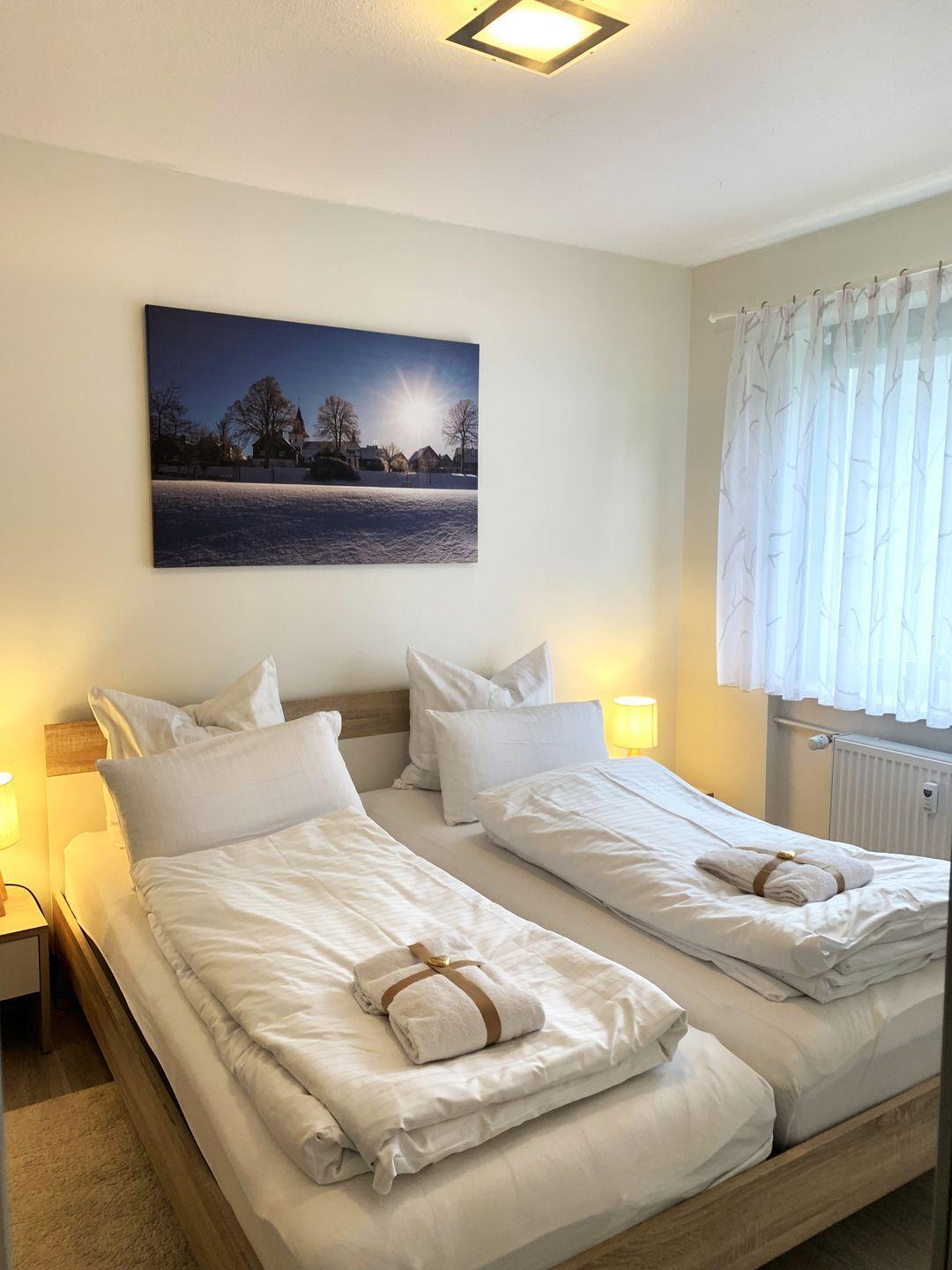Insgesamt 52 m² Wohnfläche verteilen sich auf eine Eingangsdiele, einen großzügigen Wohn- Essraum (mit einer ausklappbaren Couch als Schlafmöglichkeit für die 3. und 4. Person), eine moderne Küche und ein Schlafzimmer mit Doppelbett. Die moderne Küche mit zusätzlicher Dolce Gusto Kaffeemaschine, sowie das Bad mit Regendusche wurden 2021 aufwändig renoviert. Der Wohn-Essraum ist meuen Möbel und Geräten (43" Smart-TV und Internetradio) ausgestattet.