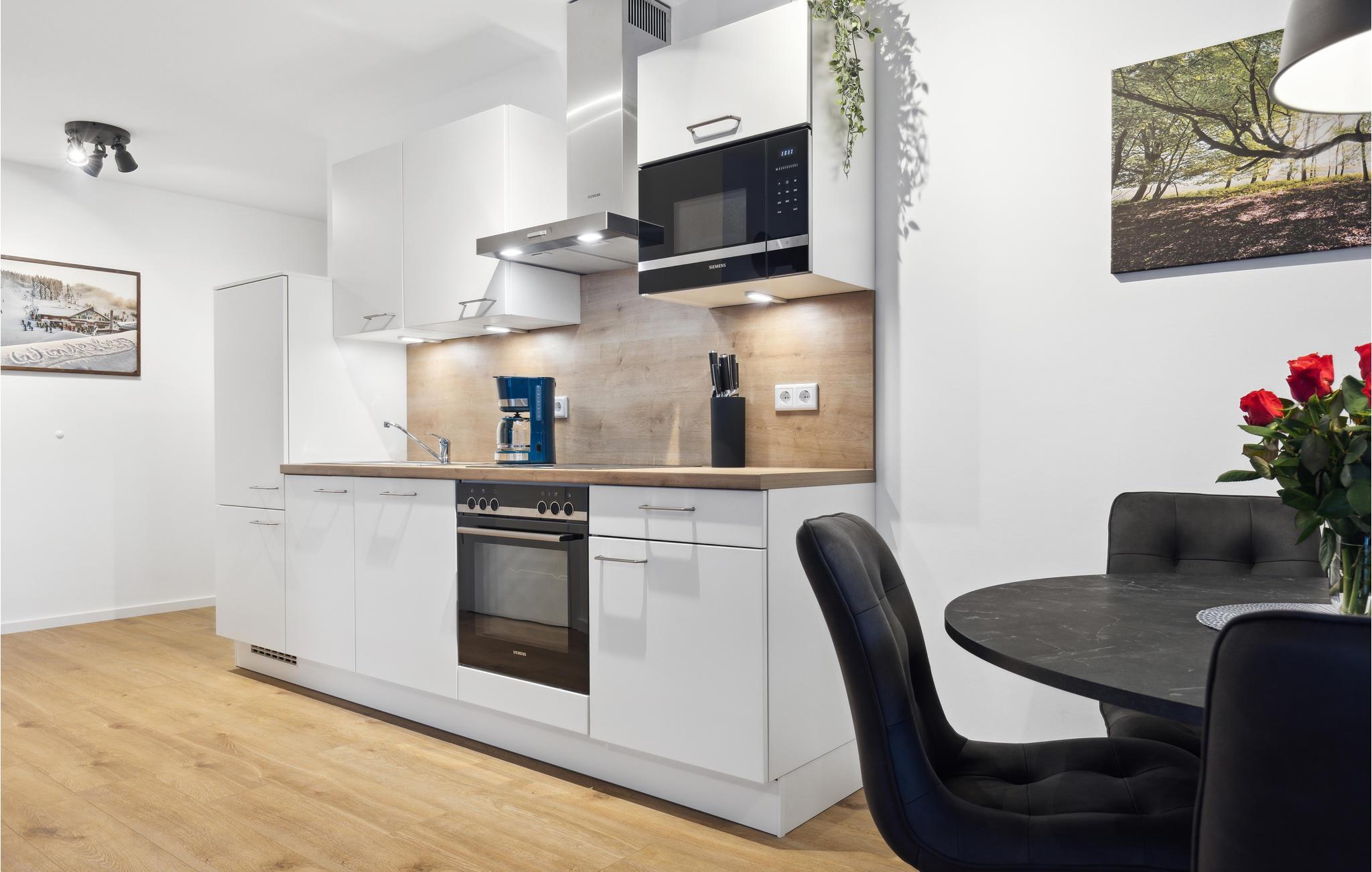 Glæd jer til en afslappende og varieret ferie i denne ferielejlighed i Winterberg, tæt på smuk natur. Lejlighedernes eksklusive møbler omfatter et fuldt udstyret køkken med højkvalitets hvidevarer. Lejligheden har to soveværelser og en meget lys og rummelig stue. Ferielejligheden byder på masser af plads til aktiviteter sammen, uanset om I laver mad sammen, holder spilleaften eller hygger jer i sofaerne. Pejsens stille knitren skaber en særlig hyggelig atmosfære. Den smagfulde indretning giver optimale betingelser for at tilbringe en god tid sammen i en stilfuld atmosfære.