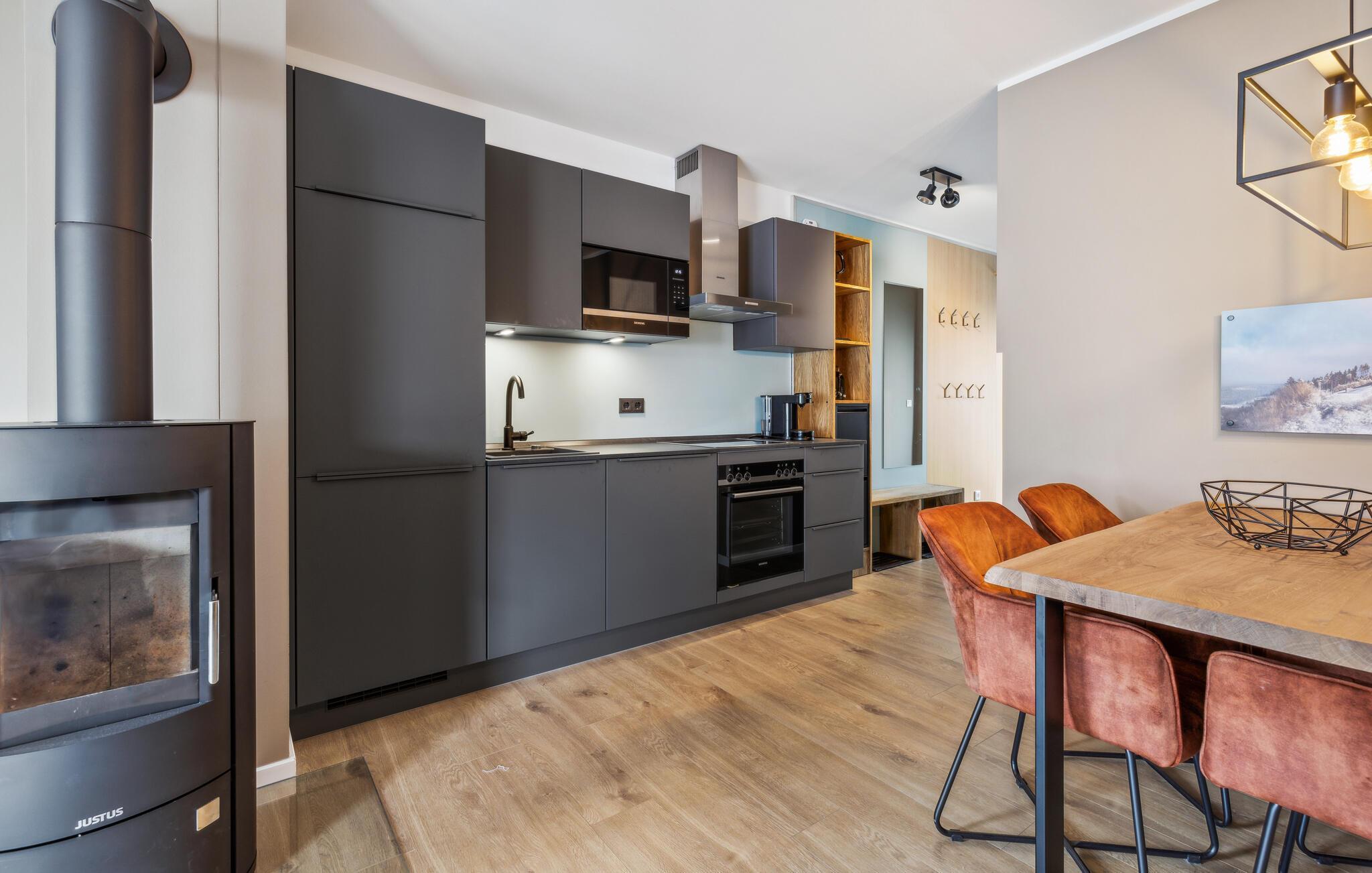 Glæd jer til en afslappende og varieret ferie i denne ferielejlighed i Winterberg, tæt på smuk natur. Lejlighedernes eksklusive møbler omfatter et fuldt udstyret køkken med højkvalitets hvidevarer. Lejligheden har to soveværelser og en meget lys og rummelig stue. Ferielejligheden byder på masser af plads til aktiviteter sammen, uanset om I laver mad sammen, holder spilleaften eller hygger jer i sofaerne. Pejsens stille knitren skaber en særlig hyggelig atmosfære. Den smagfulde indretning giver optimale betingelser for at tilbringe en god tid sammen i en stilfuld atmosfære.