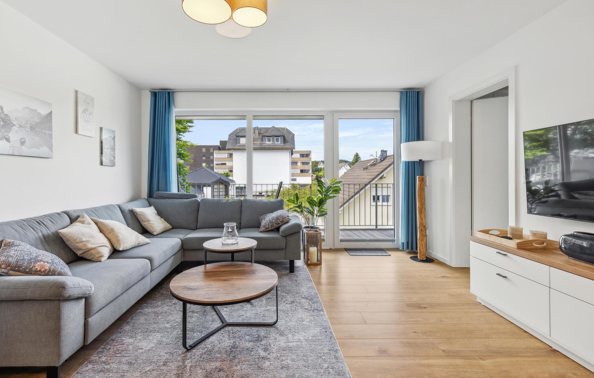 Glæd jer til en afslappende og varieret ferie i denne ferielejlighed i Winterberg, tæt på smuk natur. Lejlighedernes eksklusive møbler omfatter et fuldt udstyret køkken med højkvalitets hvidevarer. Lejligheden har to soveværelser og en meget lys og rummelig stue. Ferielejligheden byder på masser af plads til aktiviteter sammen, uanset om I laver mad sammen, holder spilleaften eller hygger jer i sofaerne. Pejsens stille knitren skaber en særlig hyggelig atmosfære. Den smagfulde indretning giver optimale betingelser for at tilbringe en god tid sammen i en stilfuld atmosfære.