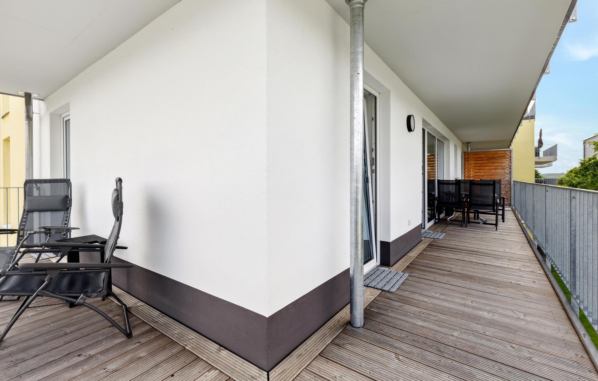 Men man kan ikke bare tilbringe skønne timer i ferielejligheden. På varme sommerdage tilbyder altanen med havemøbler et vidunderligt sted at slappe af. Her kan I få en afslappet morgenmad og tilberede lækre måltider på grillen. Et højdepunkt ved ferielejligheden er saunaen af ??høj kvalitet, hvor I kan slappe af selv på frostklare vinterdage. Kælderrummet kan bruges som opbevaring af både ski og cykler. Her finder I også lademuligheder til el-cykler.