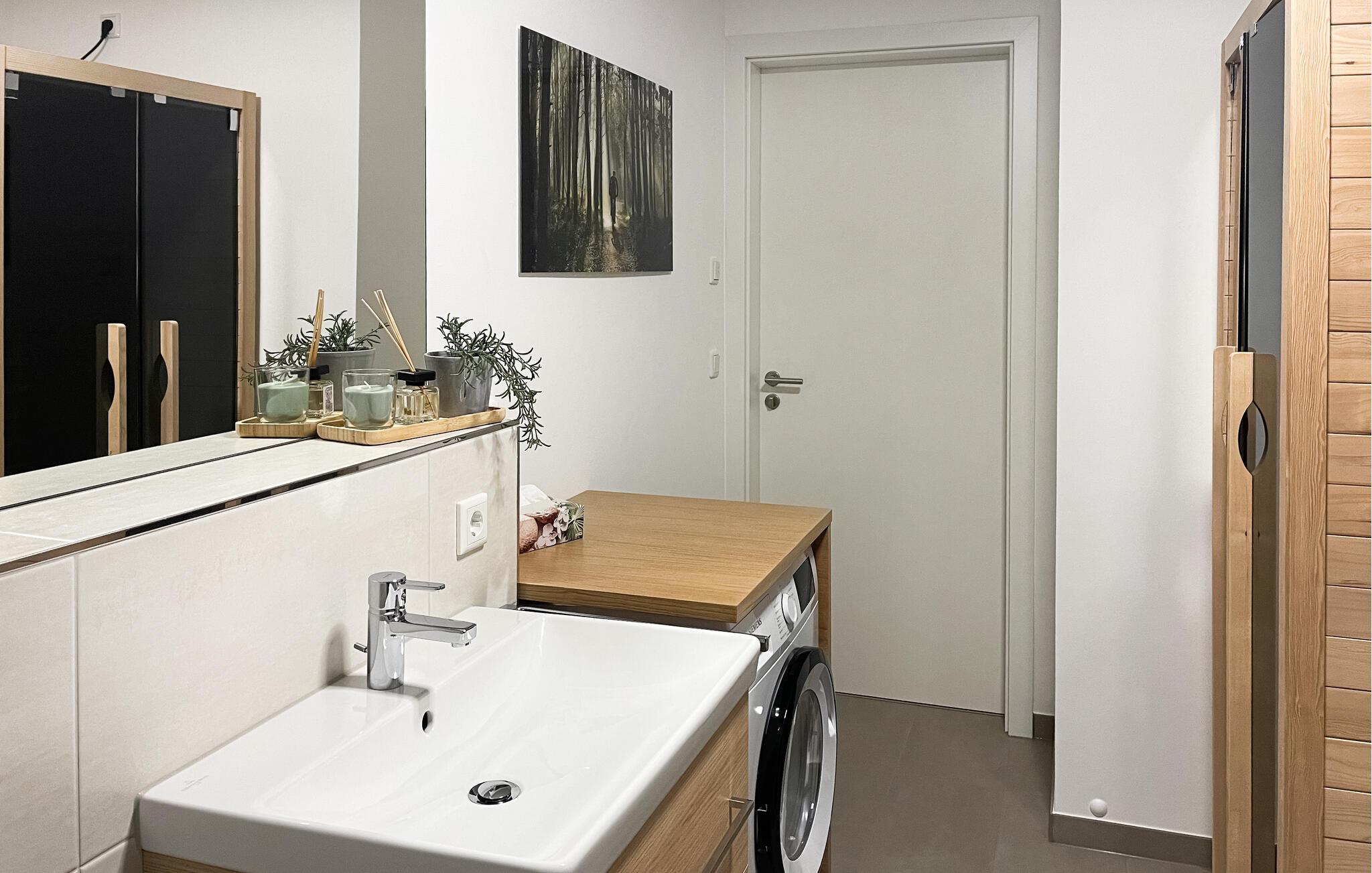 På varme sommerdage tilbyder altanen med havemøbler et vidunderligt sted at slappe af. Her kan I få en afslappet morgenmad. Et højdepunkt ved ferielejligheden er den højkvalitets infrarøde sauna, hvor I kan slappe af selv på frostklare vinterdage. I kan opbevare jeres ski i skikælderen, hvor I også får en skistøvletørrer til rådighed samt mulighed for opladning af el-cykler.