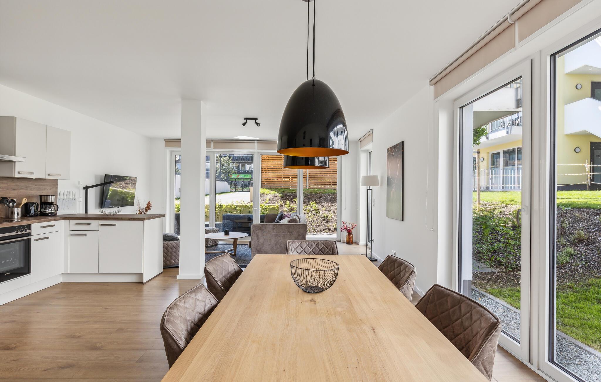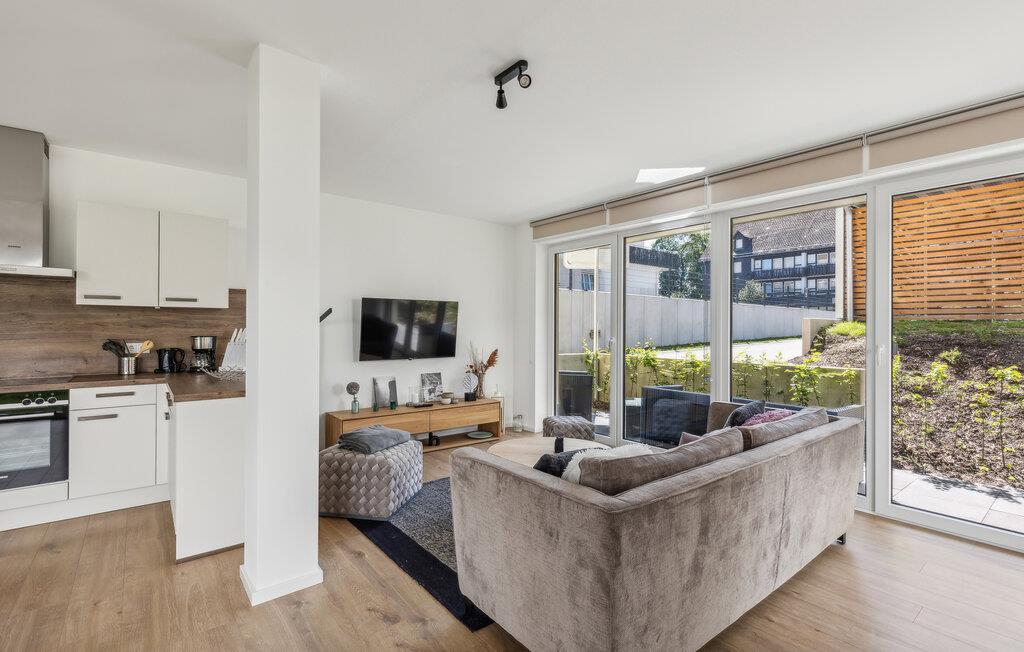 Glæd jer til en afslappende og varieret ferie i denne ferielejlighed i Winterberg, tæt på smuk natur. Lejlighedernes eksklusive møbler omfatter et fuldt udstyret køkken med højkvalitets hvidevarer. Lejligheden har to soveværelser og en meget lys og rummelig stue. Ferielejligheden byder på masser af plads til aktiviteter sammen, uanset om I laver mad sammen, holder spilleaften eller hygger jer i sofaerne. Pejsens stille knitren skaber en særlig hyggelig atmosfære. Den smagfulde indretning giver optimale betingelser for at tilbringe en god tid sammen i en stilfuld atmosfære.