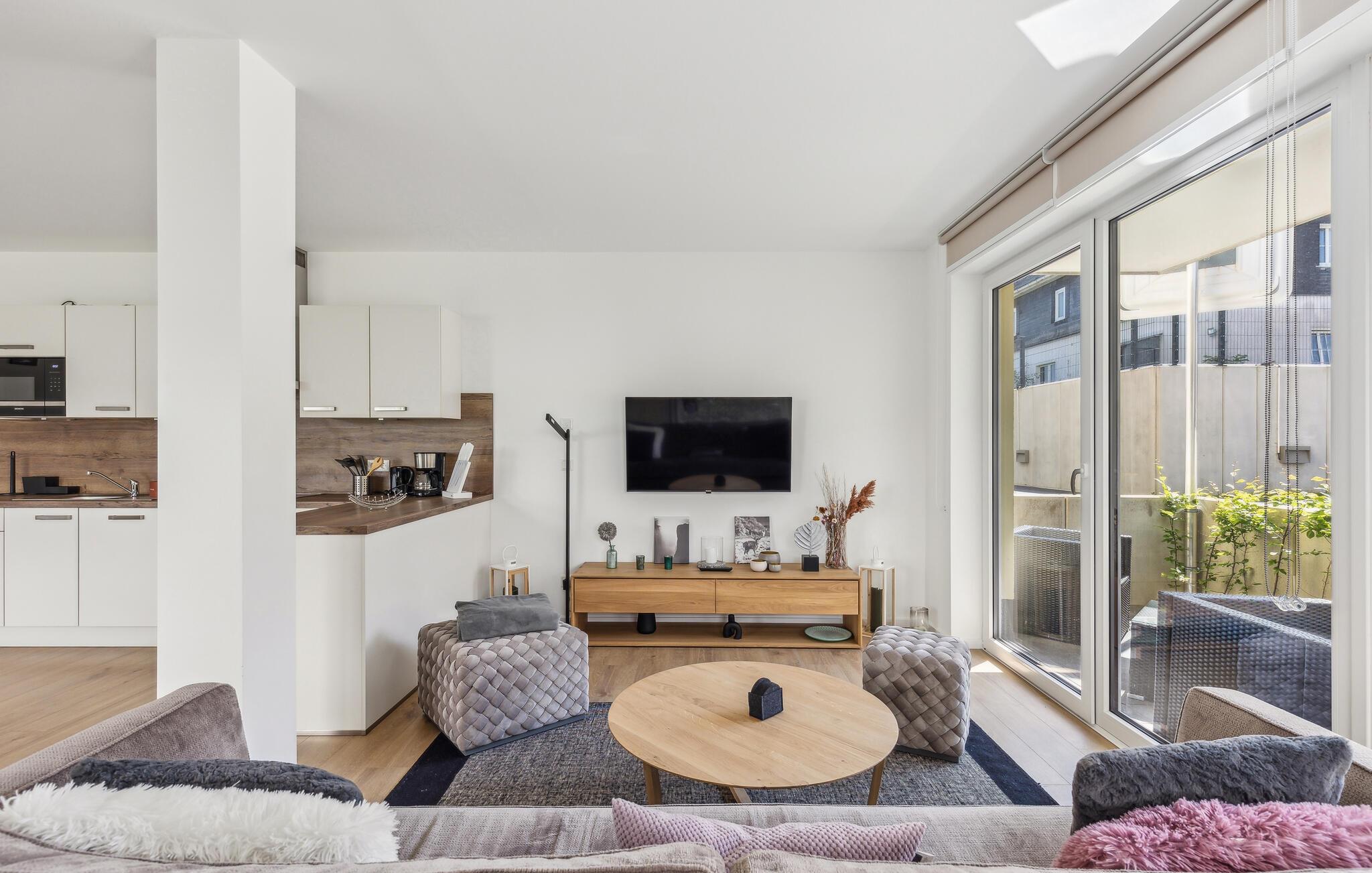 Men man kan ikke bare tilbringe skønne timer i ferielejligheden. På varme sommerdage tilbyder altanen med havemøbler et vidunderligt sted at slappe af. Her kan I få en afslappet morgenmad og tilberede lækre måltider på grillen. Et højdepunkt ved ferielejligheden er saunaen af ??høj kvalitet, hvor I kan slappe af selv på frostklare vinterdage.