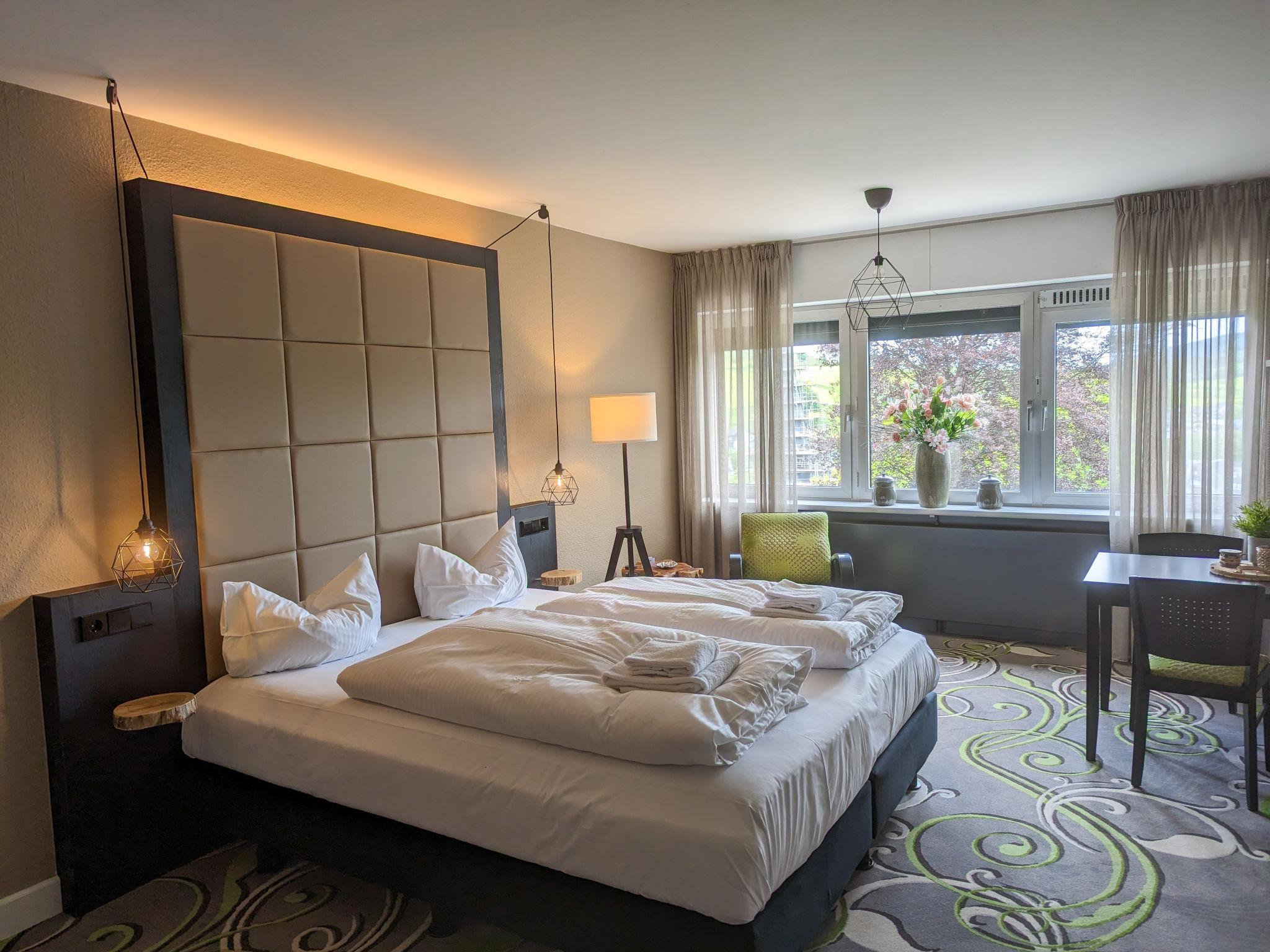 Grönebach 5 km from Winterberg: Large, modern residence "Gästehaus Grönebach mit Pool", 4 storeys, renovated in 2023. 8 apartments in the residence. On the outskirts Grönebach, in a sunny, elevated position on a slope, in a cul-de-sac, in the countryside. For shared use: indoor pool (10 x 5 m, pool opening hours: 08:00-21:00). In the complex: billiard table, lift, sun terrace, roof terrace. Bread roll service and breakfast on request (extra). Central parking spaces. Shop 5 km, supermarket 5 km, restaurant 5 km, bus stop 100 m, sandy beach 5 km, lake Hillebachsee 5 km. Slopes 7 km, ski school 7 km, sled run 6 km, cross country ski track 7 km. Well-known ski regions can easily be reached: Winterberg 7 km. The house is ideal for conferences, seminars, events and family celebrations. In the house for rent (prices on request): chapel, dining room for 130 people, large kitchen, seminar room. Catering on request. Gas grill and wood for fire basket each € 25 per use.