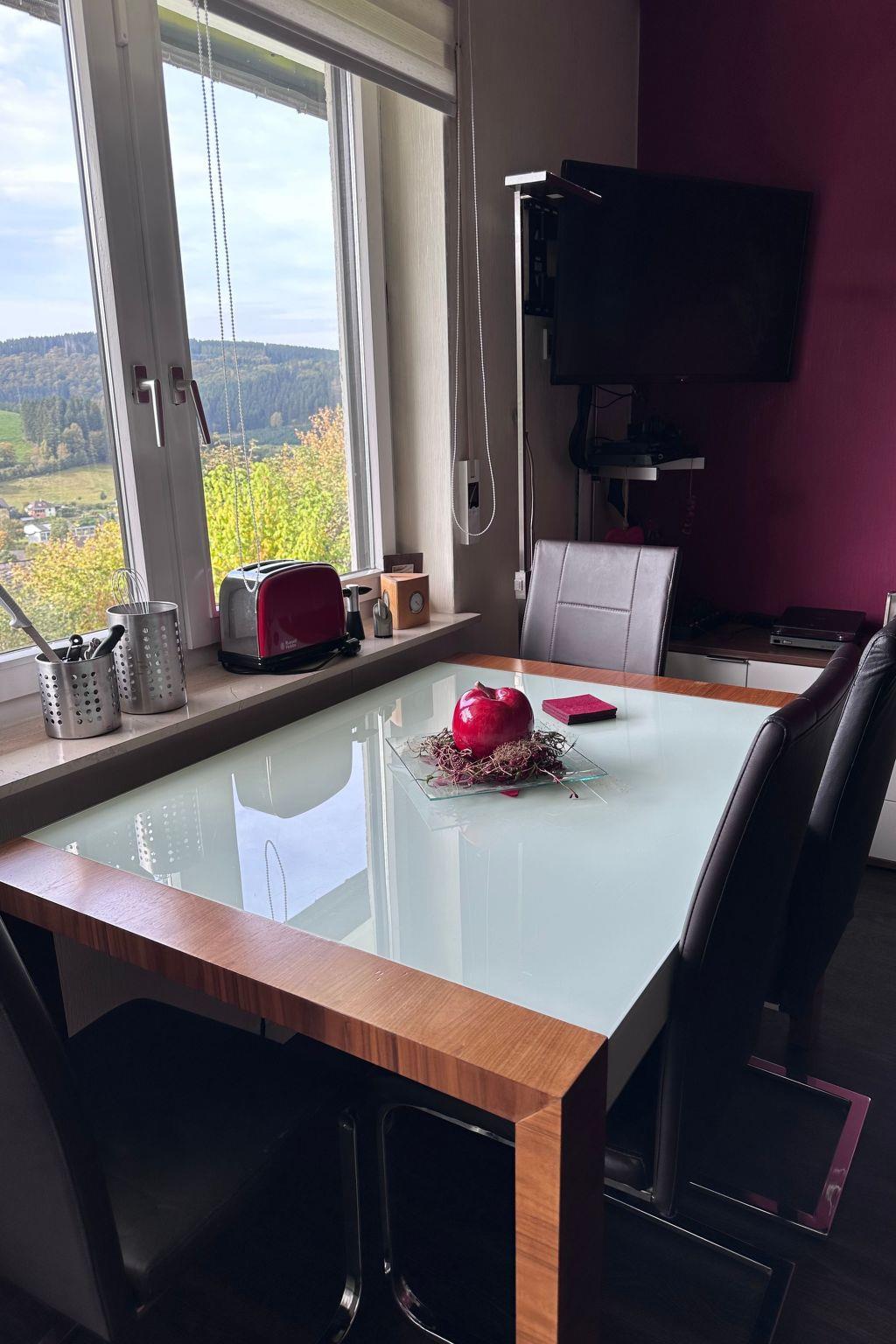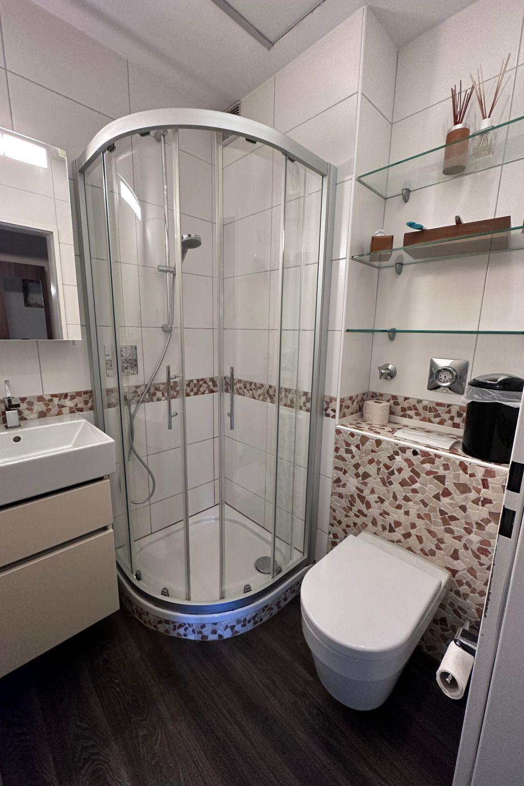 Inside, you will be spoilt by well thought-out furnishings that leave nothing to be desired. A bedroom with a comfortable double bed and TV, invitingly located next to a bathroom with shower, WC and hairdryer. The living room is more than just a lounge; equipped with a good sofa bed, a dining area for 4 people, children's crockery, TV, DVD and CD player, it forms the centrepiece of the flat. The kitchen leaves nothing to be desired with a coffee machine, fridge, ceramic hob, dishwasher, oven and more.