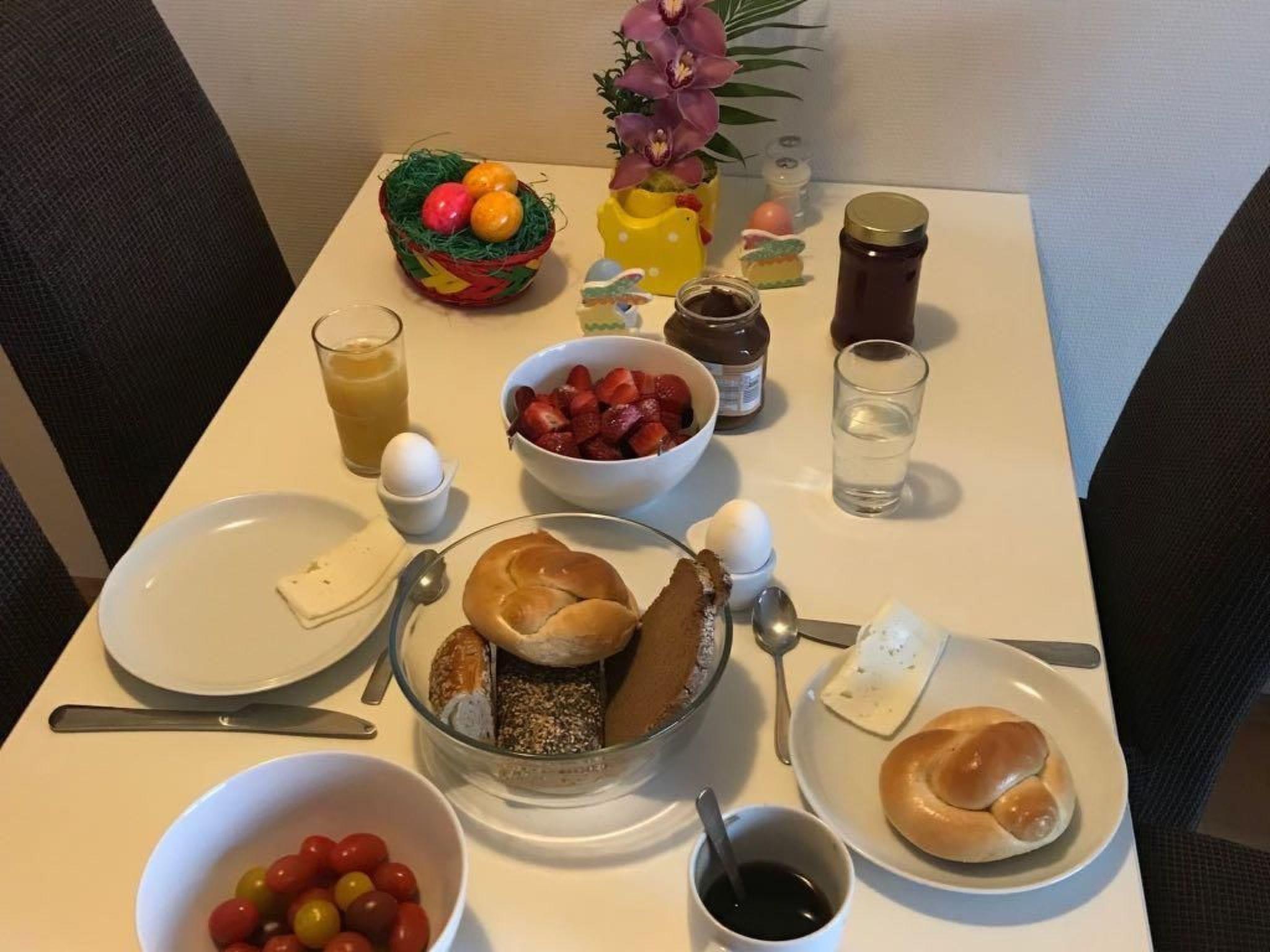 The flat has been thoughtfully designed to fulfil all the needs of our guests. It offers two cosy bedrooms that can be completely darkened to guarantee you a restful night's sleep. In the bathroom with shower you can relax after a day of adventures in nature. For culinary delights, our kitchen is excellently equipped with a ceramic hob, an espresso pot, a pod coffee machine and a kettle. In the evening, the fireplace invites you to spend cosy hours in cosy warmth.