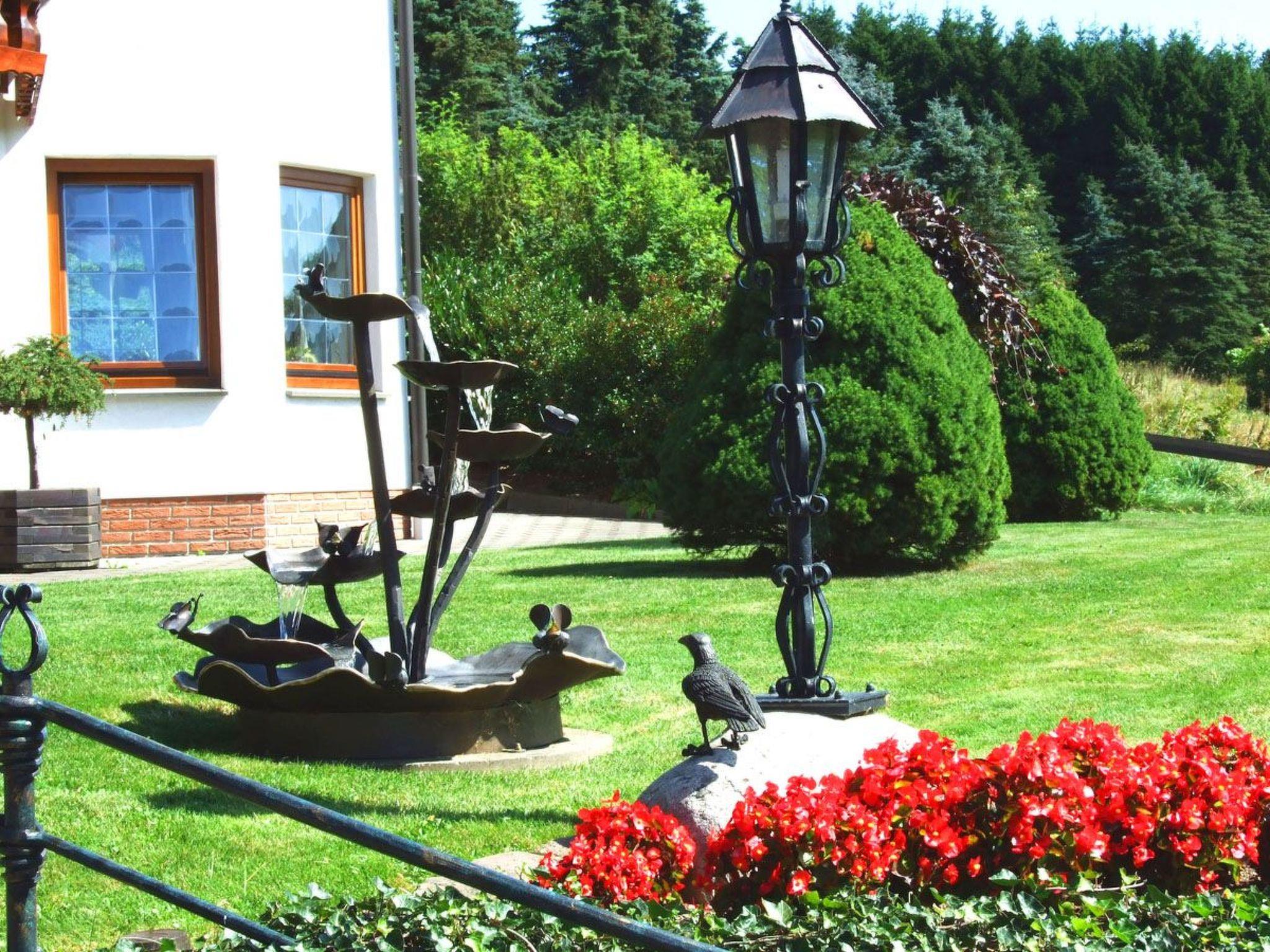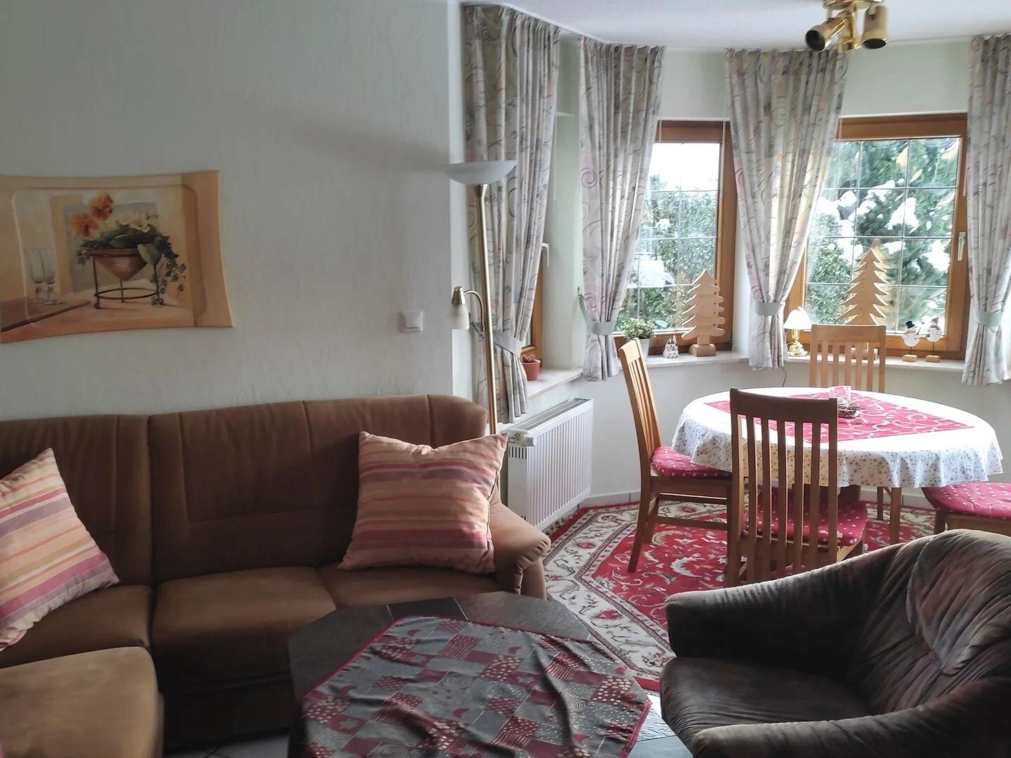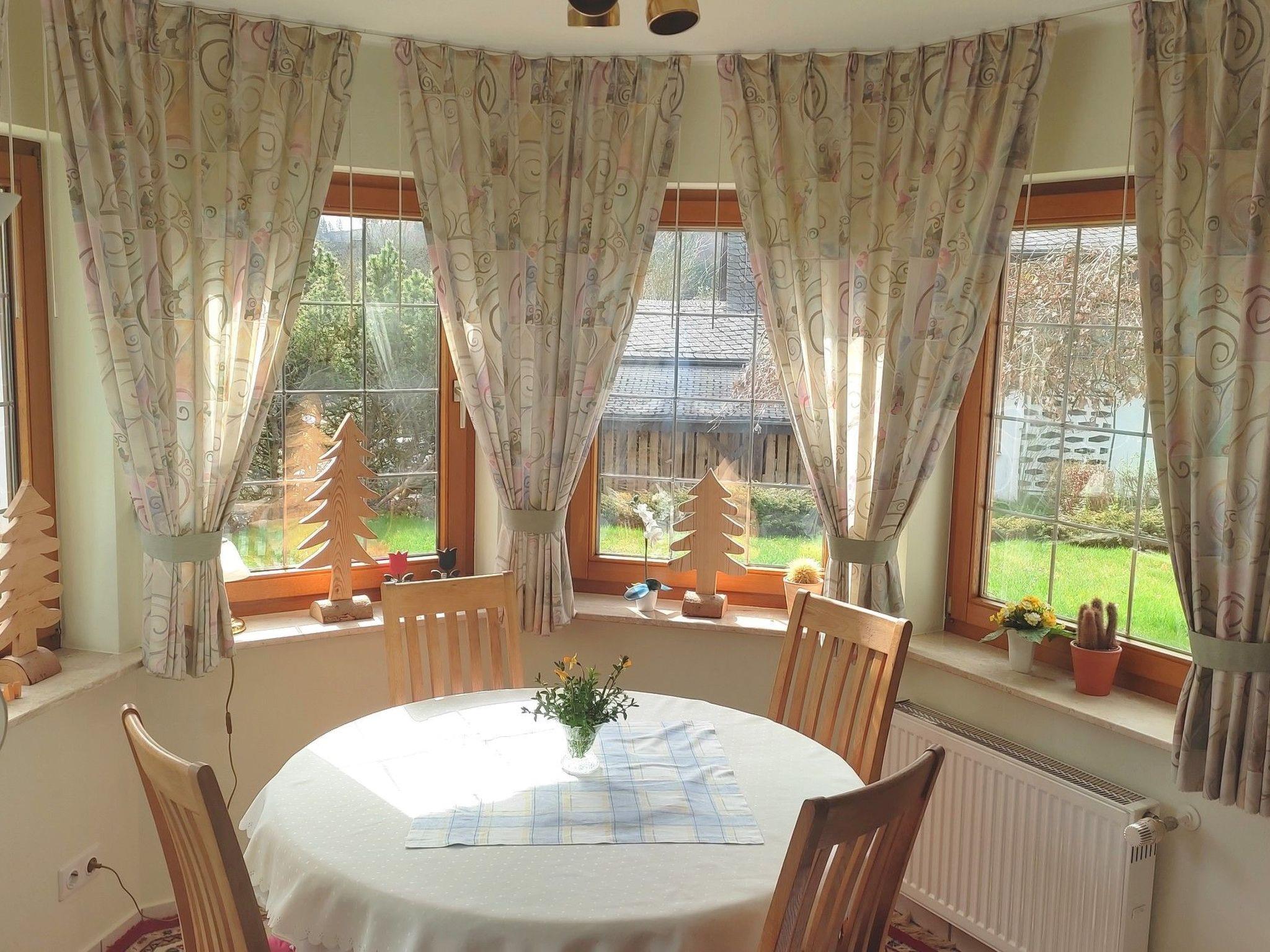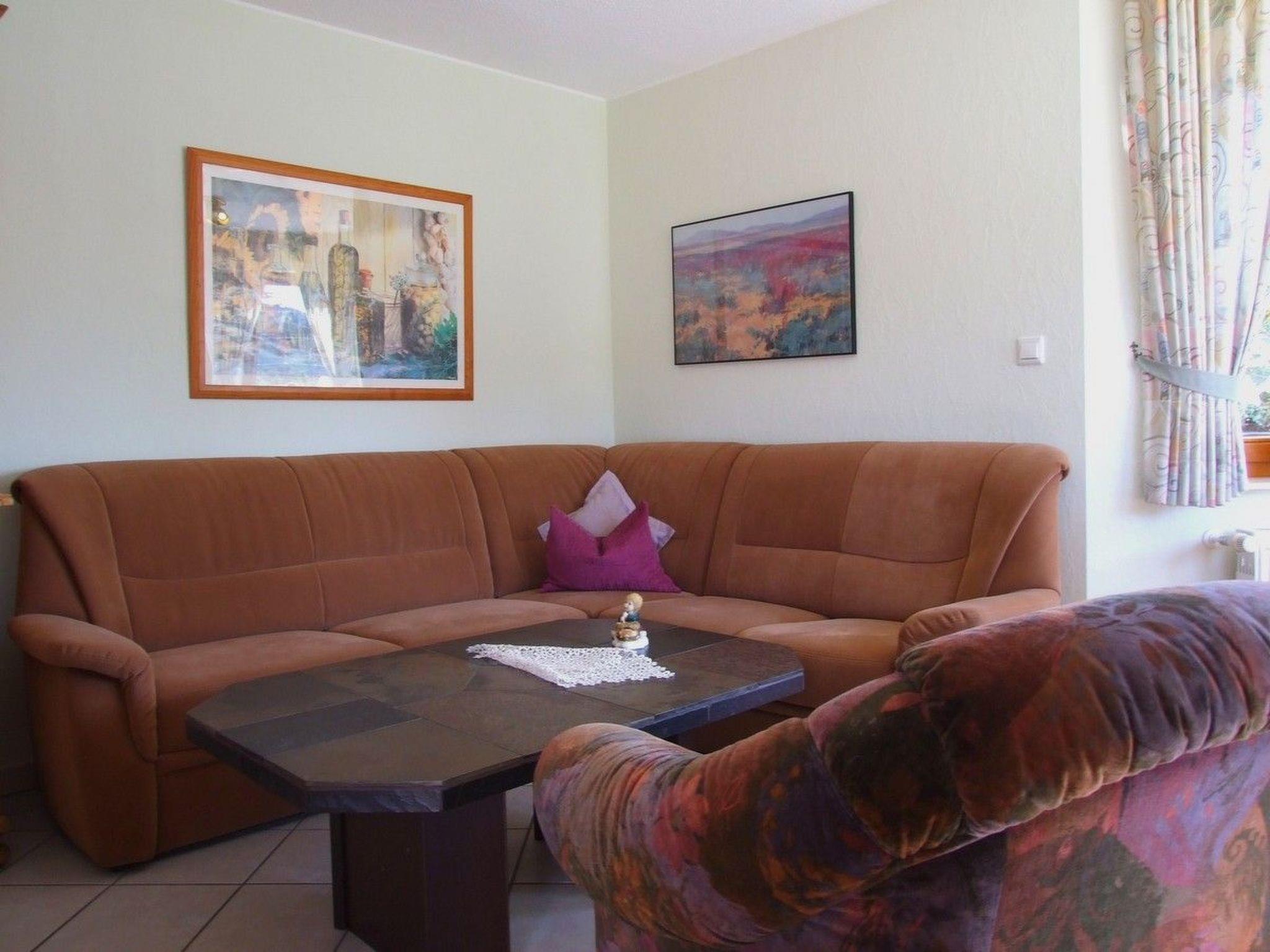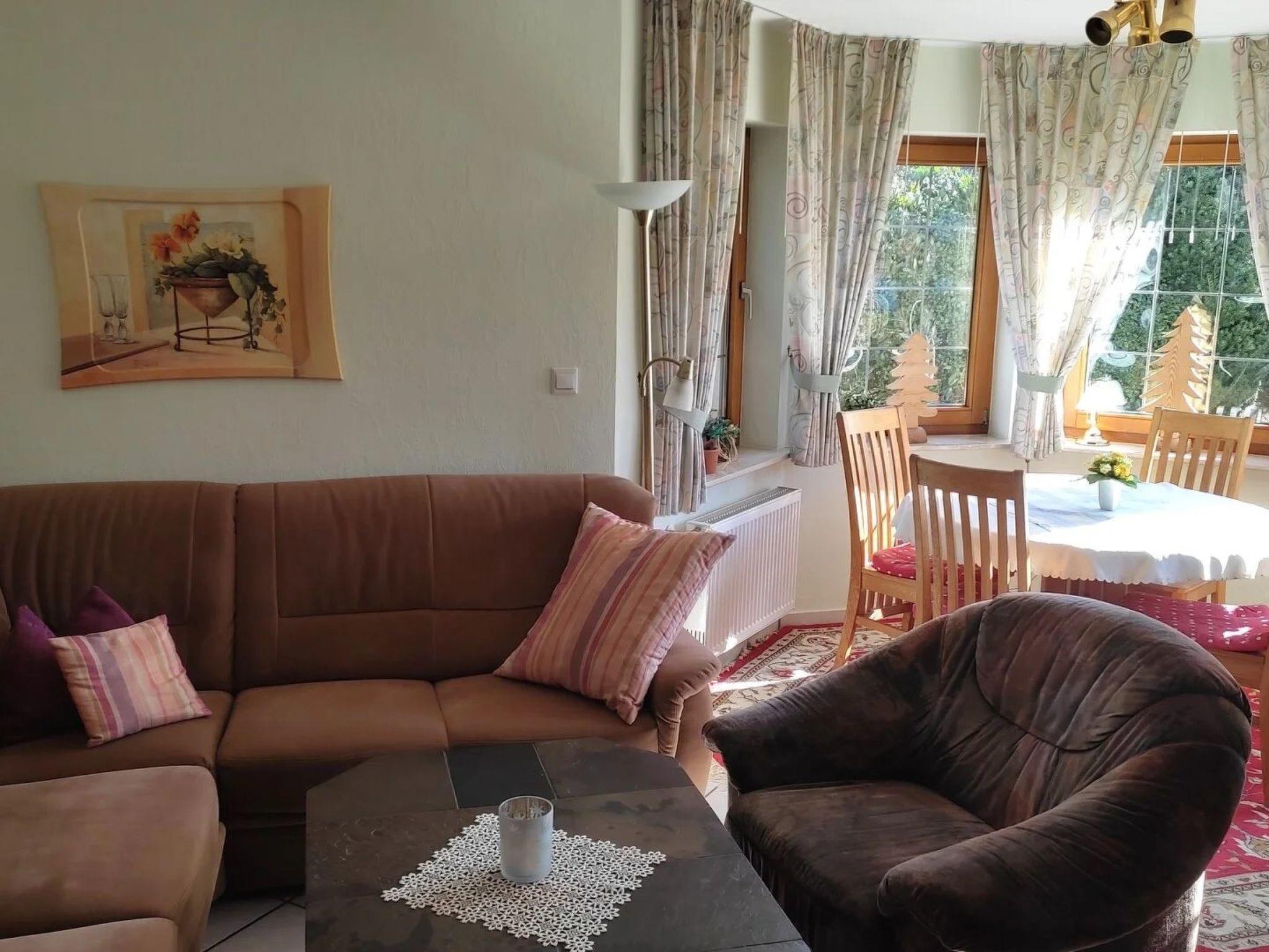Cosy 3-star holiday flat on a quiet south-facing slope, right on the edge of the forest with free WLAN connection. Hiking trails on the doorstep. The holiday flat has its own entrance. It also has a corner bay window with seating area. The flat is also furnished in country house style. There is also a covered outdoor seating area (terrace) with garden furniture and cushions. Despite the location on the edge of the forest, you can reach the village centre in approx. 5 minutes on foot.
