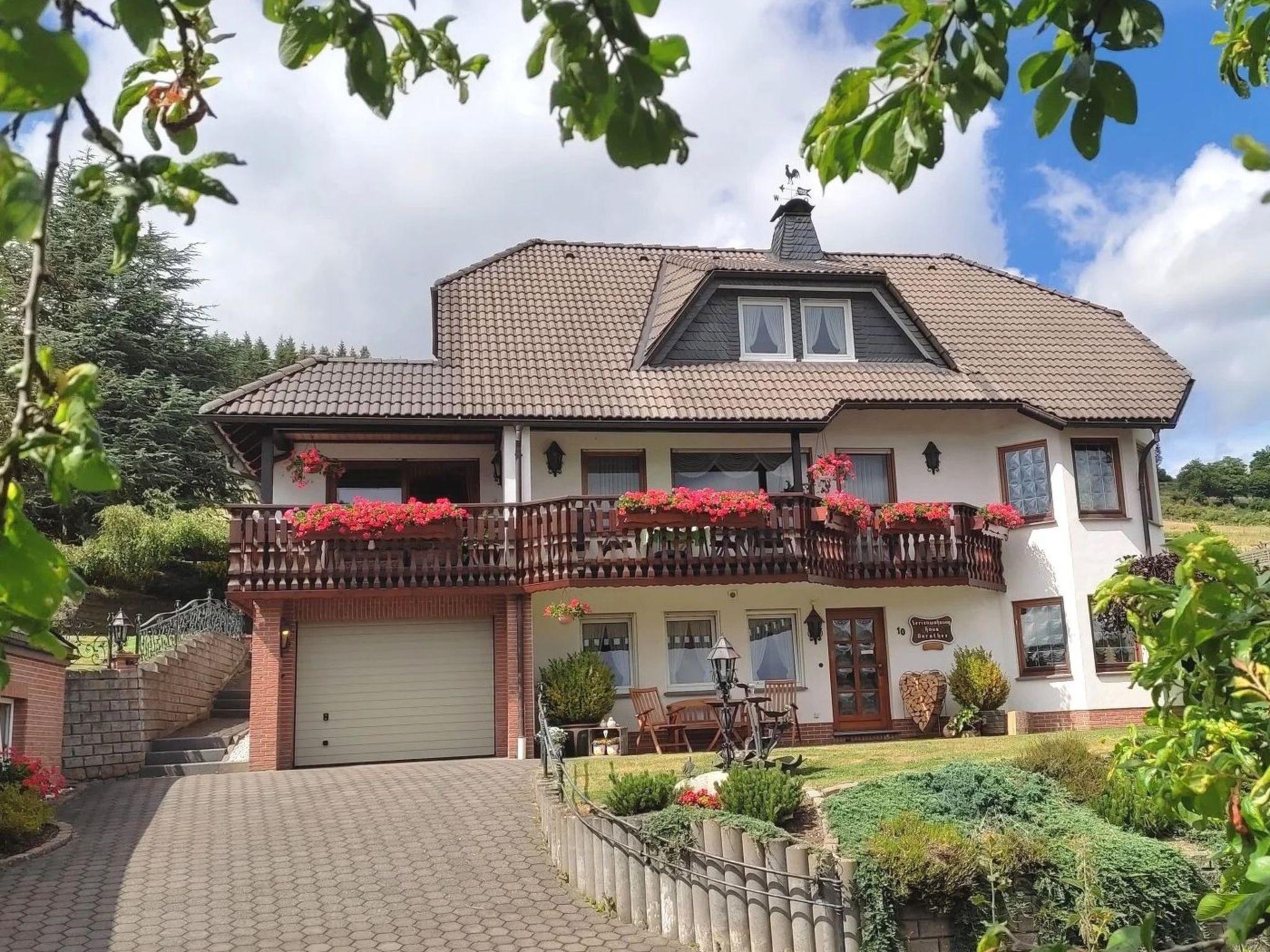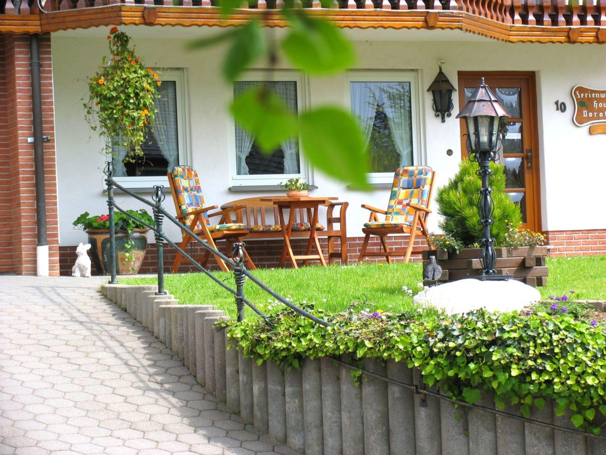 The flat has its own entrance, a covered terrace with wooden garden furniture and a corner bay window in the dining area of the flat, which offers a wonderful view of the Sauerland mountains.
